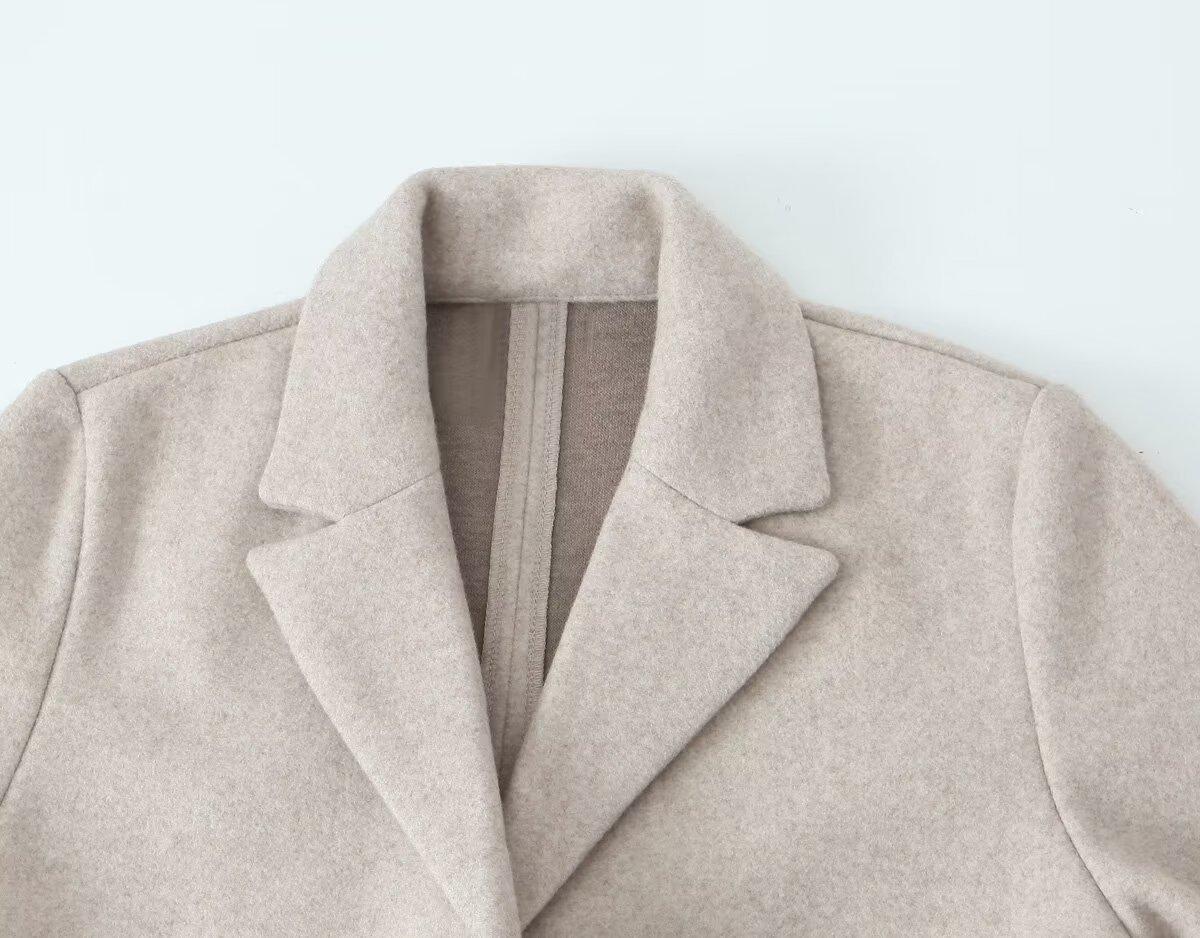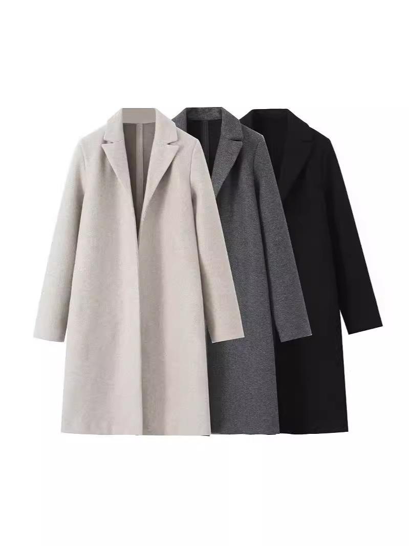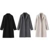 Ropa de Mujer Europea y Americana Transfronteriza Nueva Moda Femenina de Comercio Exterior Solapa Holgada Color Puro Manga Larga Chaqueta de Lana Multicolor