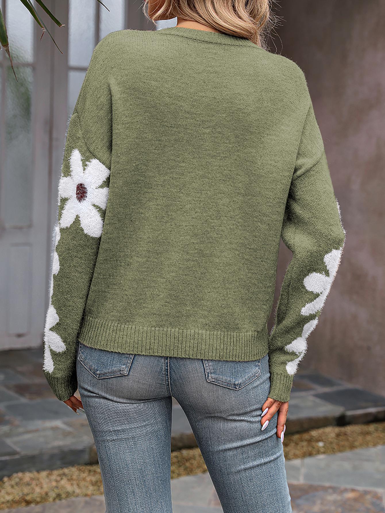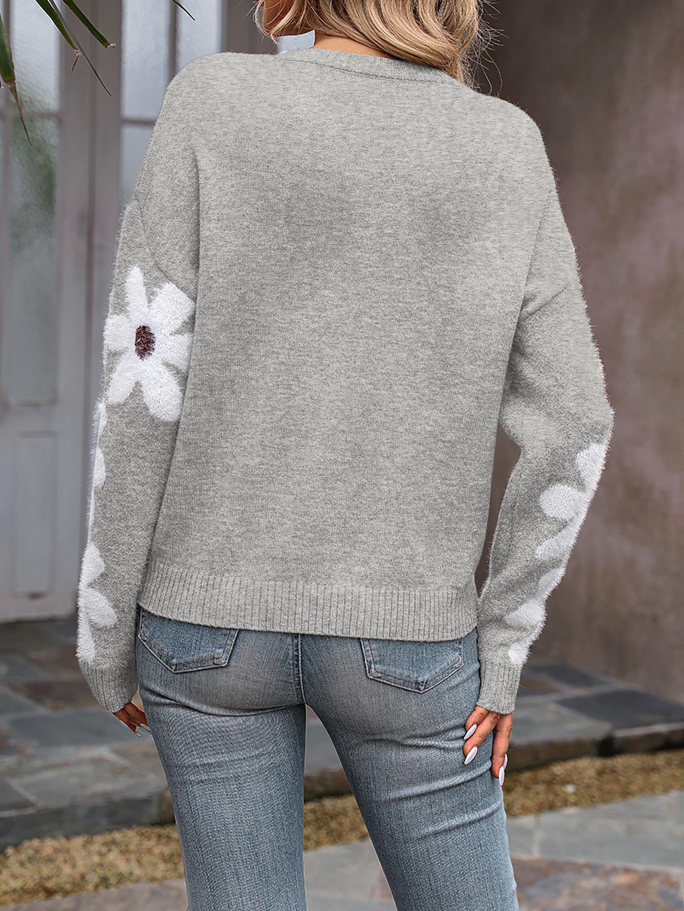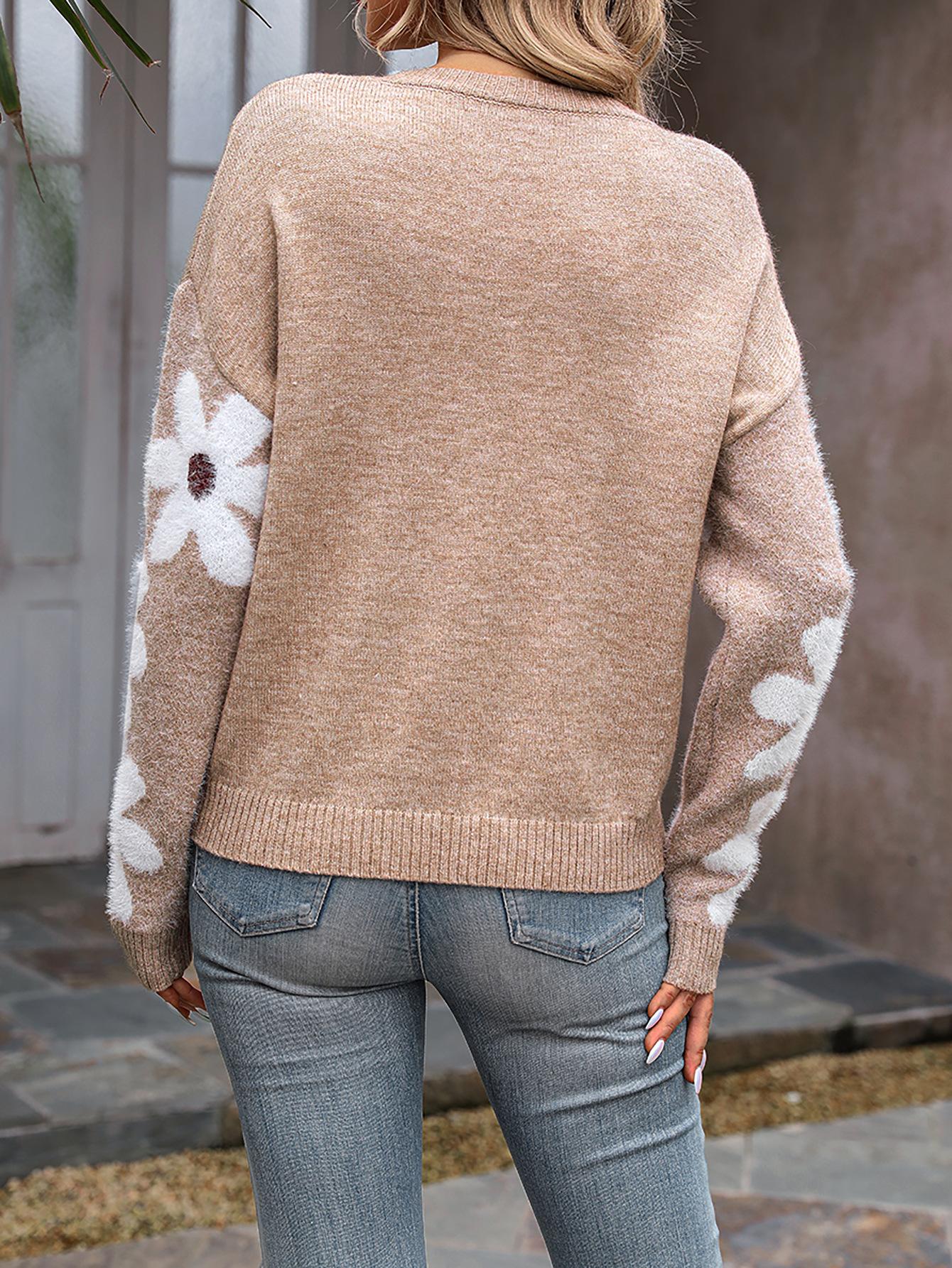 Suéter Explosiones de Primavera y Otoño de 25 Años Estilo Casual Japonés Pulóver de Punto Jacquard de Flores Ropa Transfronteriza de Europa, América y Medio Oriente