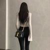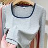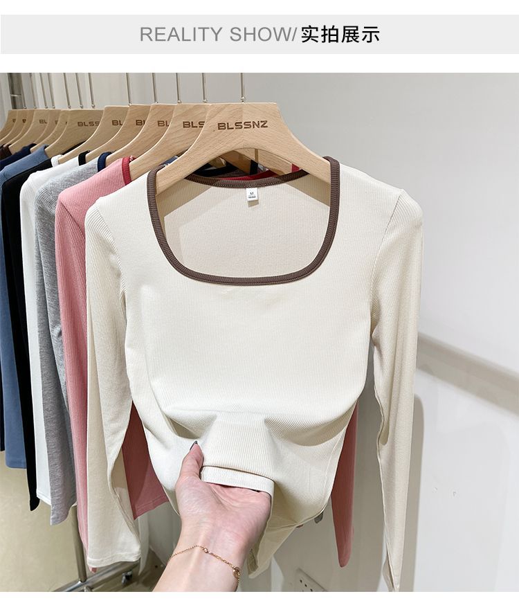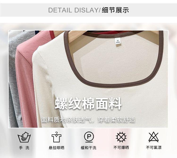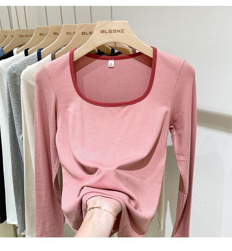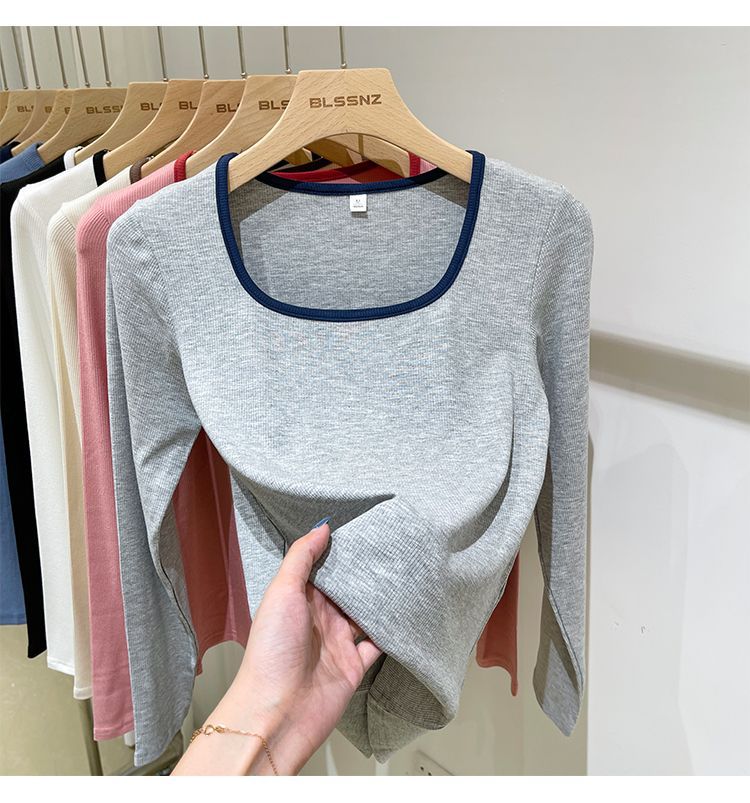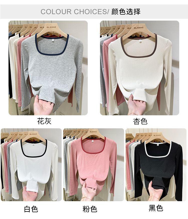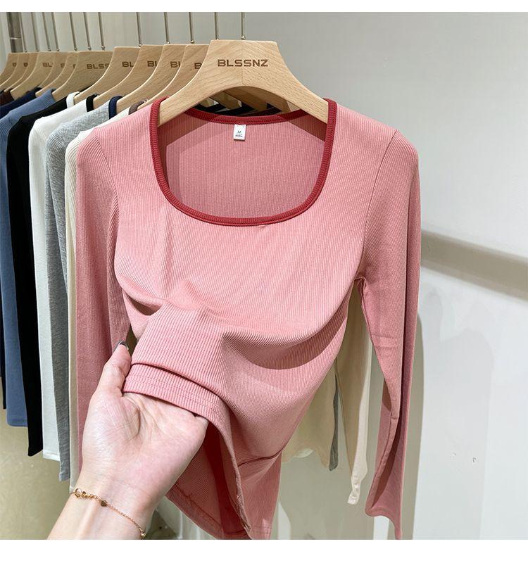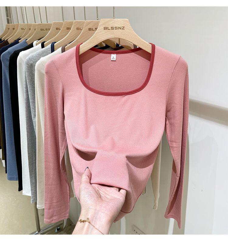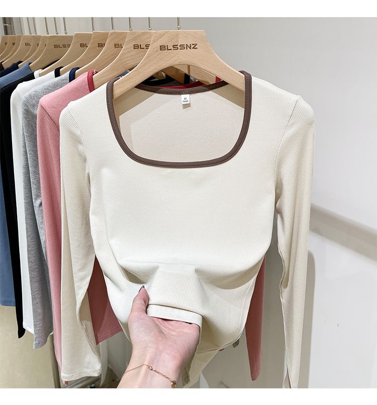Playera de Moda de Cuello Cuadrado y Manga Larga para Mujer Principios de Otoño Nuevo Diseño Europeo Ajuste Slim Top Corto Interior Camiseta Base Trendy