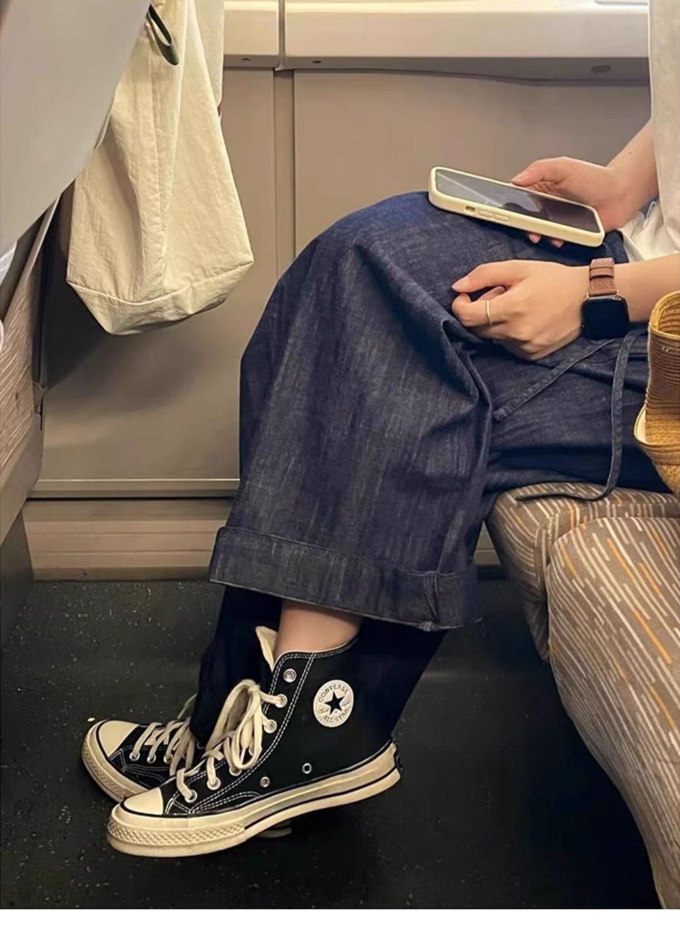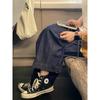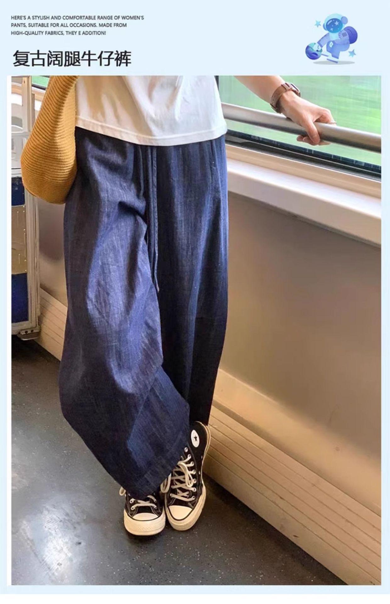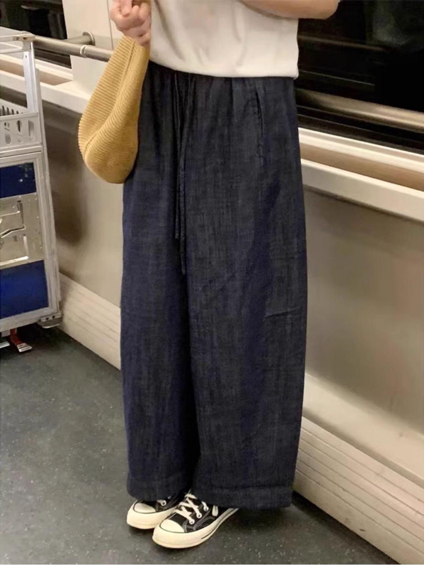 Jeans Retro Azul Oscuro Talla Grande Mujer Verano Delgados Gordos MM Sueltos Cintura Alta Adelgazantes Pierna Recta Pierna Ancha Pantalones Recortados