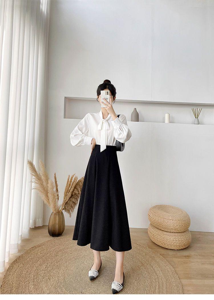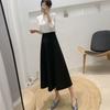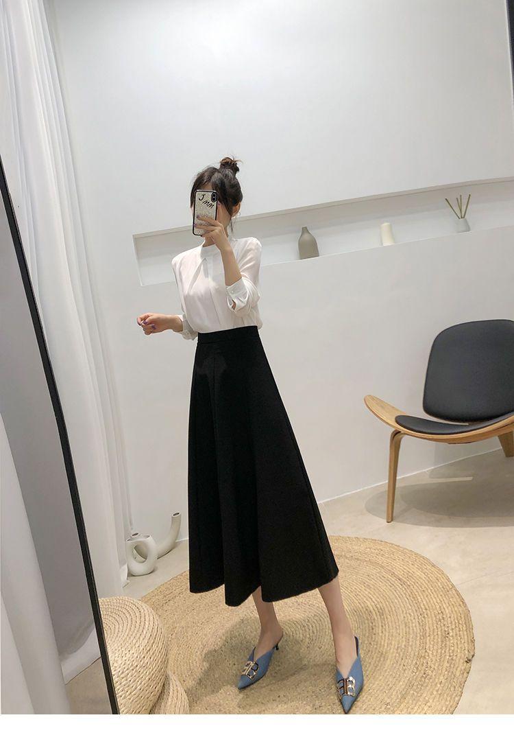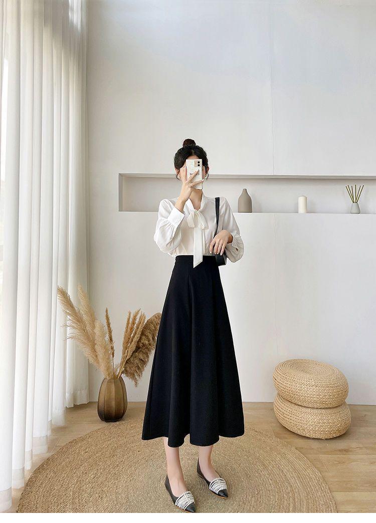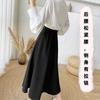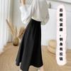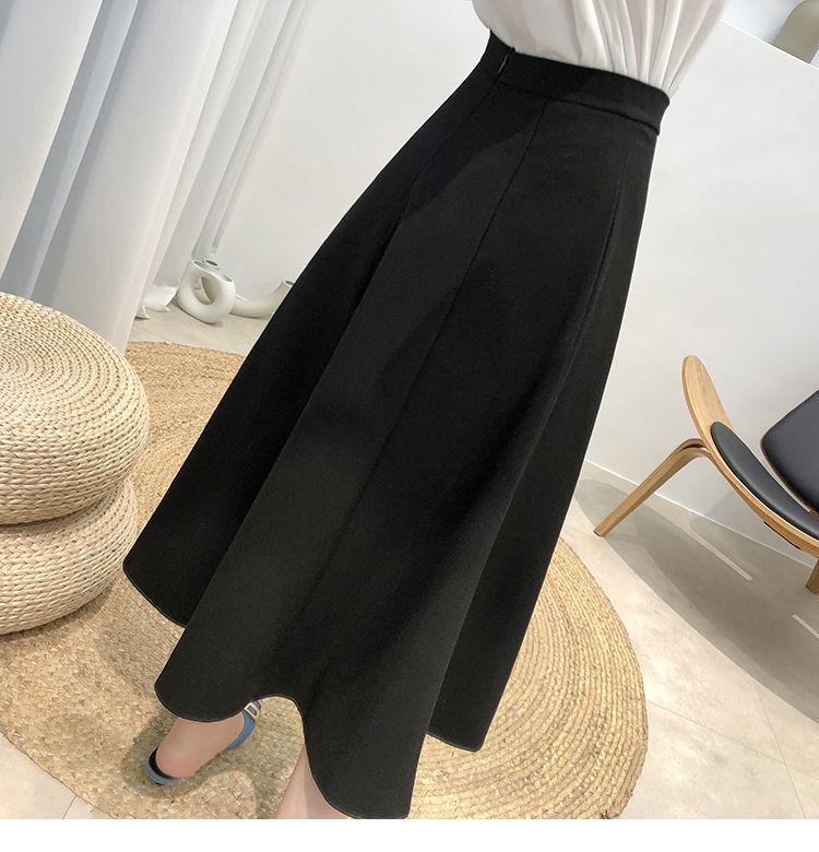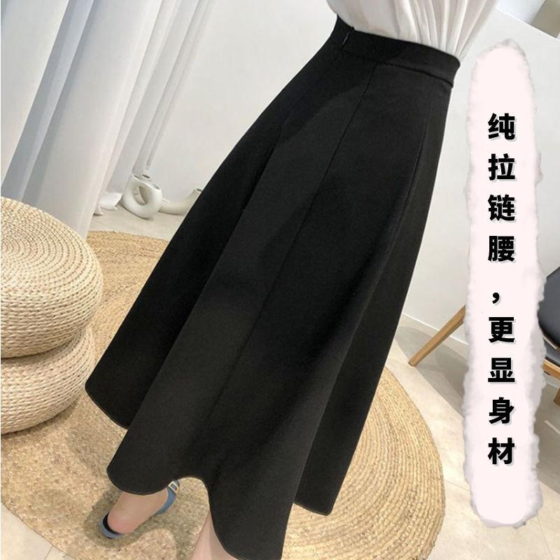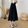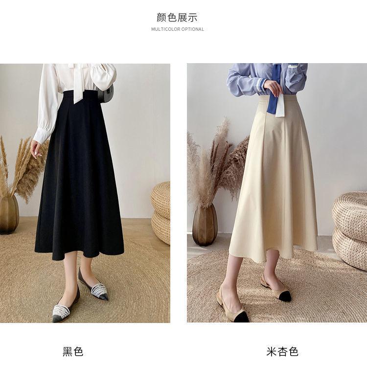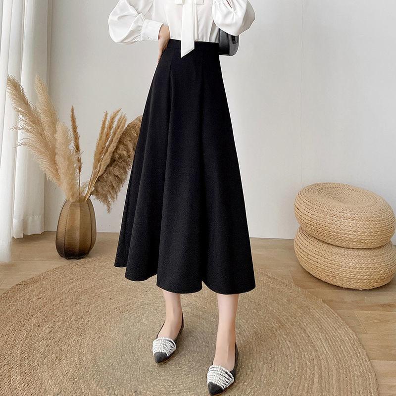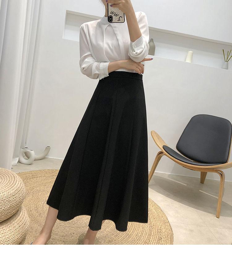 Falda Midi Negra de Cintura Alta para Ir al Trabajo Corte A Verano 2025 Caída Sobre la Rodilla Oculta Caderas Adelgazante Largo Medio Falda Completa