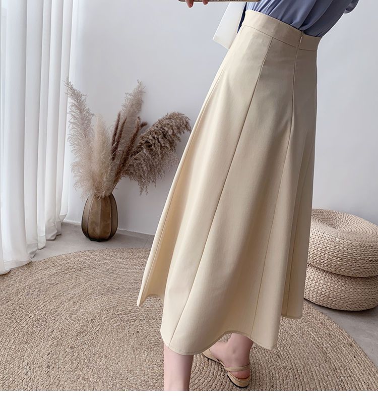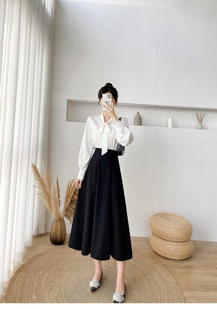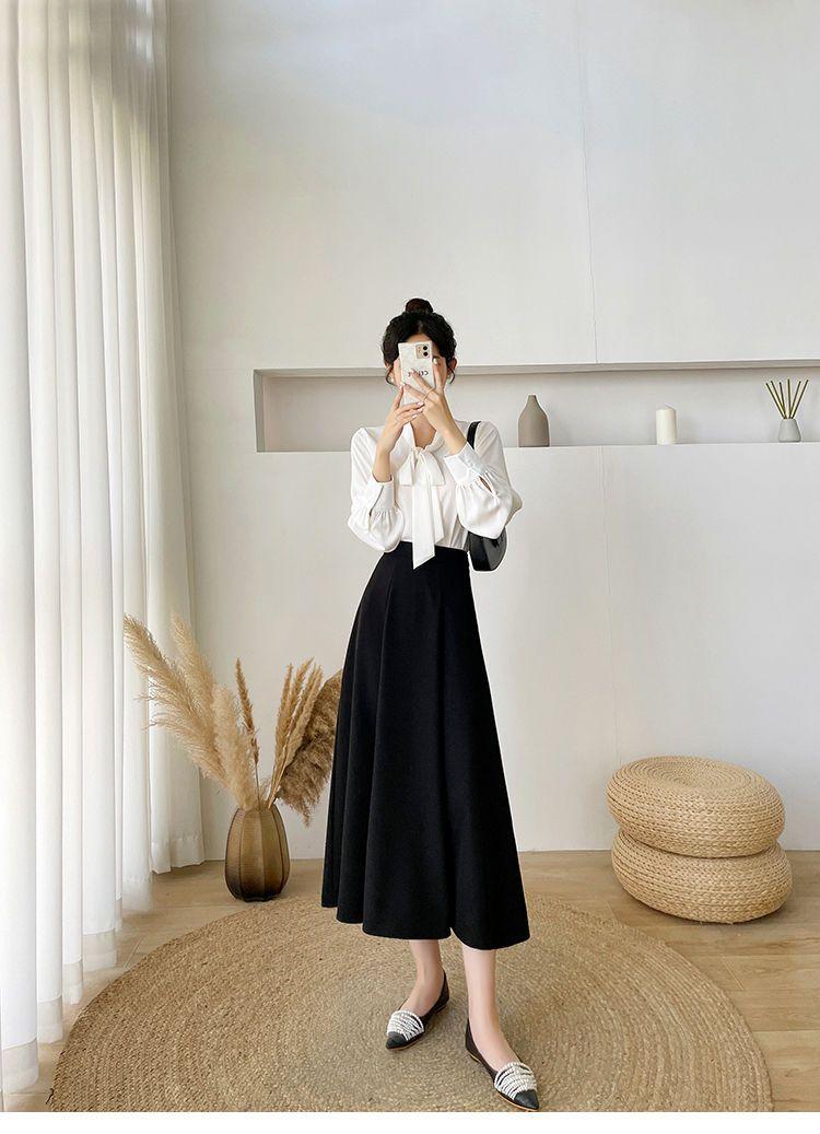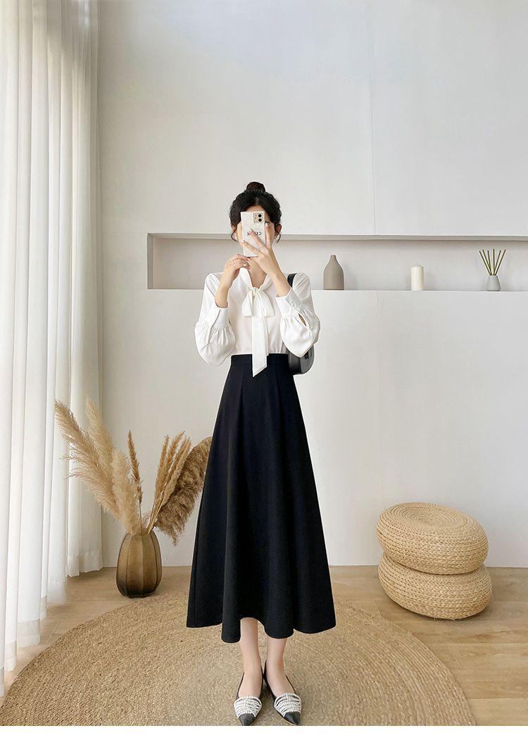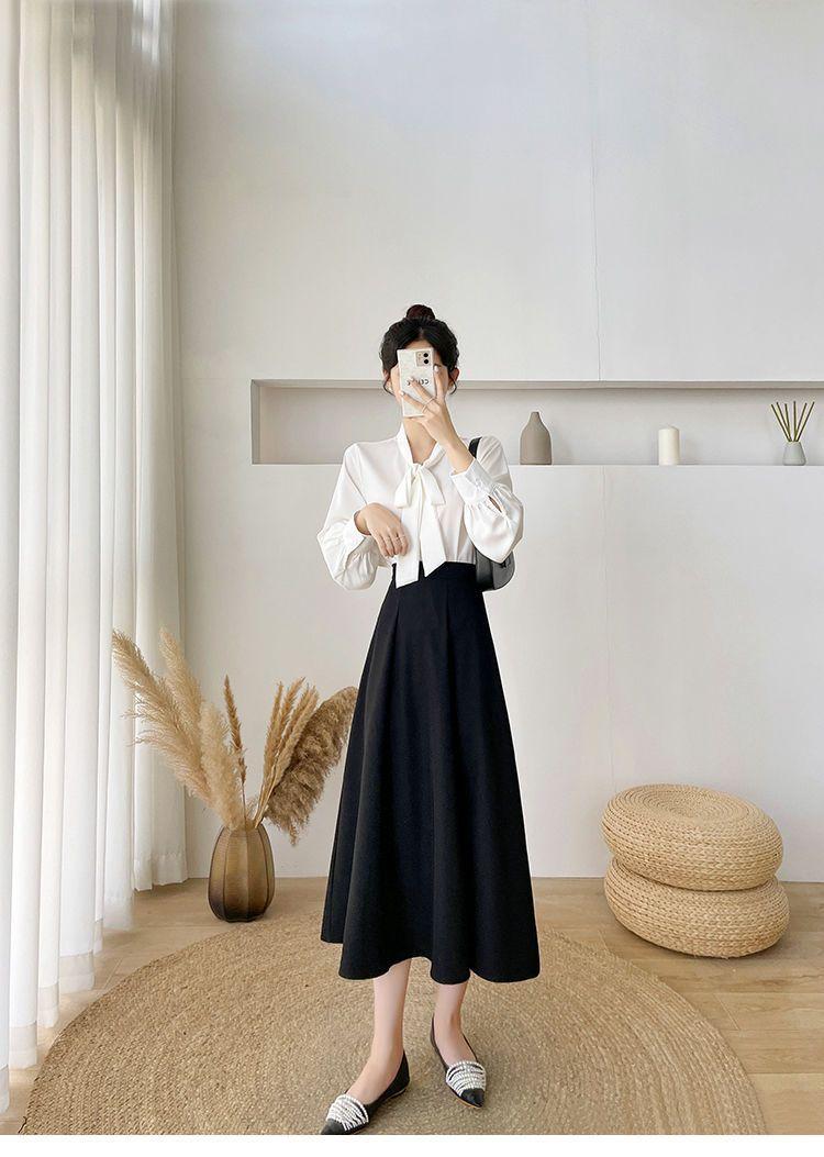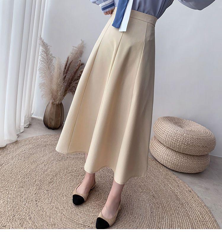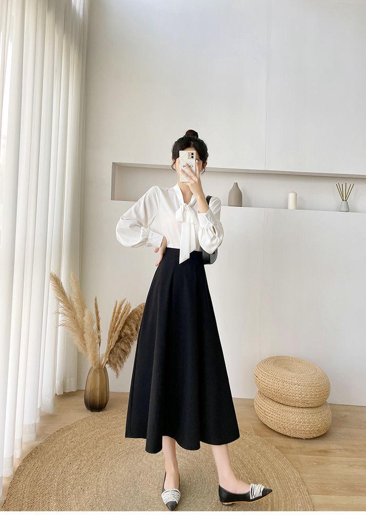 Falda Midi Negra de Cintura Alta para Ir al Trabajo Corte A Verano 2025 Caída Sobre la Rodilla Oculta Caderas Adelgazante Largo Medio Falda Completa