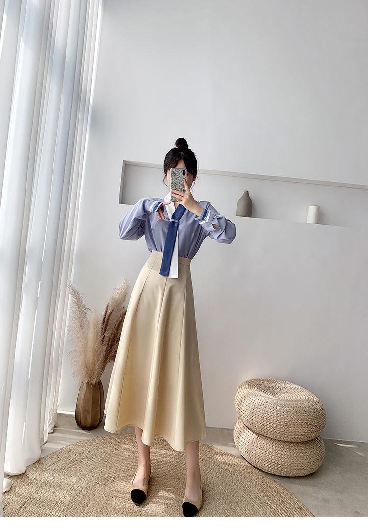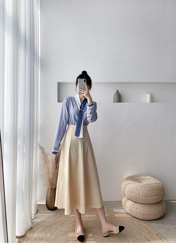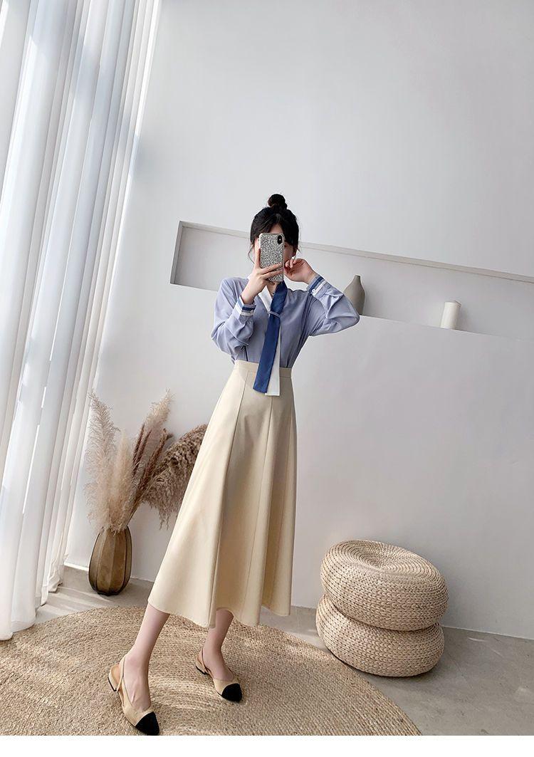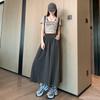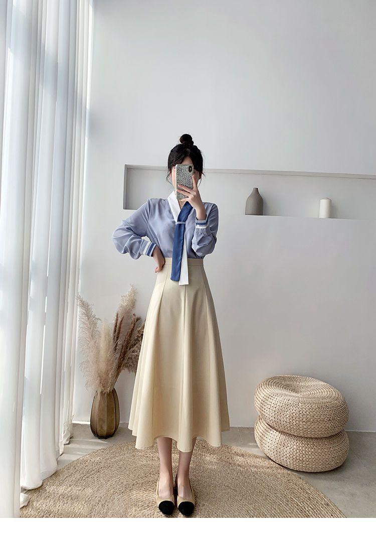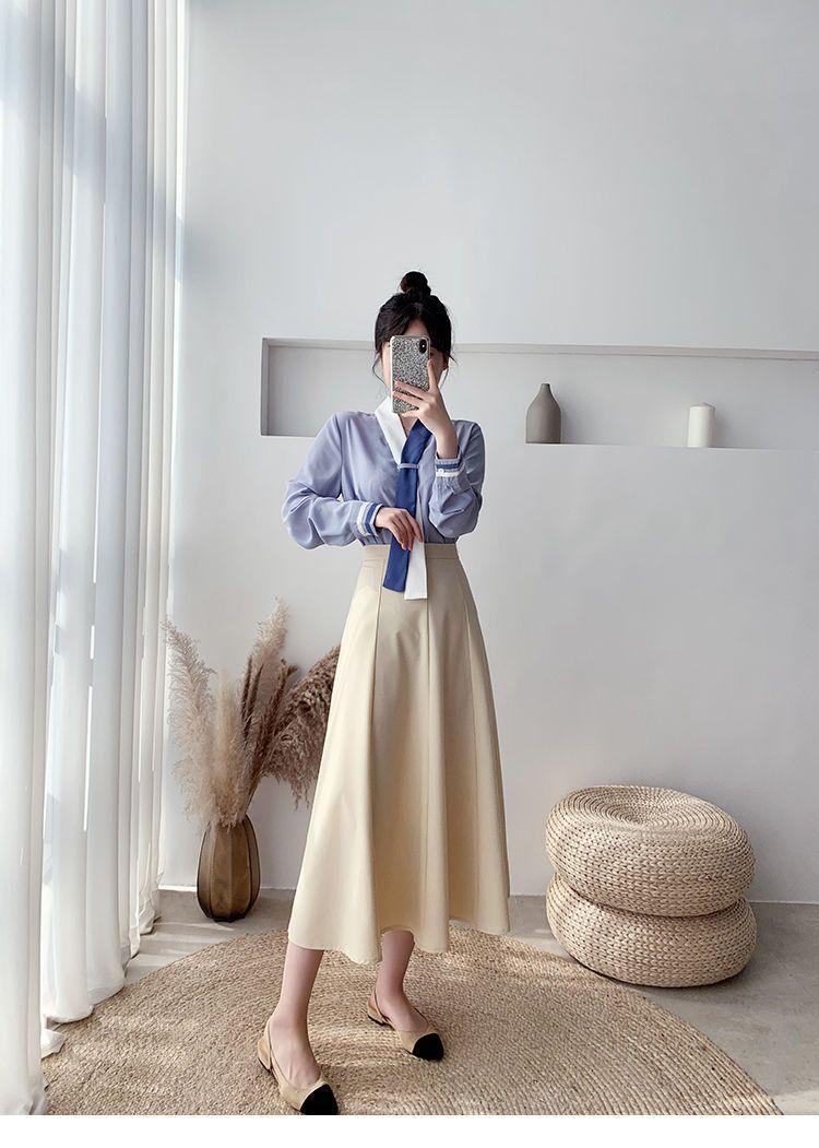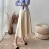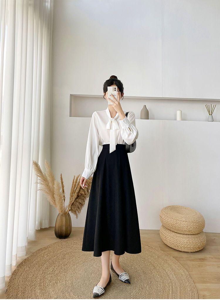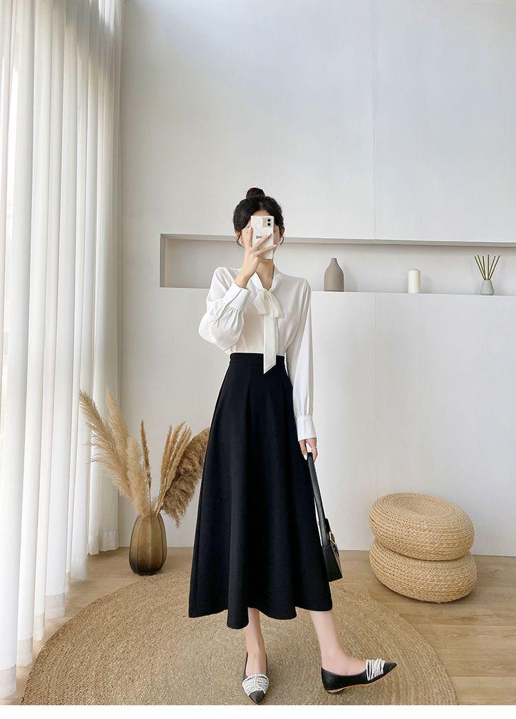 Falda Midi Negra de Cintura Alta para Ir al Trabajo Corte A Verano 2025 Caída Sobre la Rodilla Oculta Caderas Adelgazante Largo Medio Falda Completa