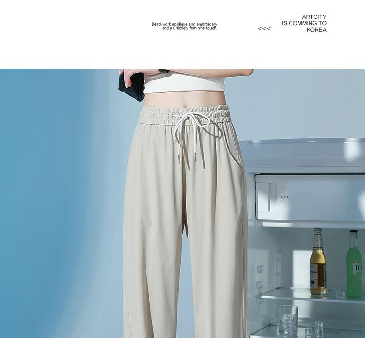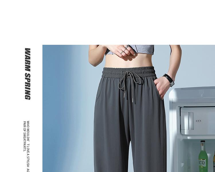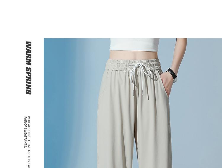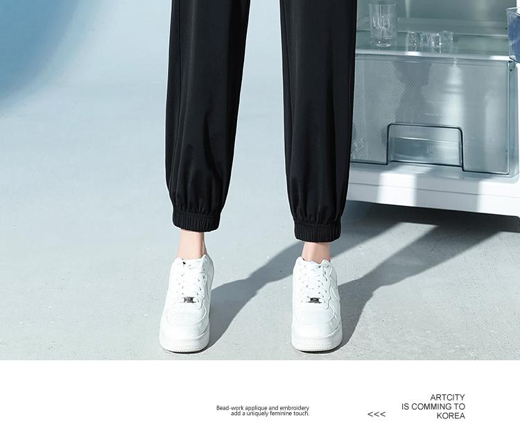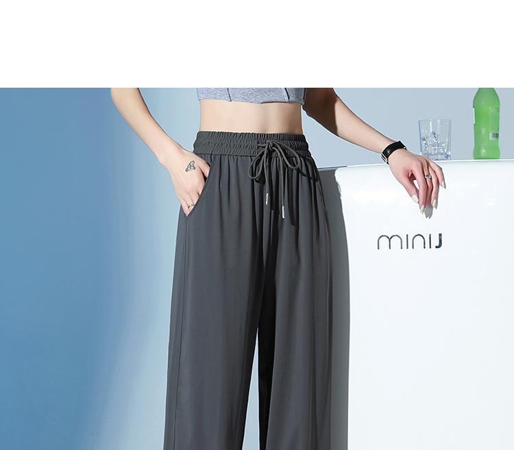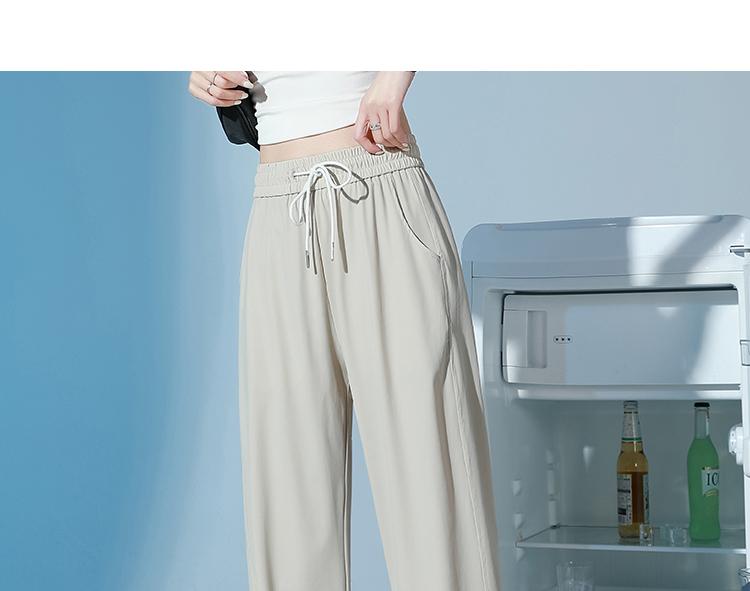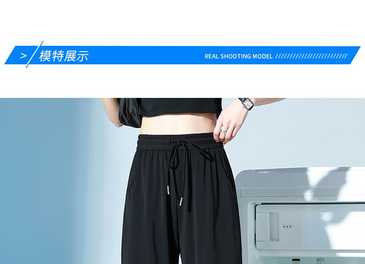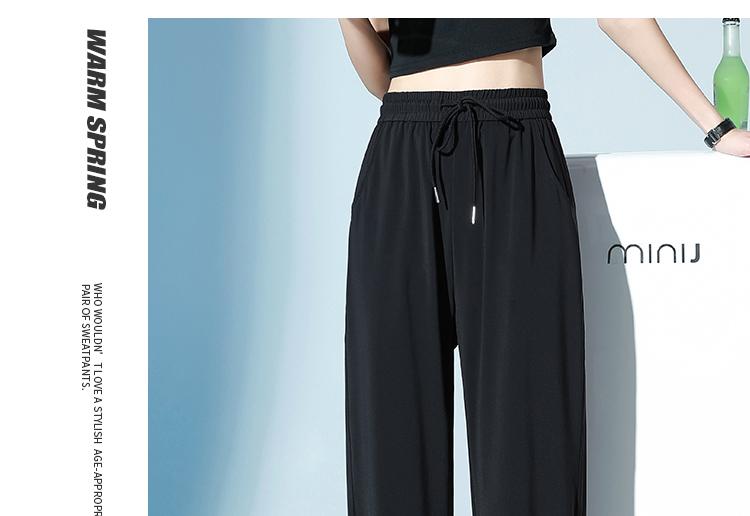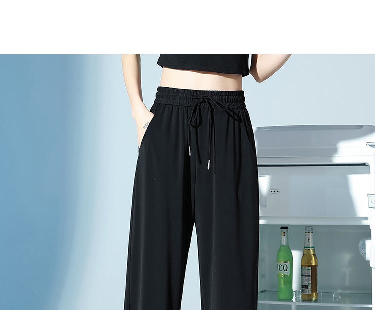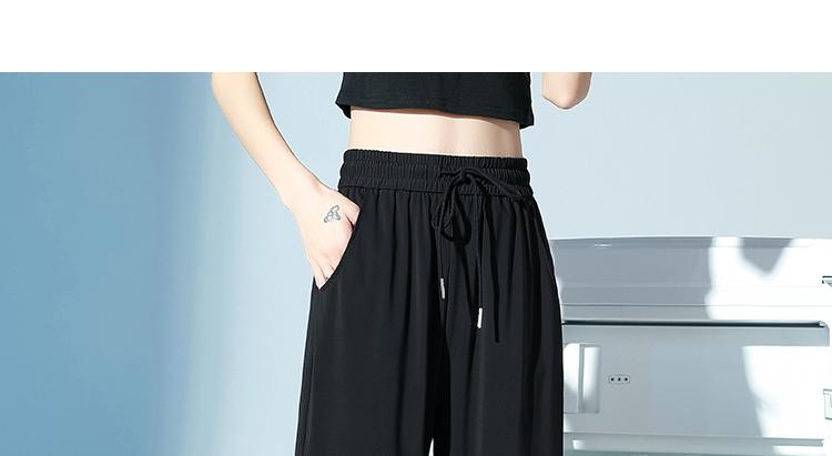 Pantalones de Chándal de Verano Delgados Cortos Sueltos Casuales para Mujer Petite Protección Solar Secado Rápido Seda de Hielo Negra