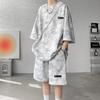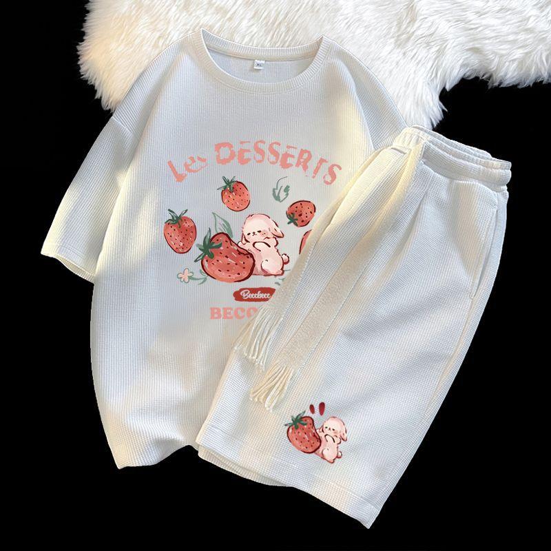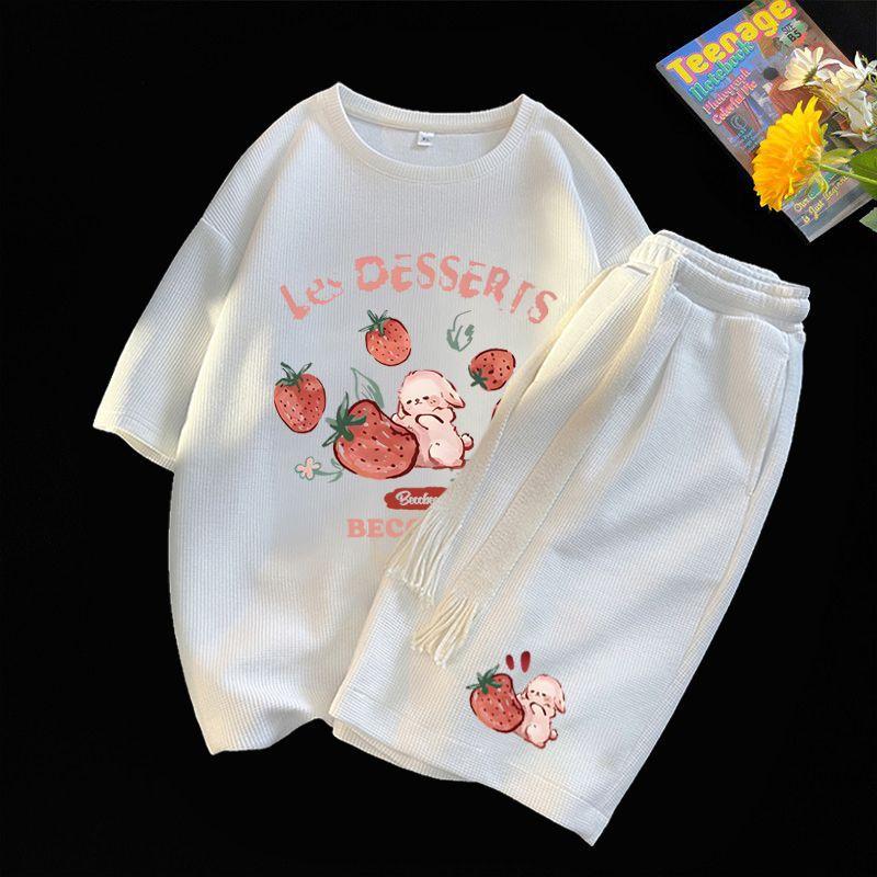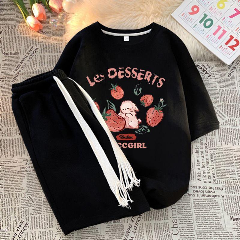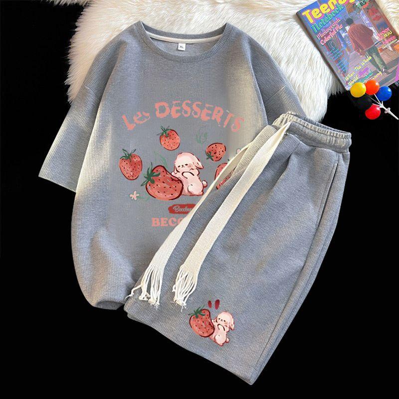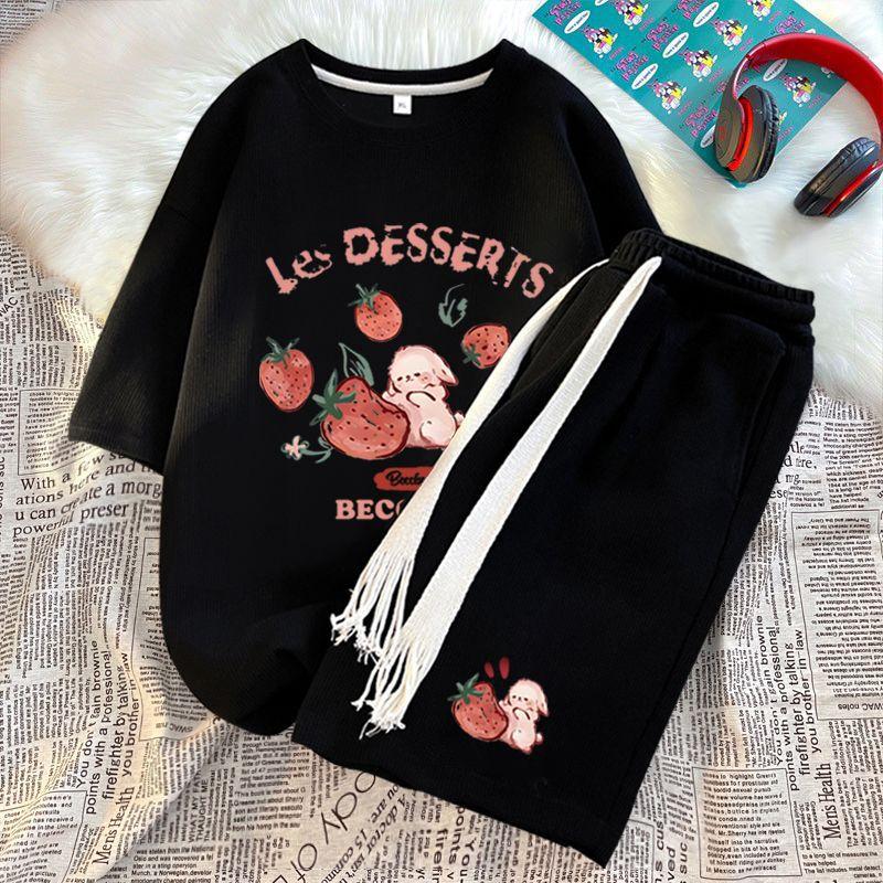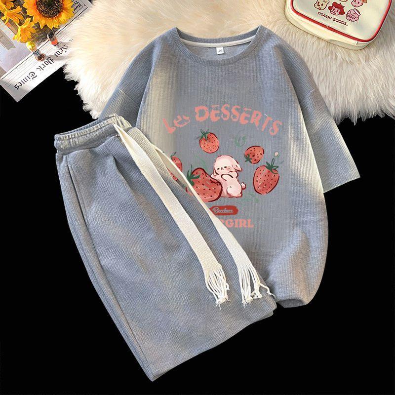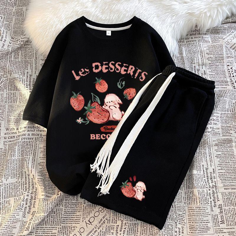 Traje Deportivo Casual de Moda para Hombres y Mujeres Verano 2025 Nuevo Estilo Estilo Extranjero Reductor de Edad Holgado de Manga Corta Pantalón de Pierna Ancha Conjunto de Dos Piezas
