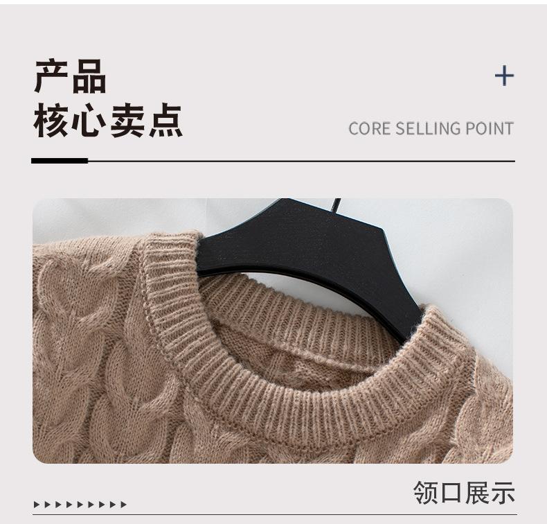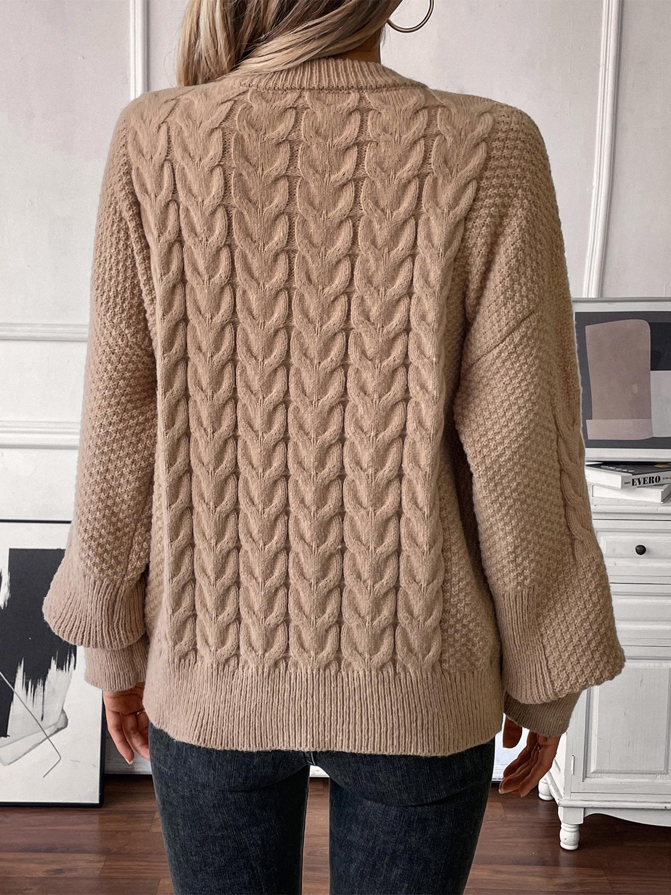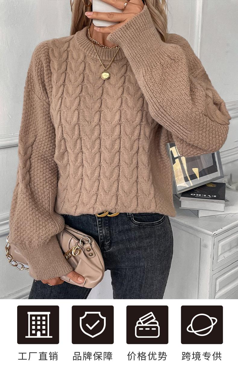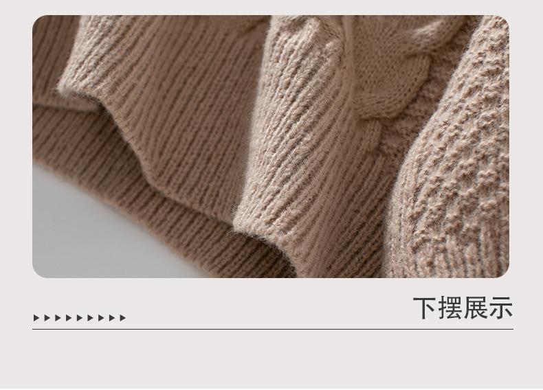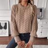 Suéter pullover mujer 2025 otoño e invierno nuevo estilo holgazán cuello redondo color sólido tejido de cable casual holgado prenda exterior top de punto