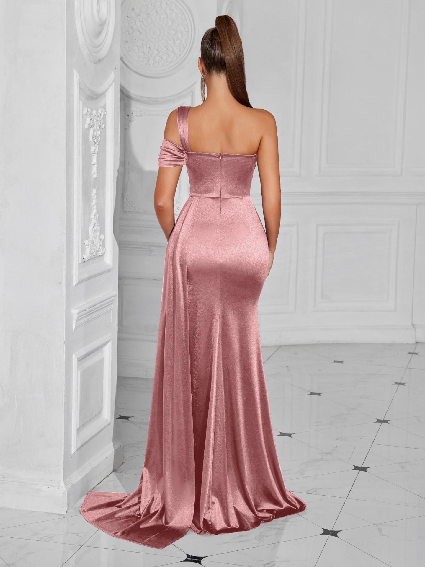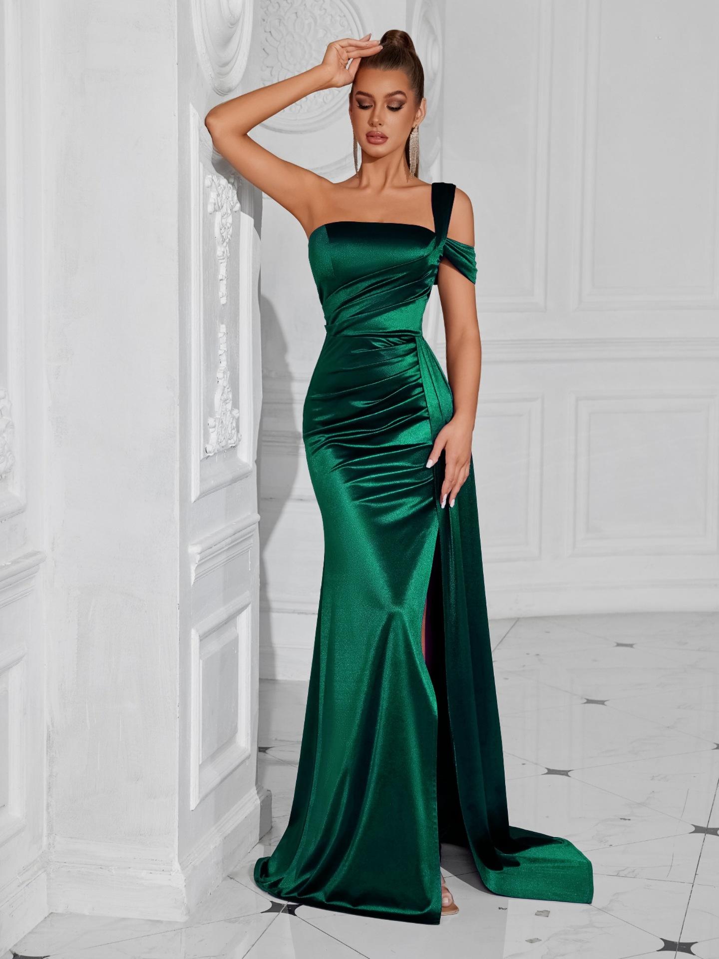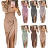 Amazon Transfronterizo Diseño Elegante Top de Tubo Vestido de Noche Abertura Plisado Ajustado Vestido de Fiesta