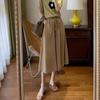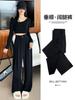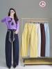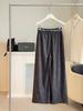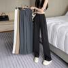 Pantalones elásticos de cintura alta y pierna ancha para mujer 2025 Otoño Nuevo Sueltos Drapeados Adelgazantes Texturizados Casuales con Cinturón Bufanda