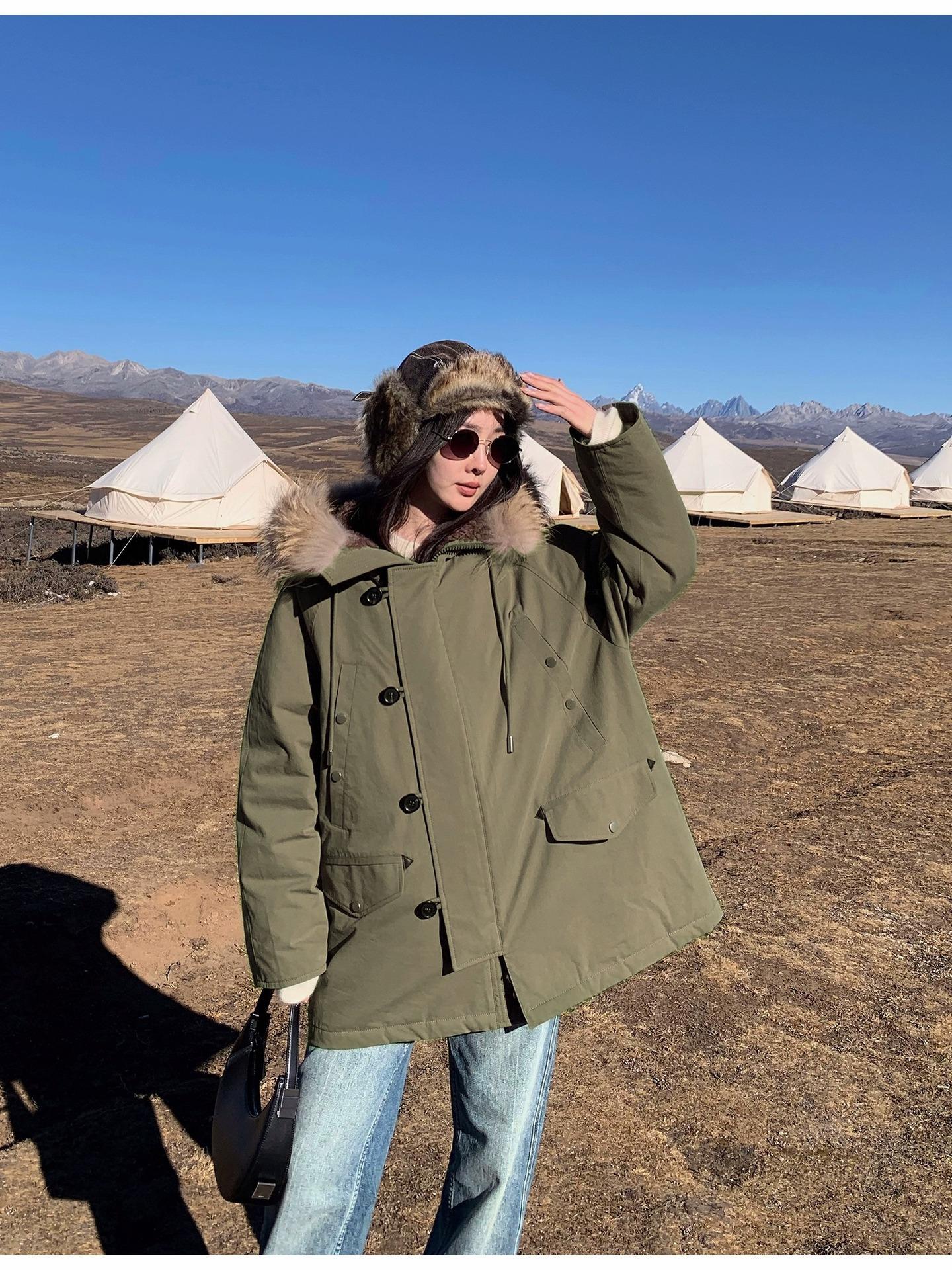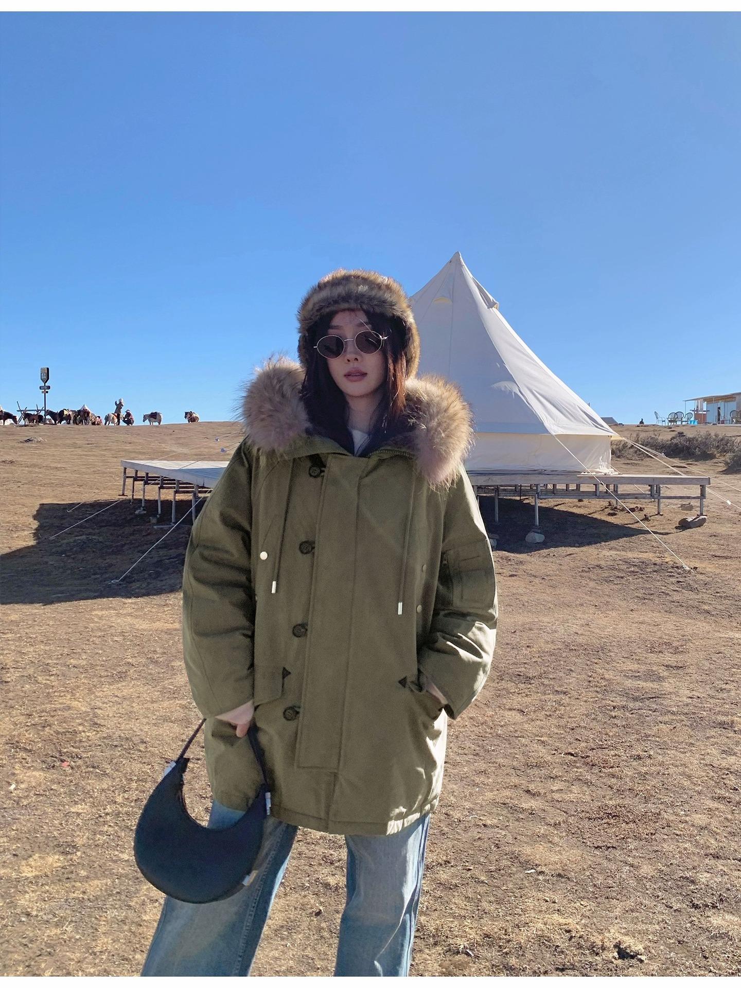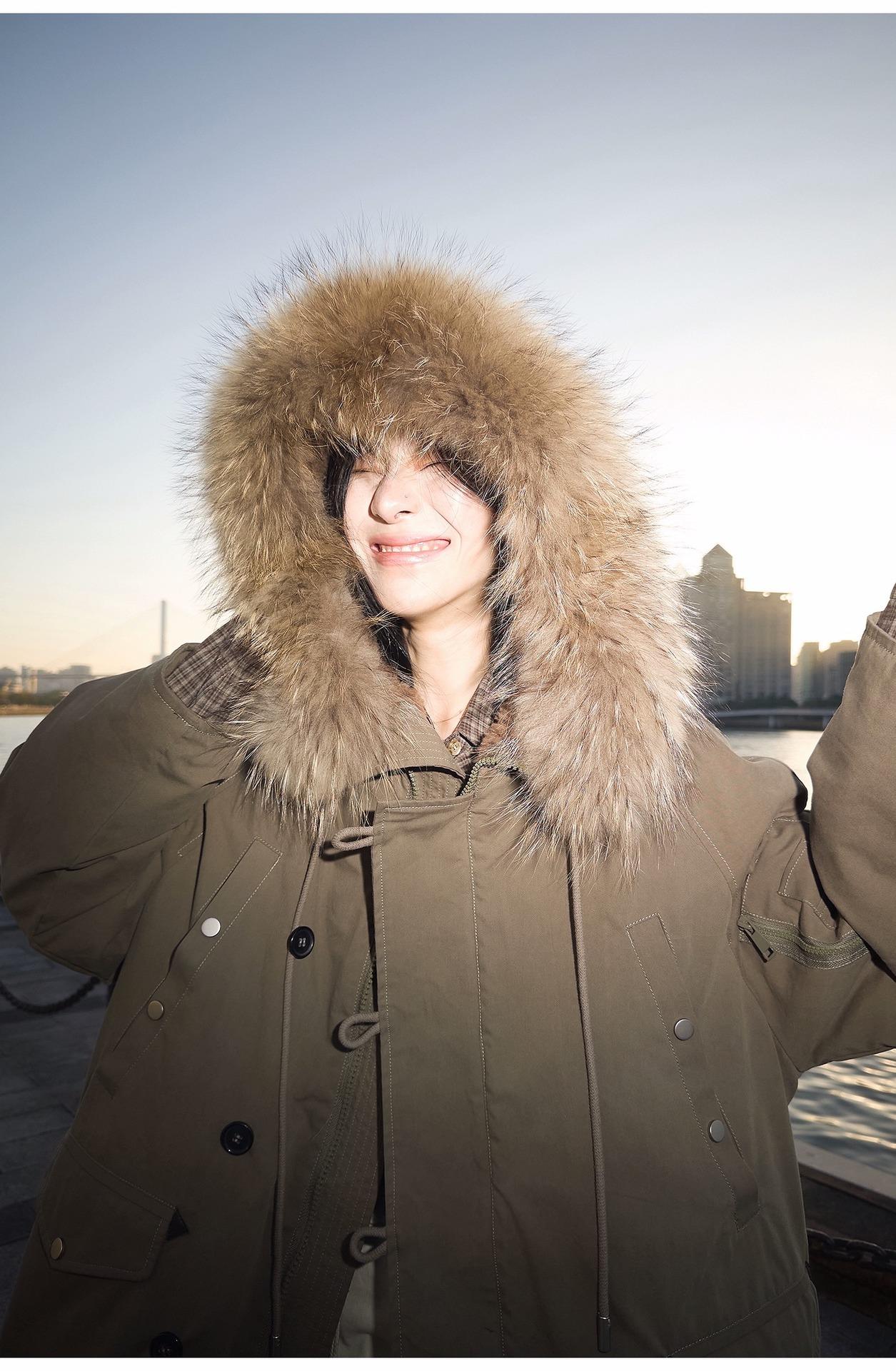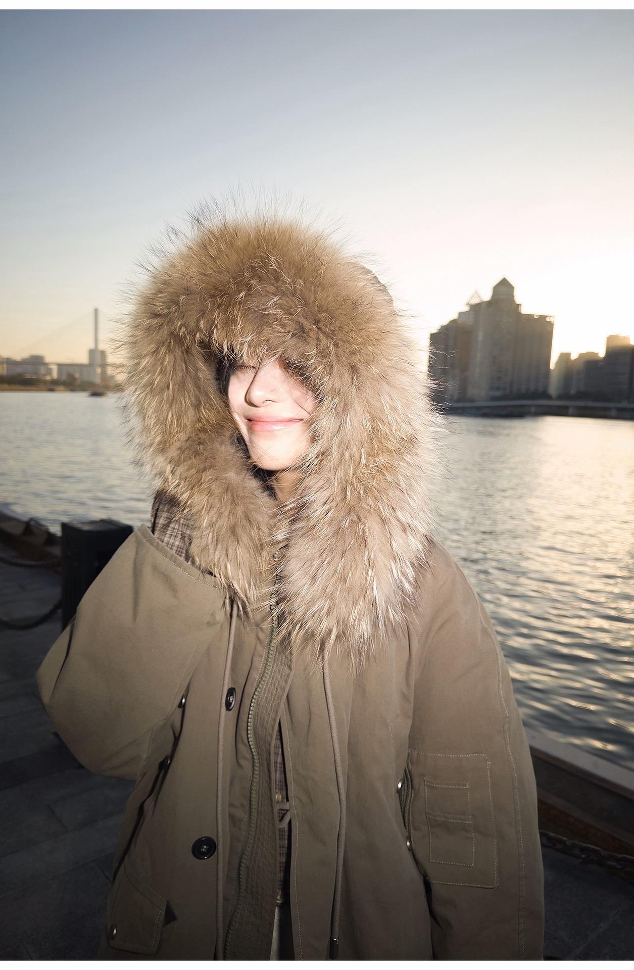 Parka de Moda Chaqueta de Plumas Mujer 2025 Invierno Cuello Grande de Piel de Mapache Espesada 90 Plumón de Pato Blanco Súper Bonita Abrigo para Ropa de Trabajo