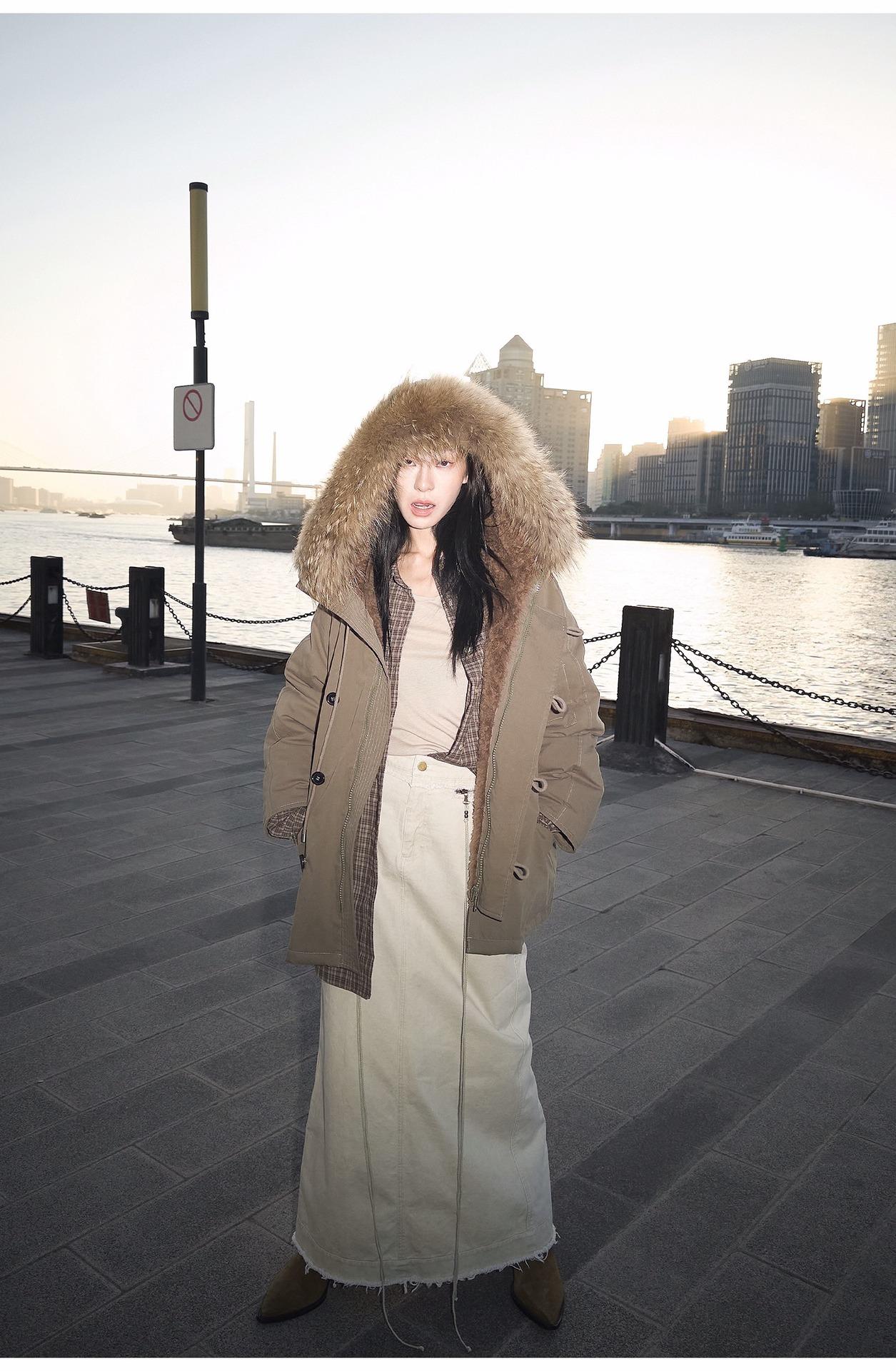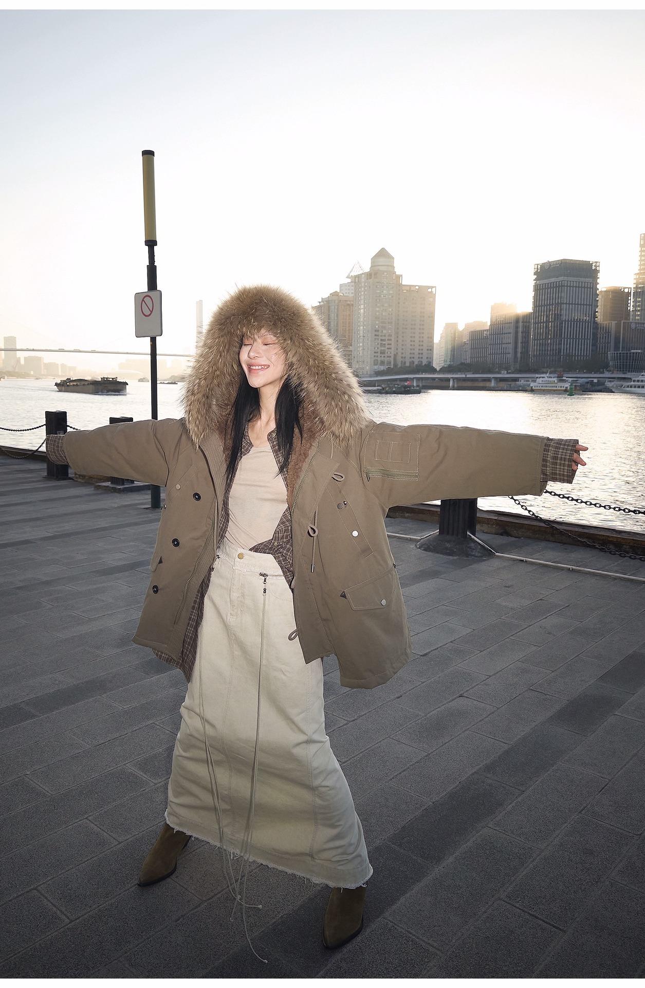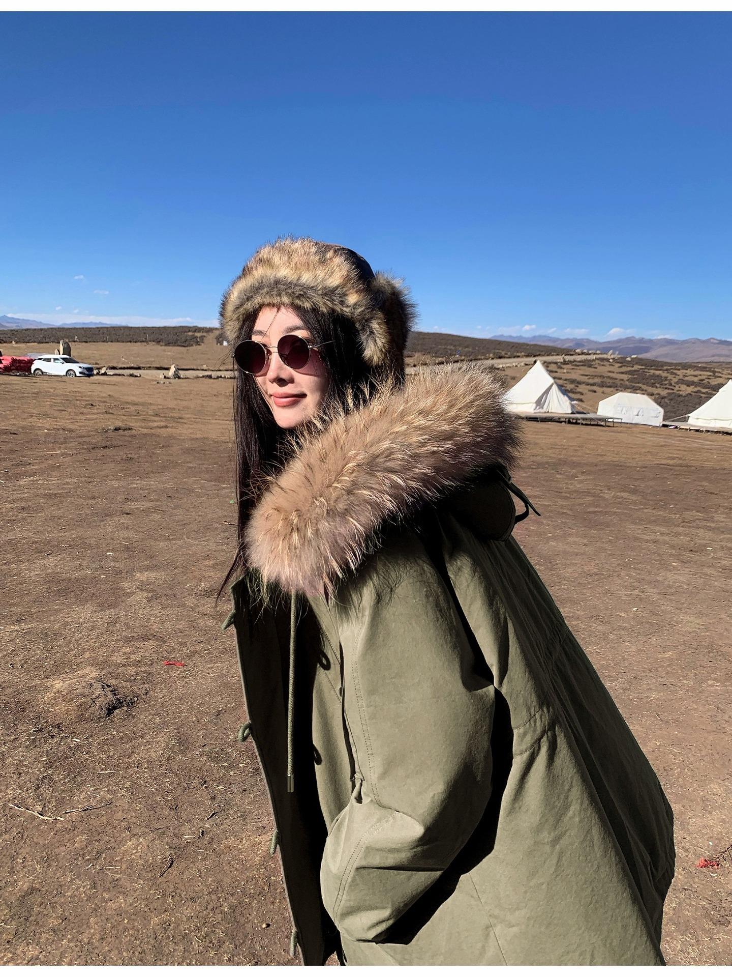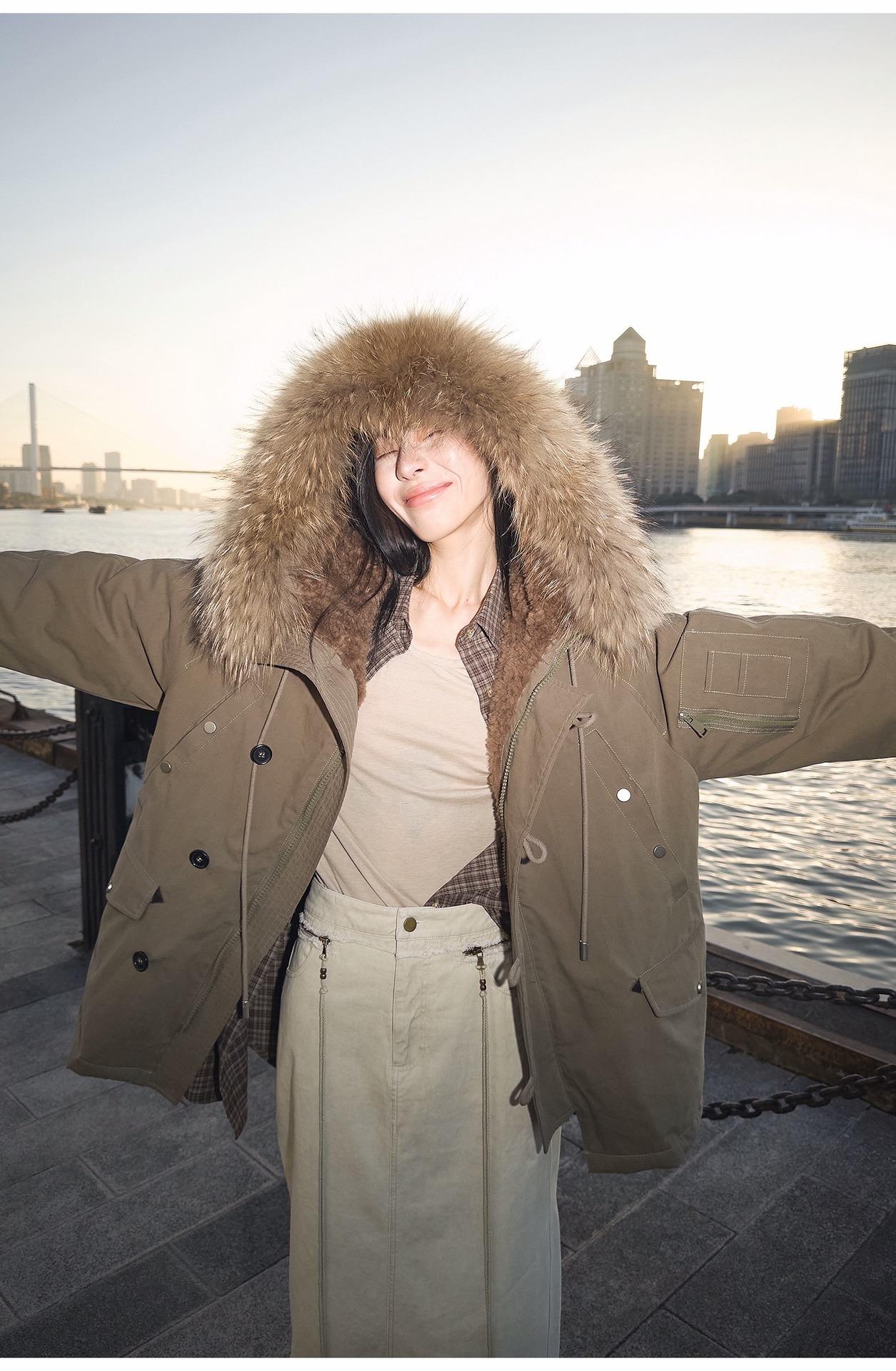 Parka de Moda Chaqueta de Plumas Mujer 2025 Invierno Cuello Grande de Piel de Mapache Espesada 90 Plumón de Pato Blanco Súper Bonita Abrigo para Ropa de Trabajo