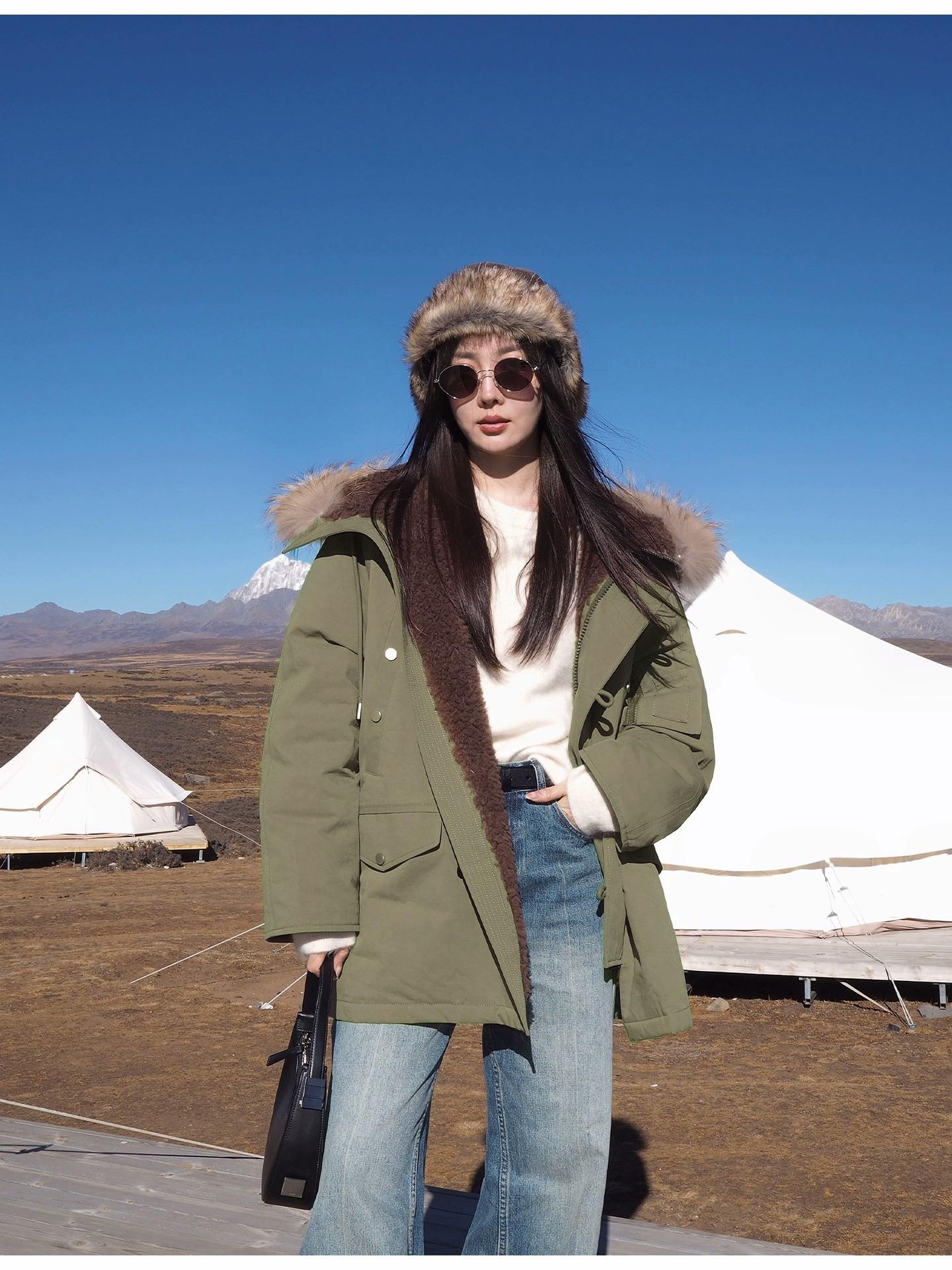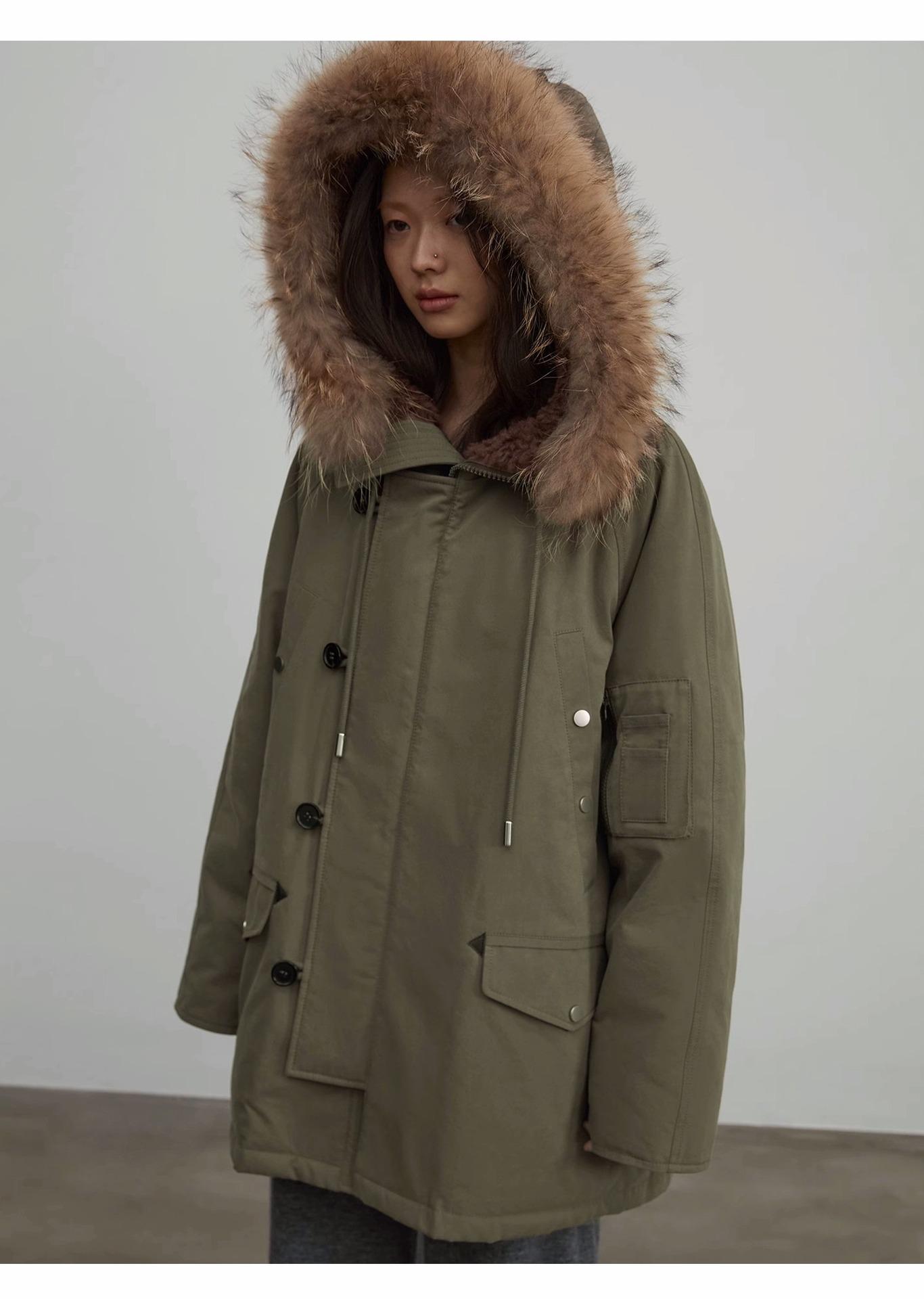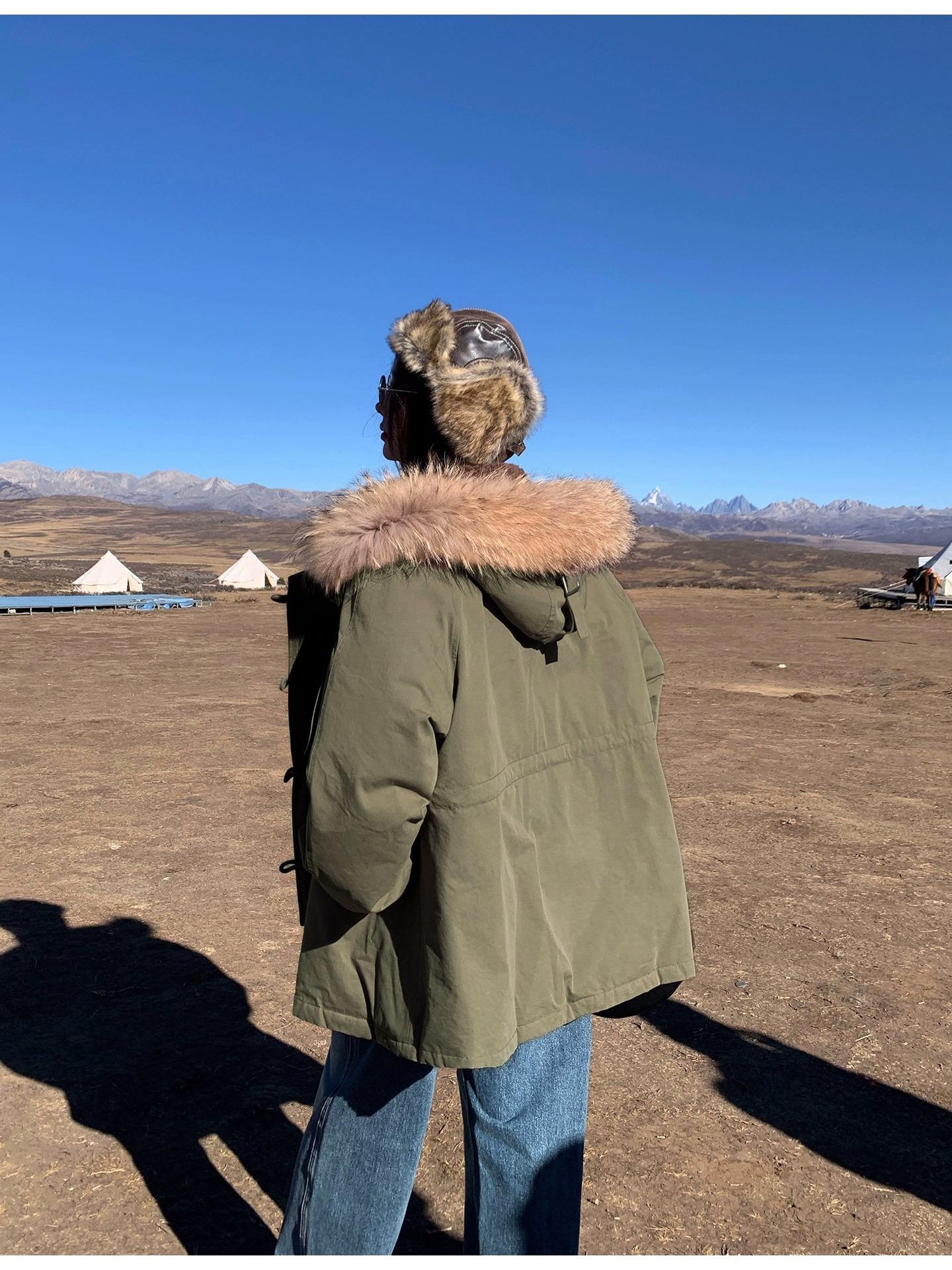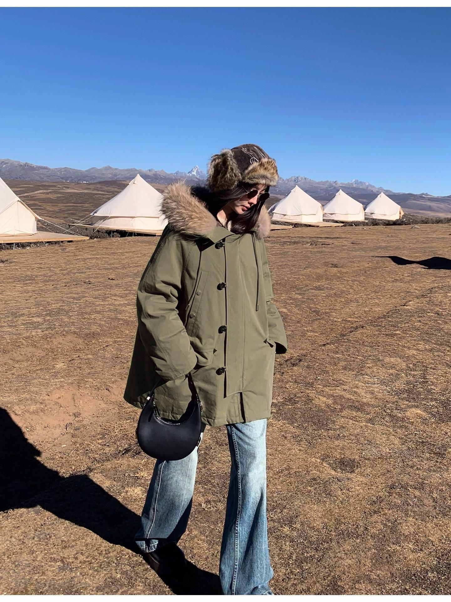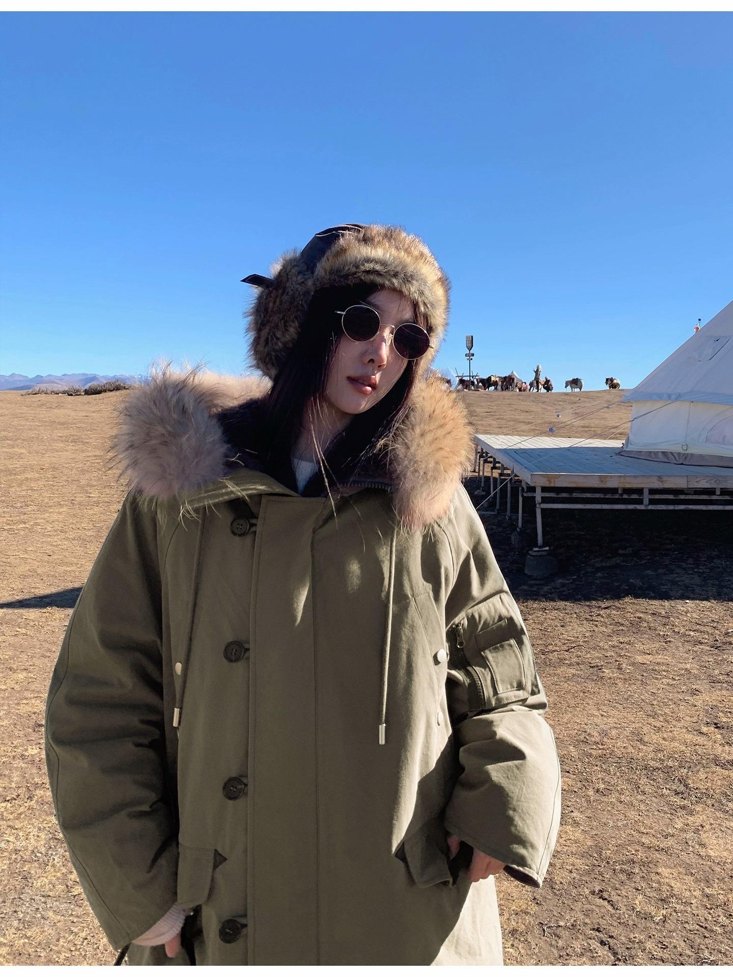 Parka de Moda Chaqueta de Plumas Mujer 2025 Invierno Cuello Grande de Piel de Mapache Espesada 90 Plumón de Pato Blanco Súper Bonita Abrigo para Ropa de Trabajo