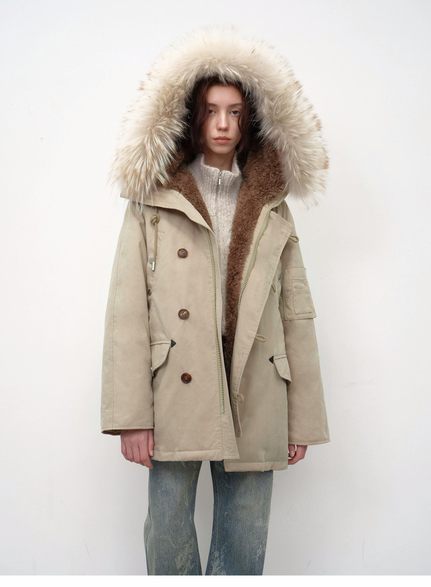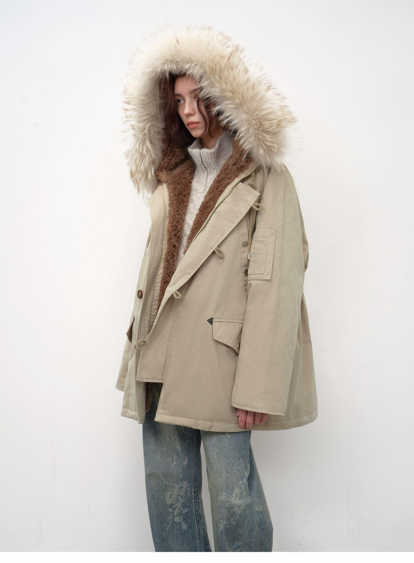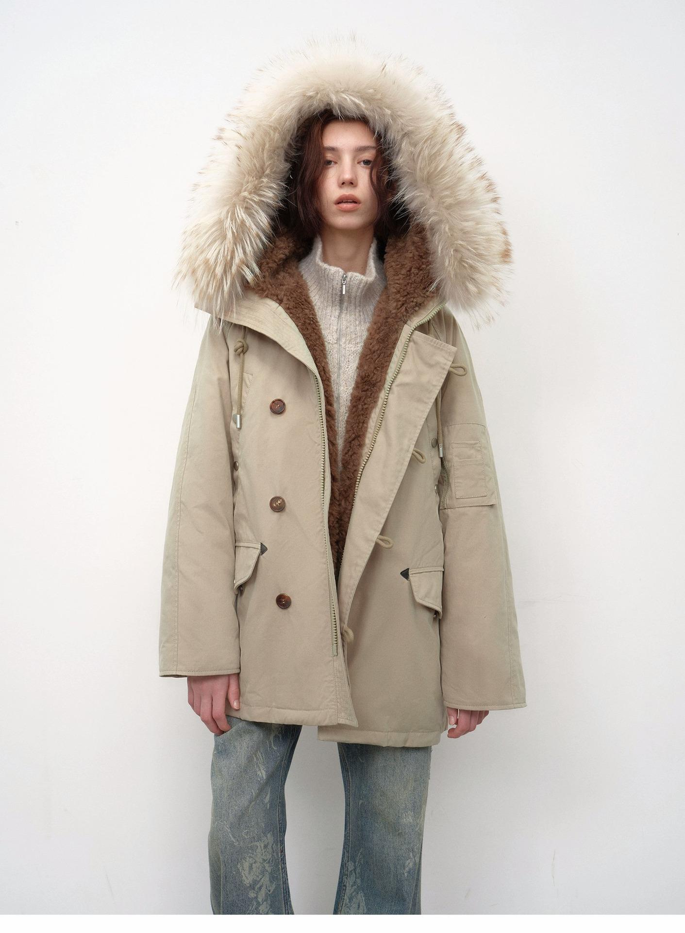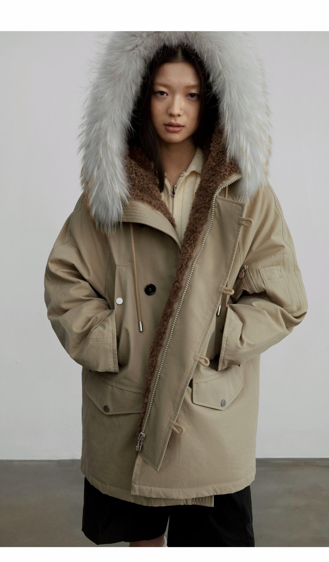 Parka de Moda Chaqueta de Plumas Mujer 2025 Invierno Cuello Grande de Piel de Mapache Espesada 90 Plumón de Pato Blanco Súper Bonita Abrigo para Ropa de Trabajo