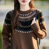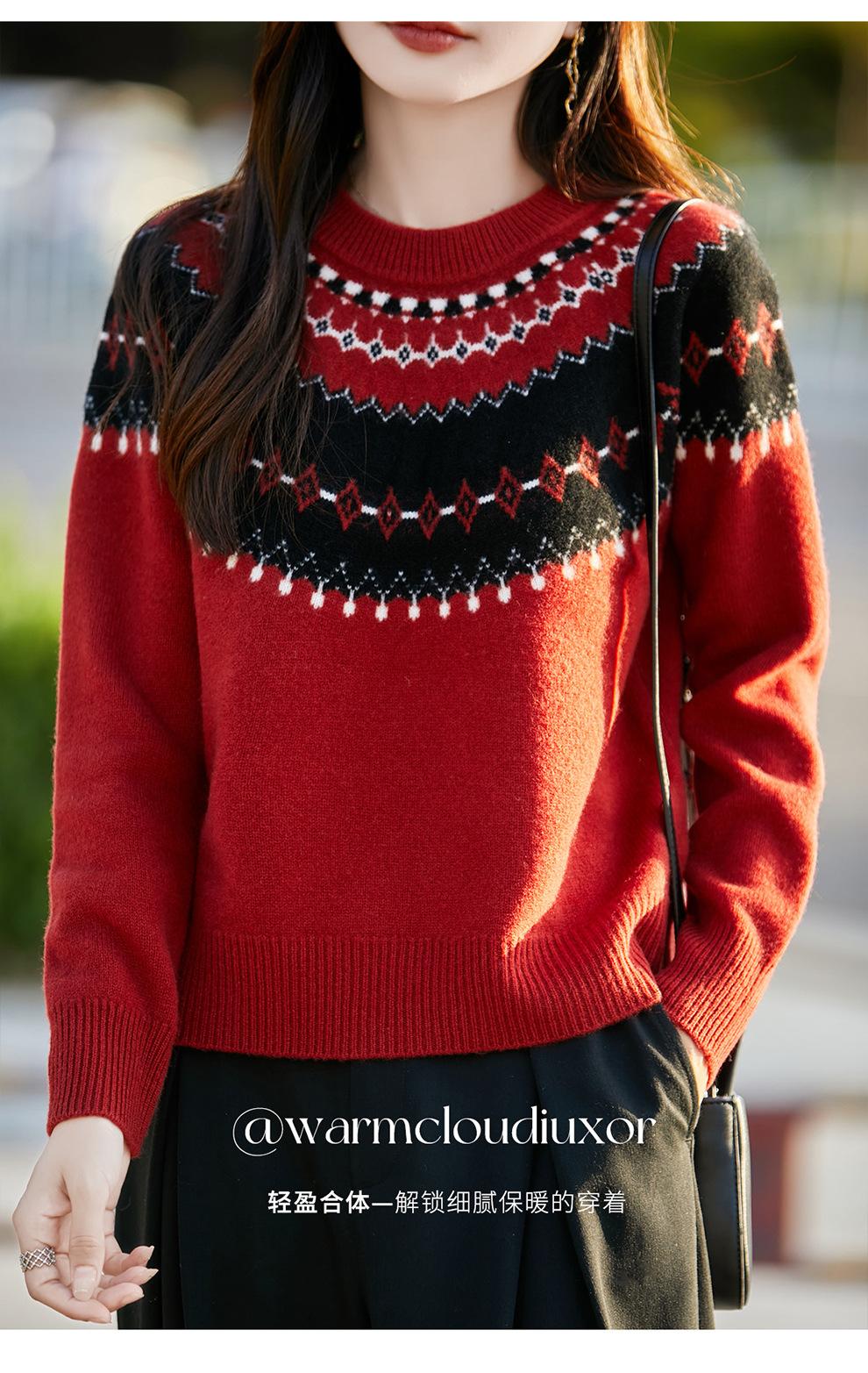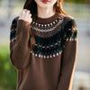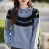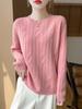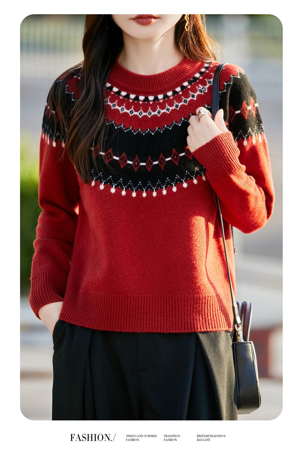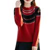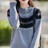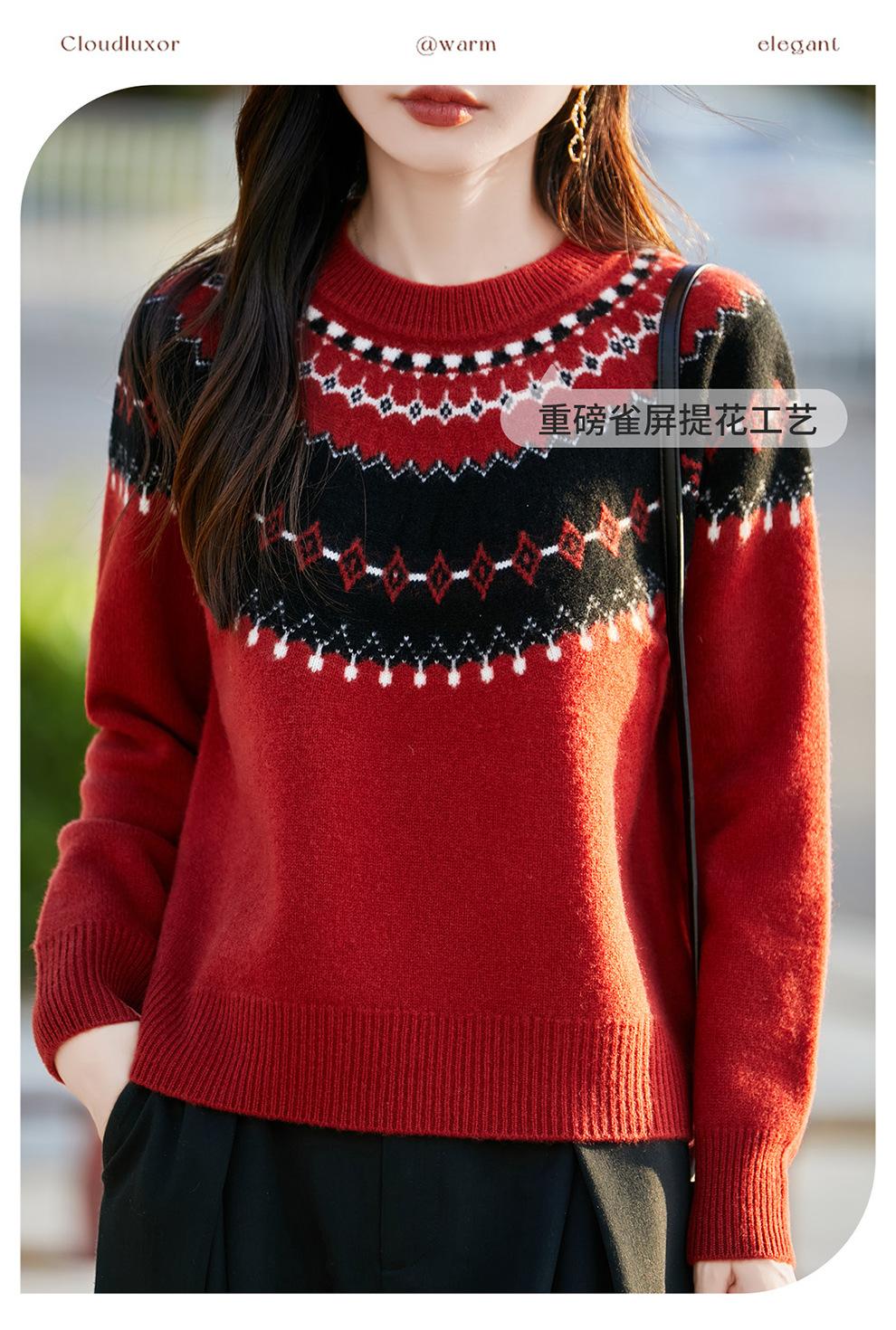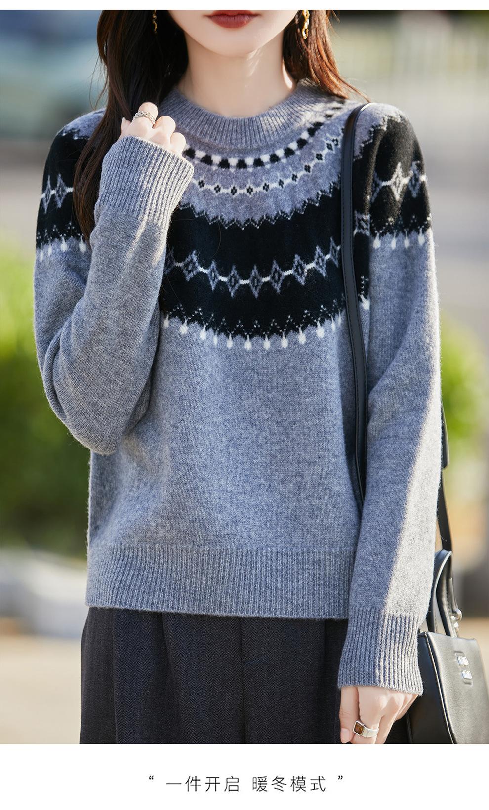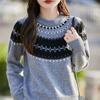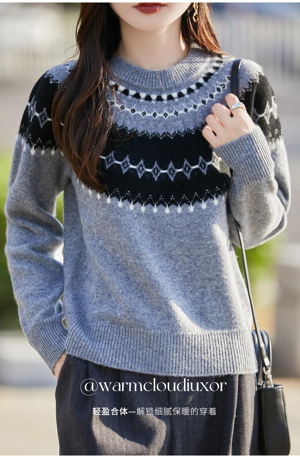 25 Otoño/Invierno Nuevo Estilo Lana Pura Cuello Redondo Suéter Tejido Manga Larga Mujer Jacquard Jersey Suave y Cálido Capa Base Top