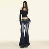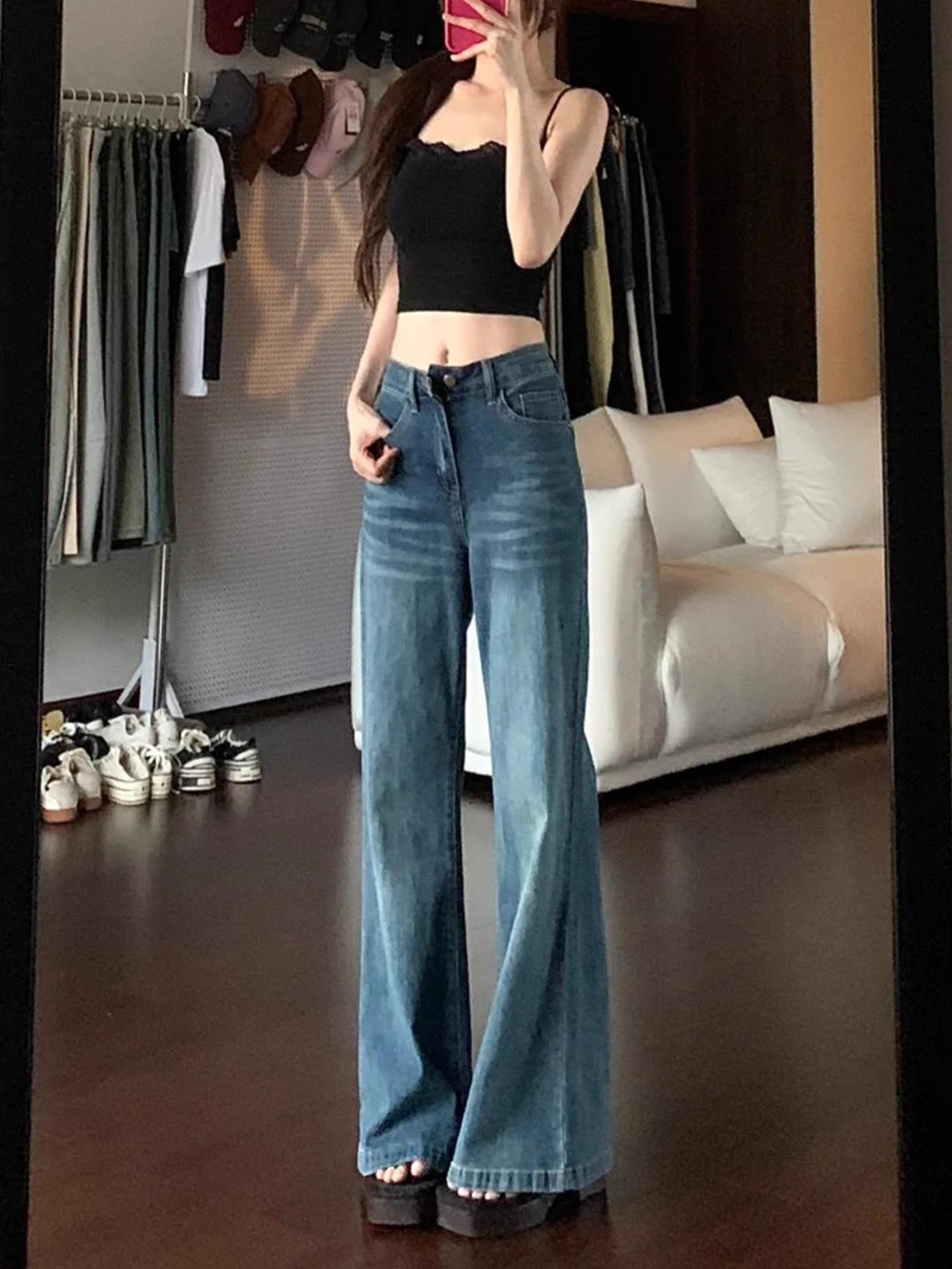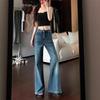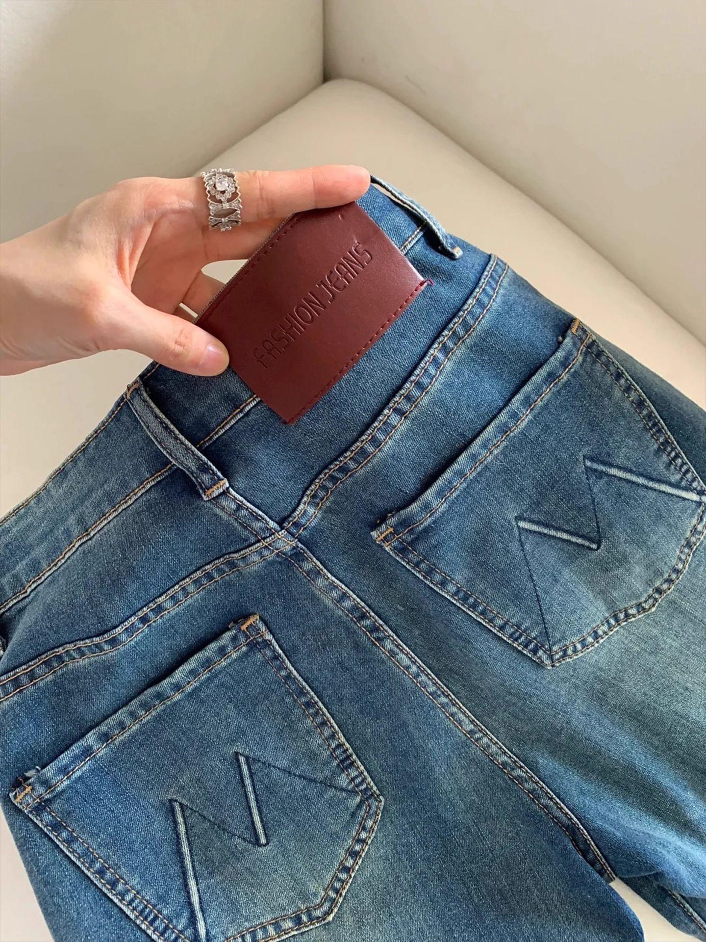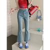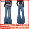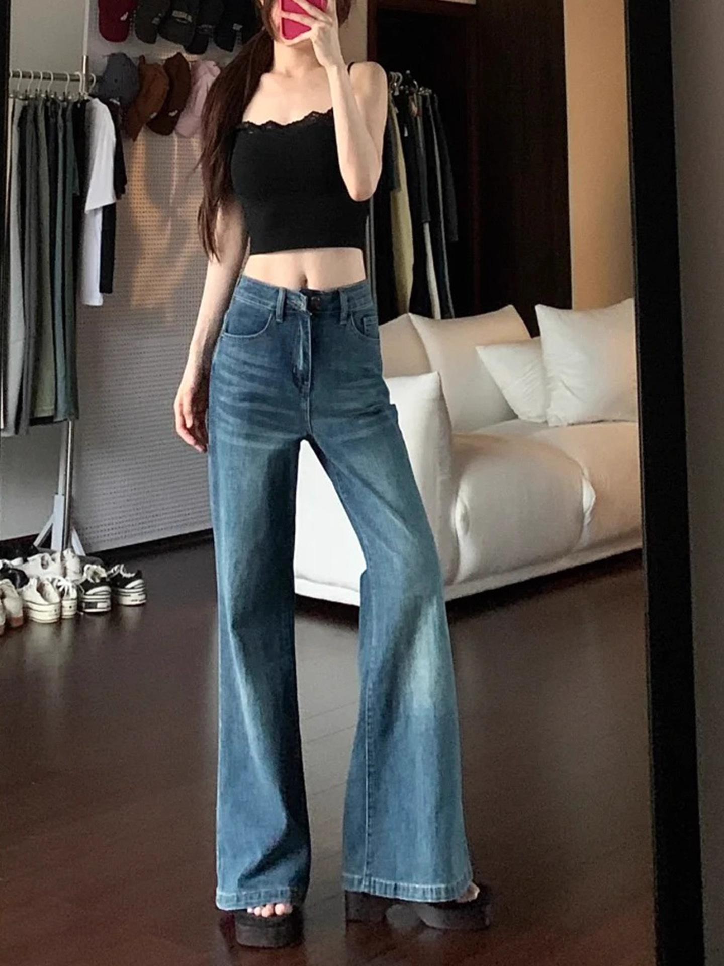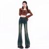 Jeans retro microacampanados elásticos para mujer talla grande 2025 otoño nuevo cintura alta adelgazantes pantalones de herradura pantalones acampanados