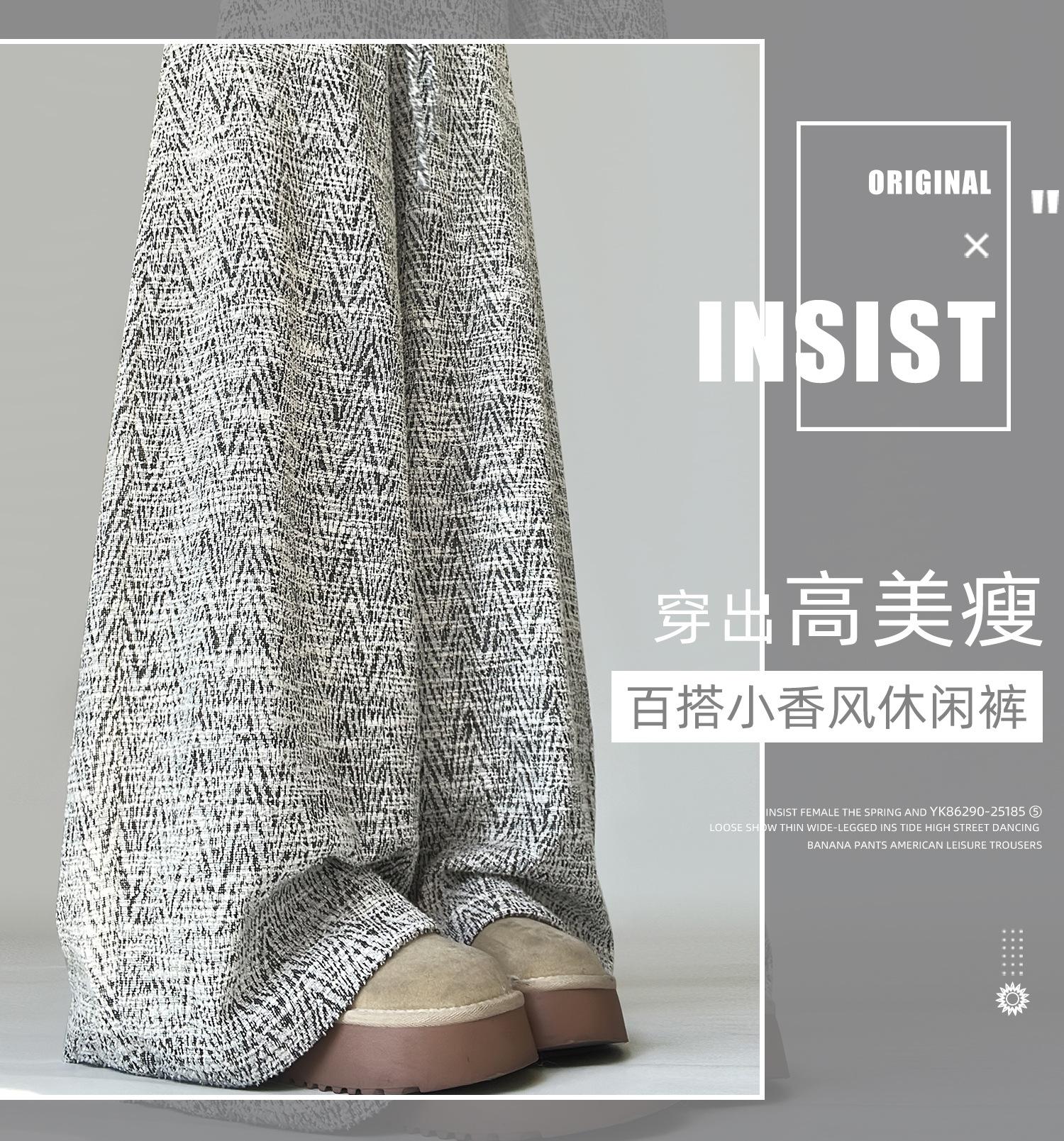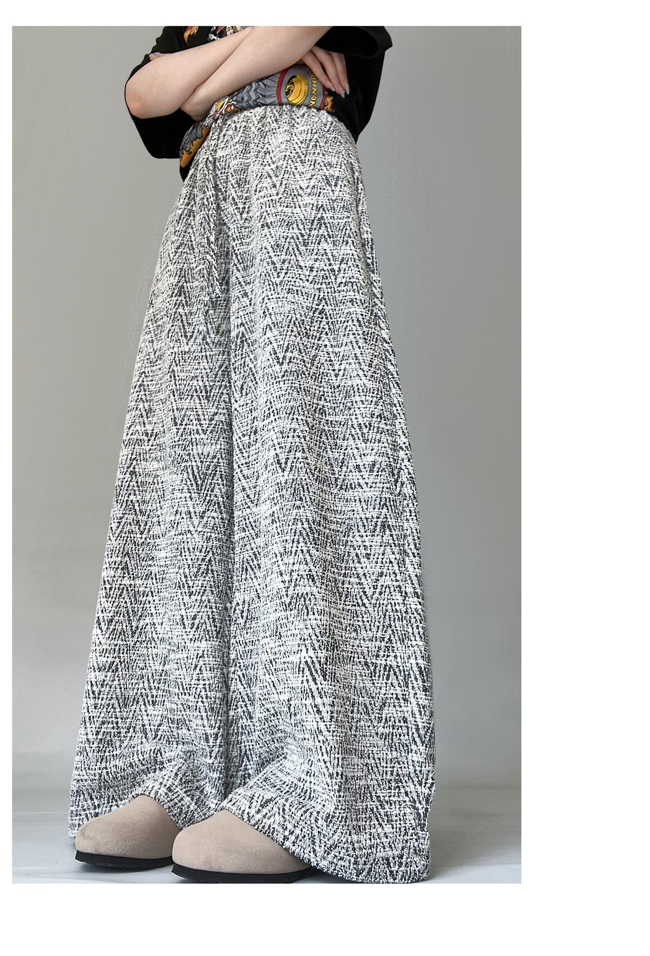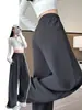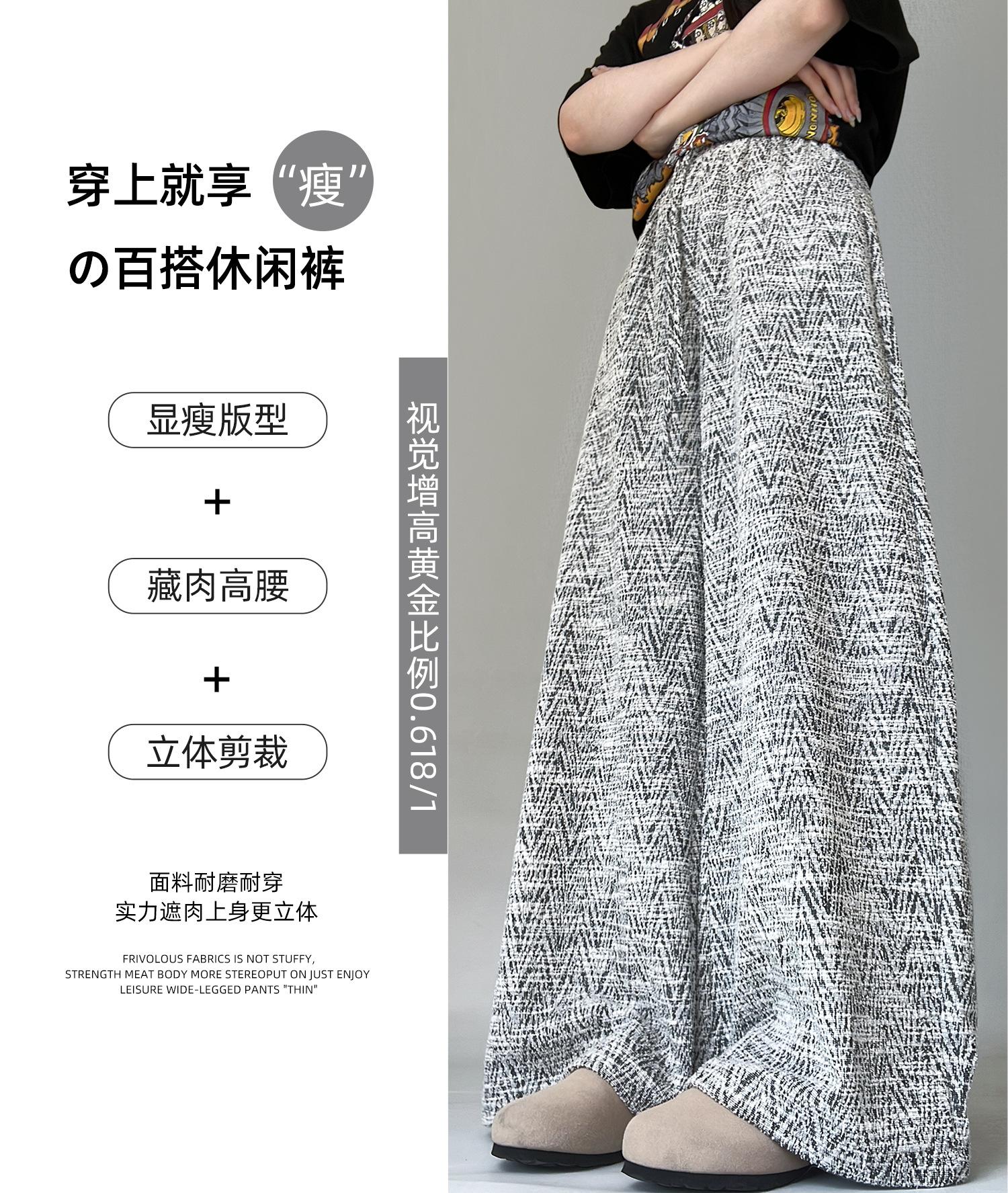 Pantalones grises de pierna ancha estilo Chanel para mujer otoño 2025 nuevos petite de talle alto adelgazantes estilo holgazán de pierna recta pantalones casuales