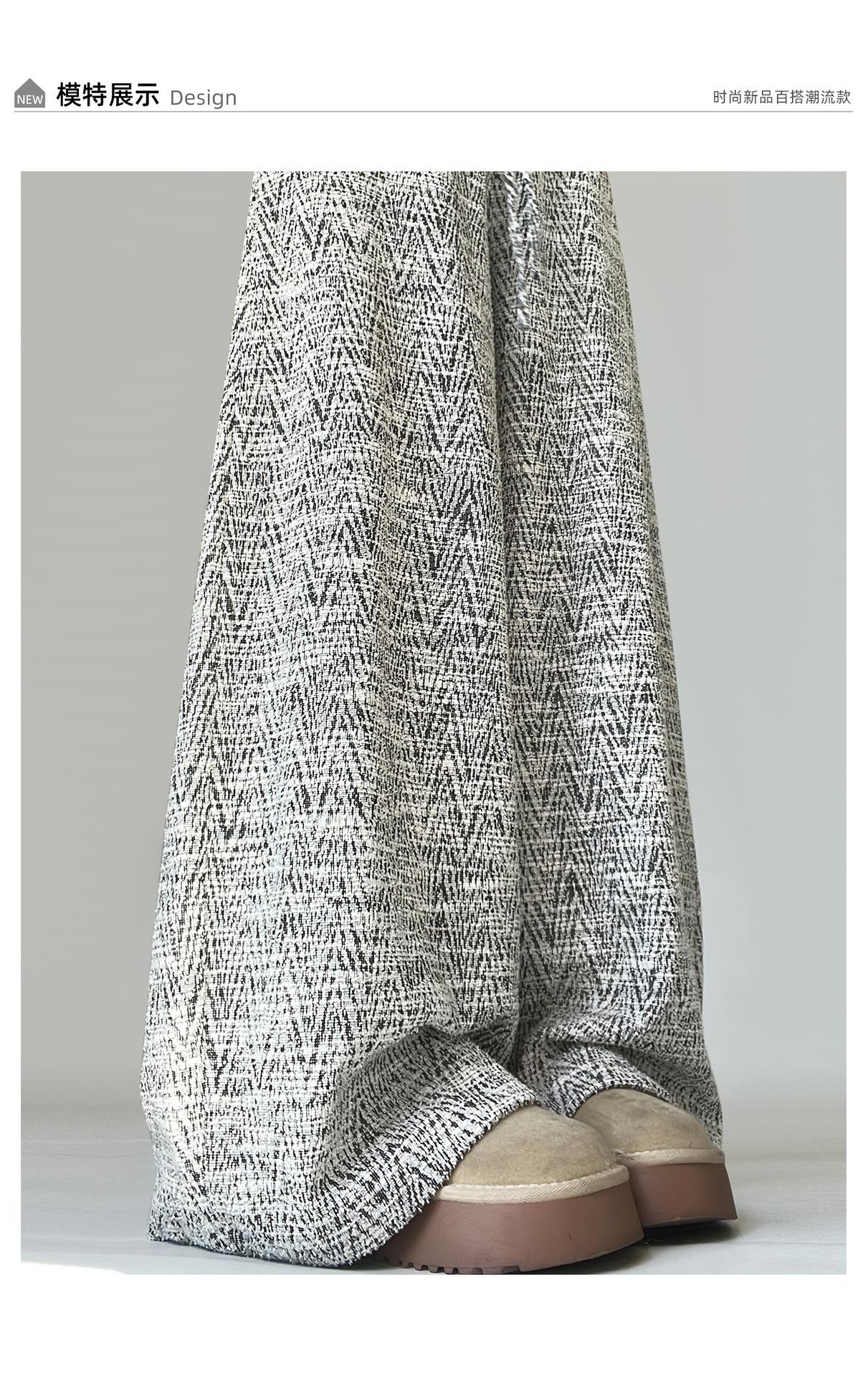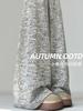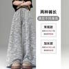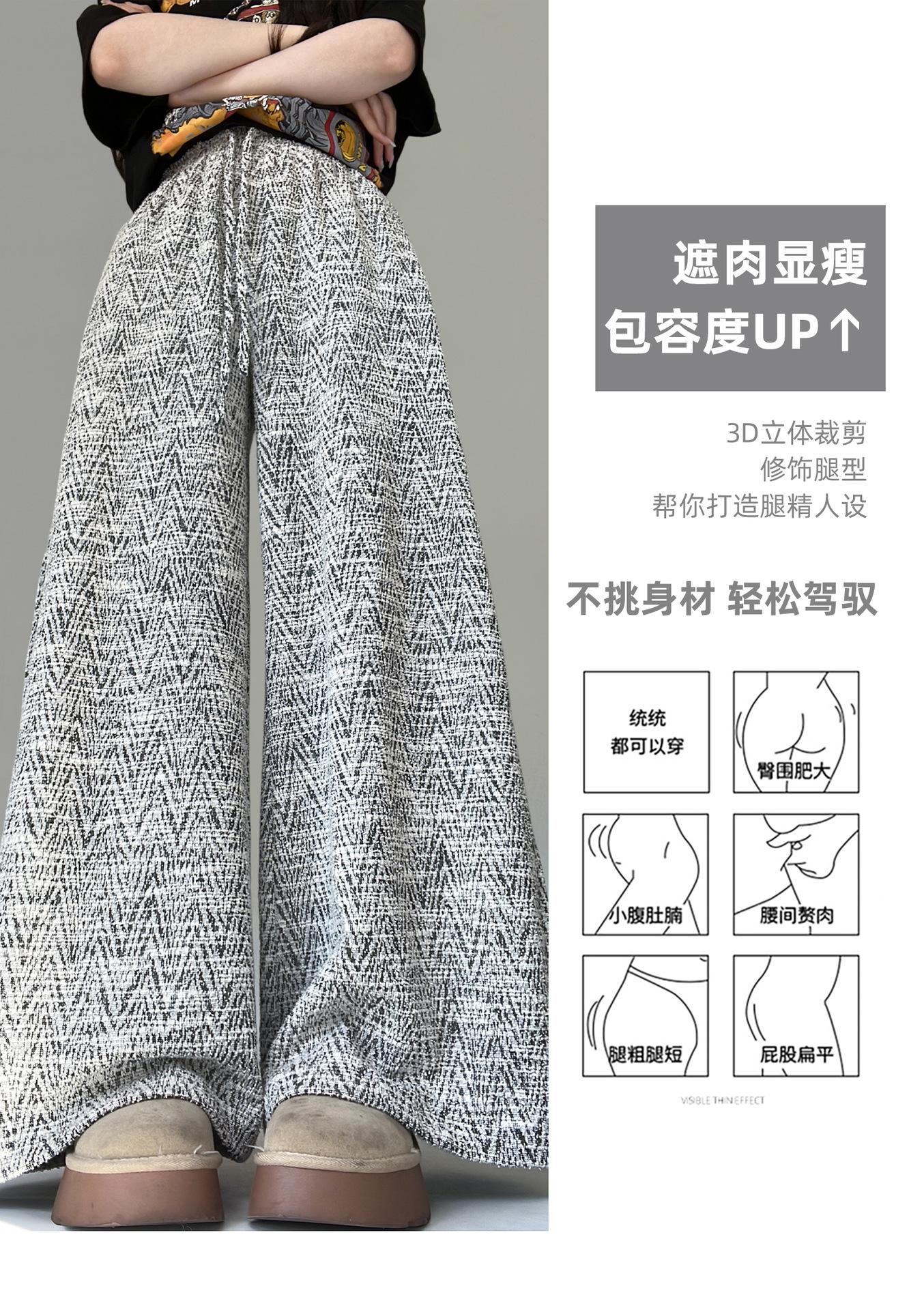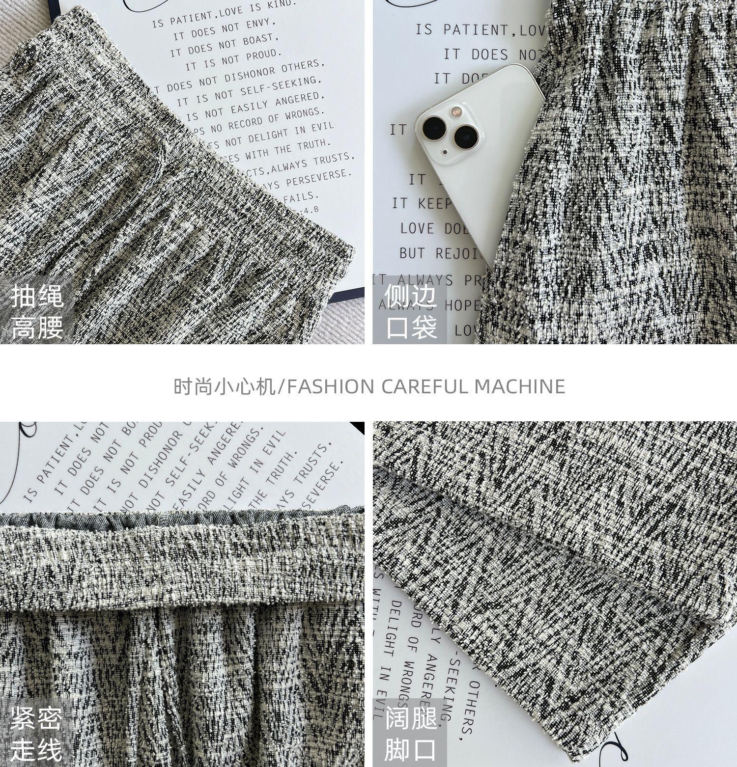 Pantalones grises de pierna ancha estilo Chanel para mujer otoño 2025 nuevos petite de talle alto adelgazantes estilo holgazán de pierna recta pantalones casuales