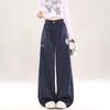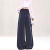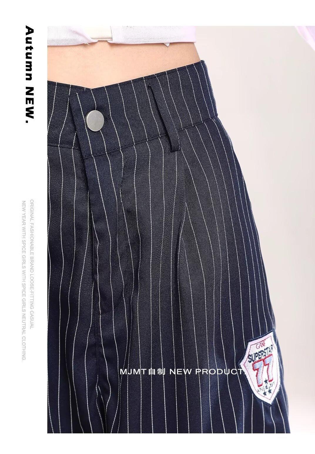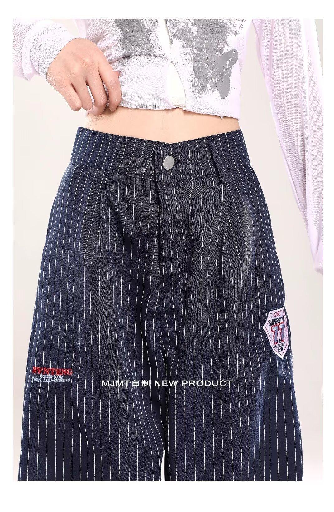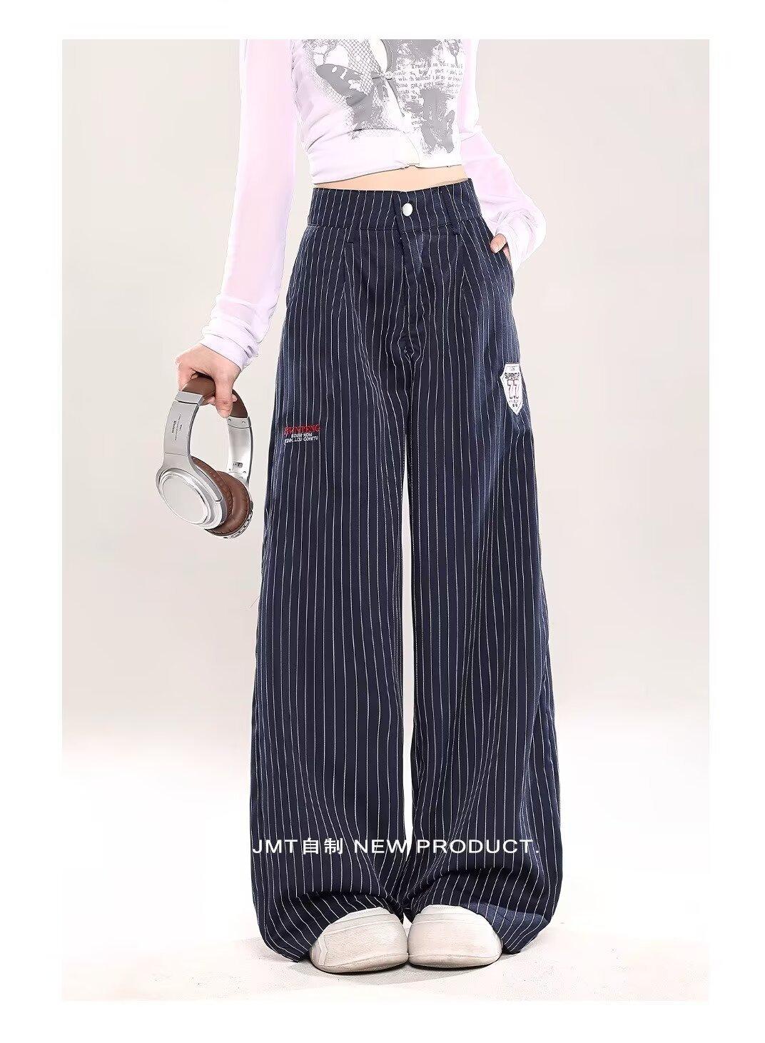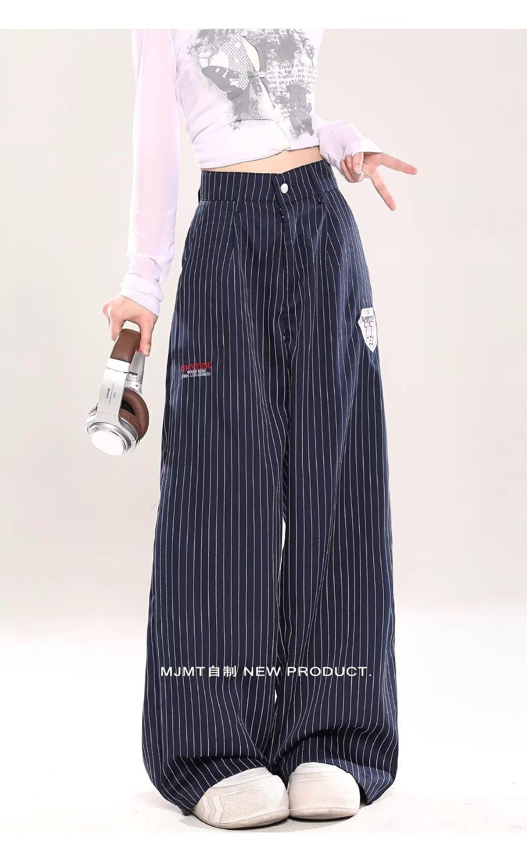 Pantalones anchos a rayas retro americanos para mujer verano nuevo cintura alta adelgazantes sueltos con caída pierna recta casuales hasta el suelo