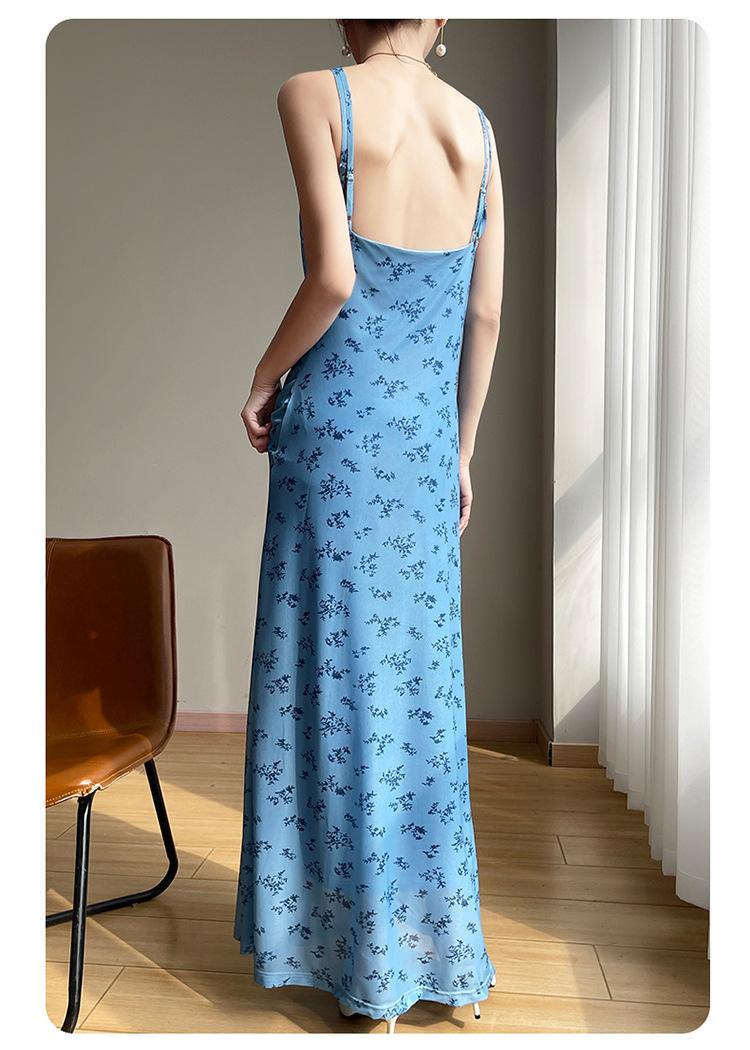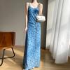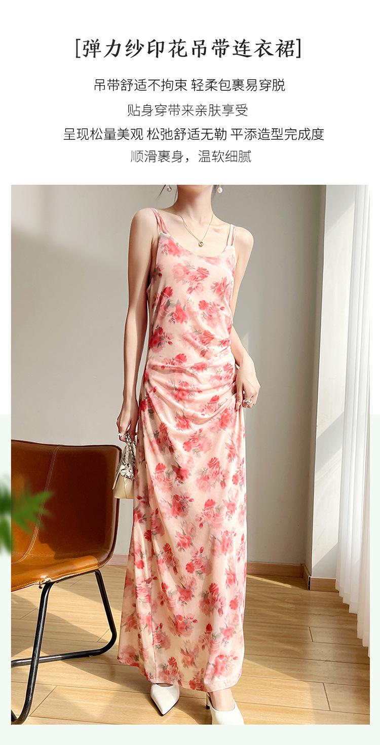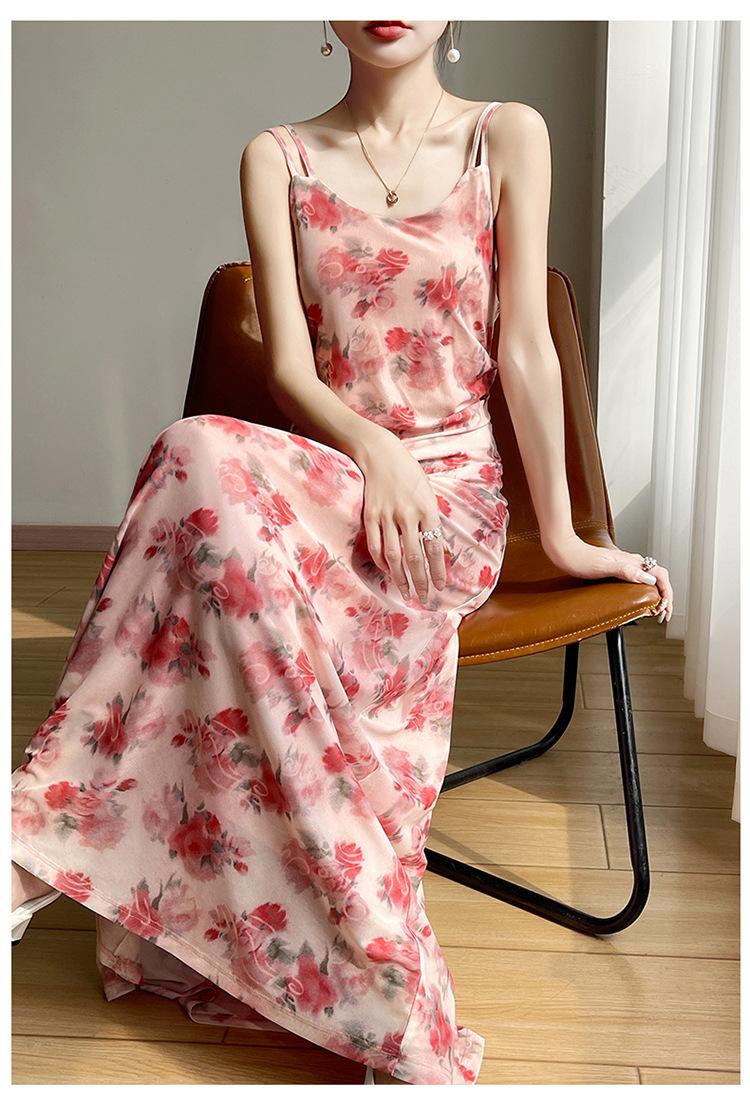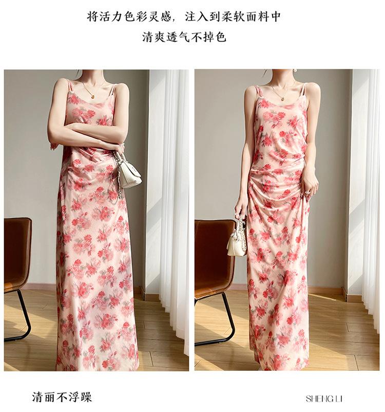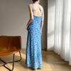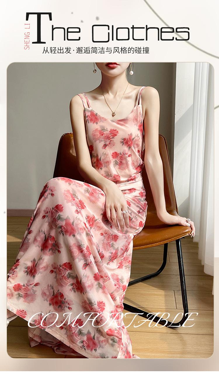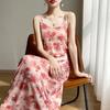 Primavera y Verano 2025 Nuevo Estilo Francés Floral Cuello U Doble Tirante Vestido Sling Sexy Sin Espalda Floral Vestido Largo para Mujer