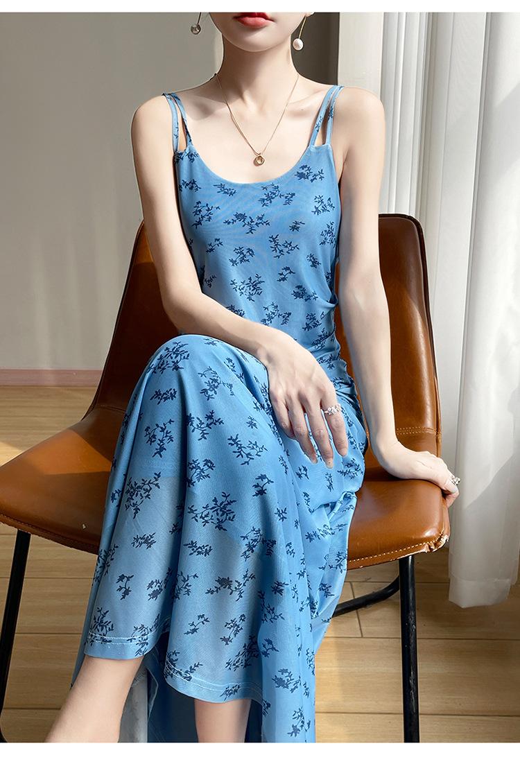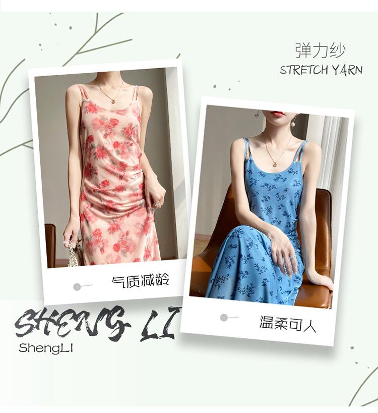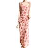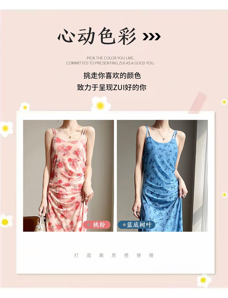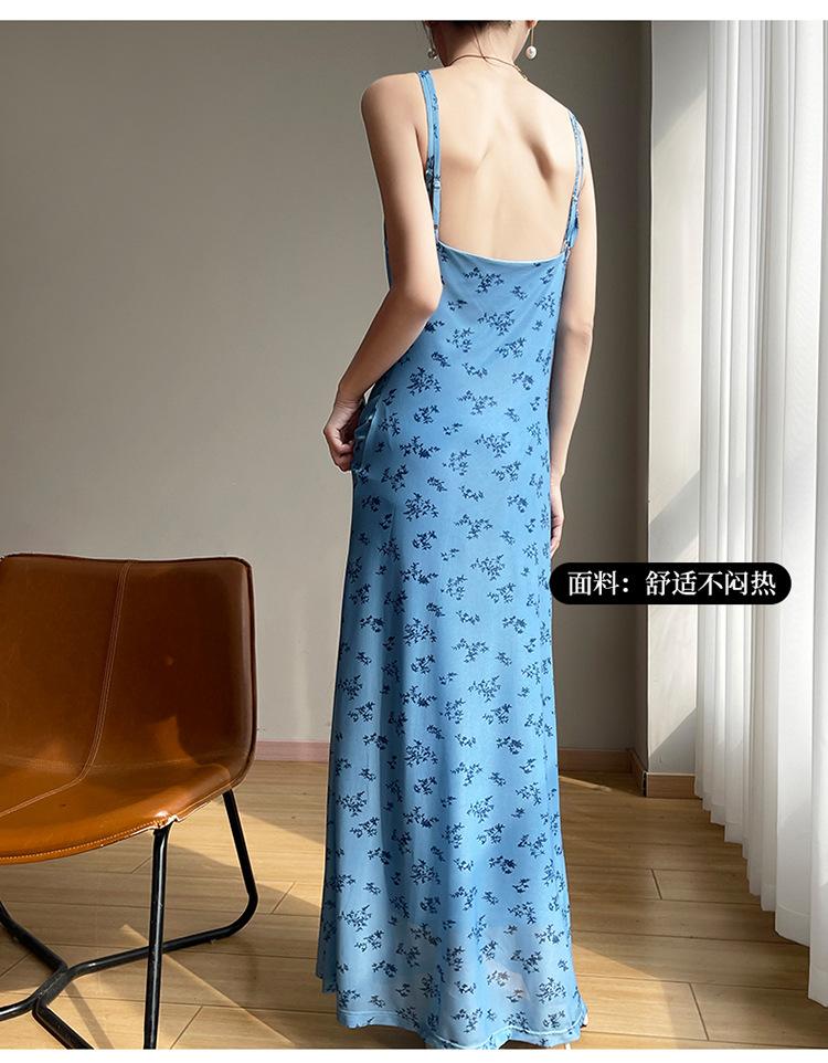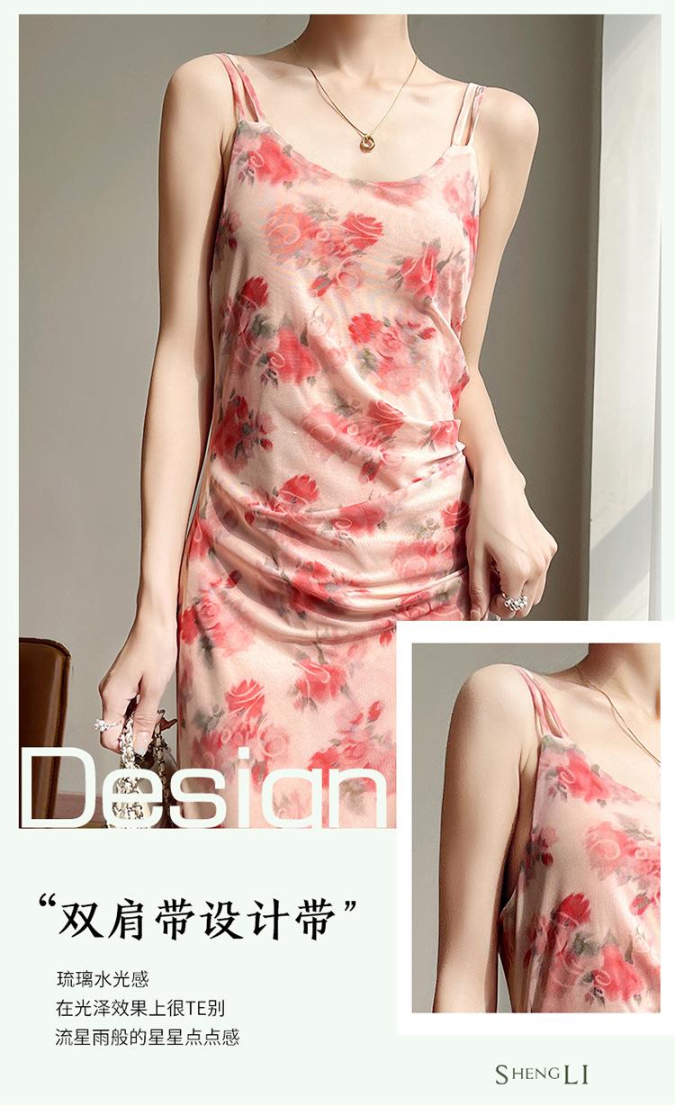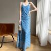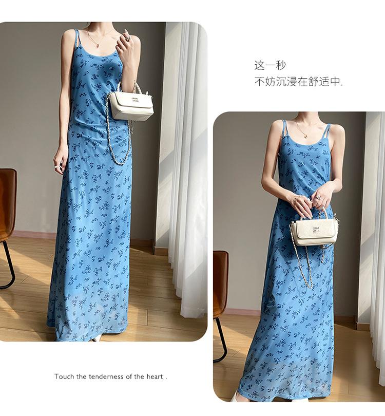 Primavera y Verano 2025 Nuevo Estilo Francés Floral Cuello U Doble Tirante Vestido Sling Sexy Sin Espalda Floral Vestido Largo para Mujer