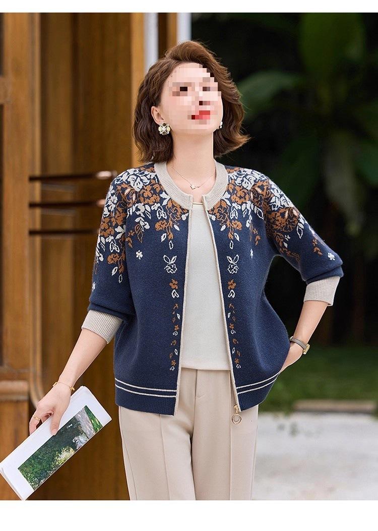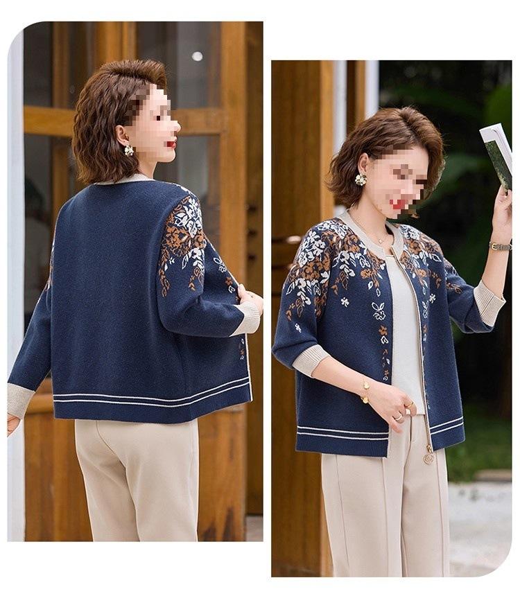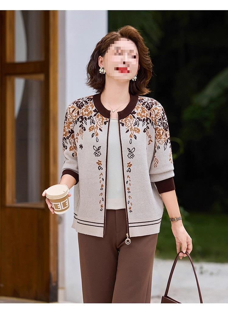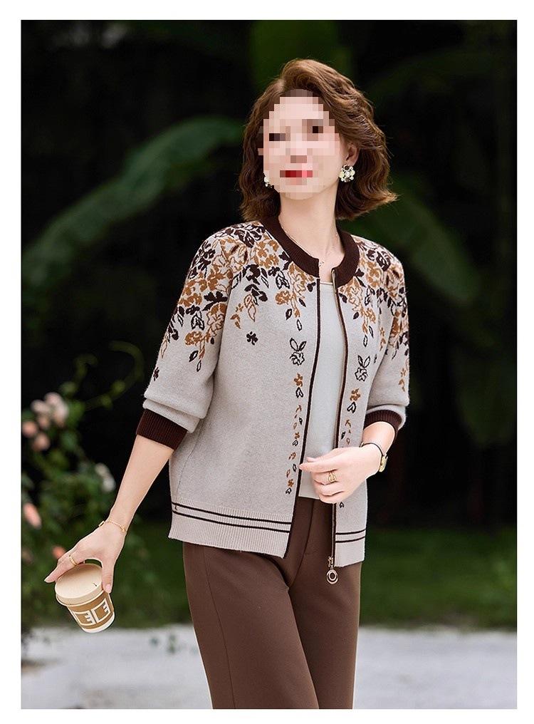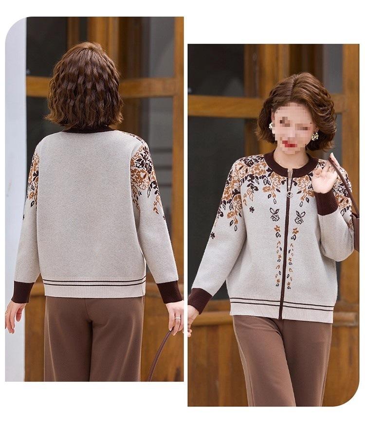 Abrigo Cárdigan de Punto de Otoño para Mamá Estilo Nuevo 2025 de Moda para Mujeres de Mediana Edad y Mayores Top Delgado con Cremallera para Otoño Primavera