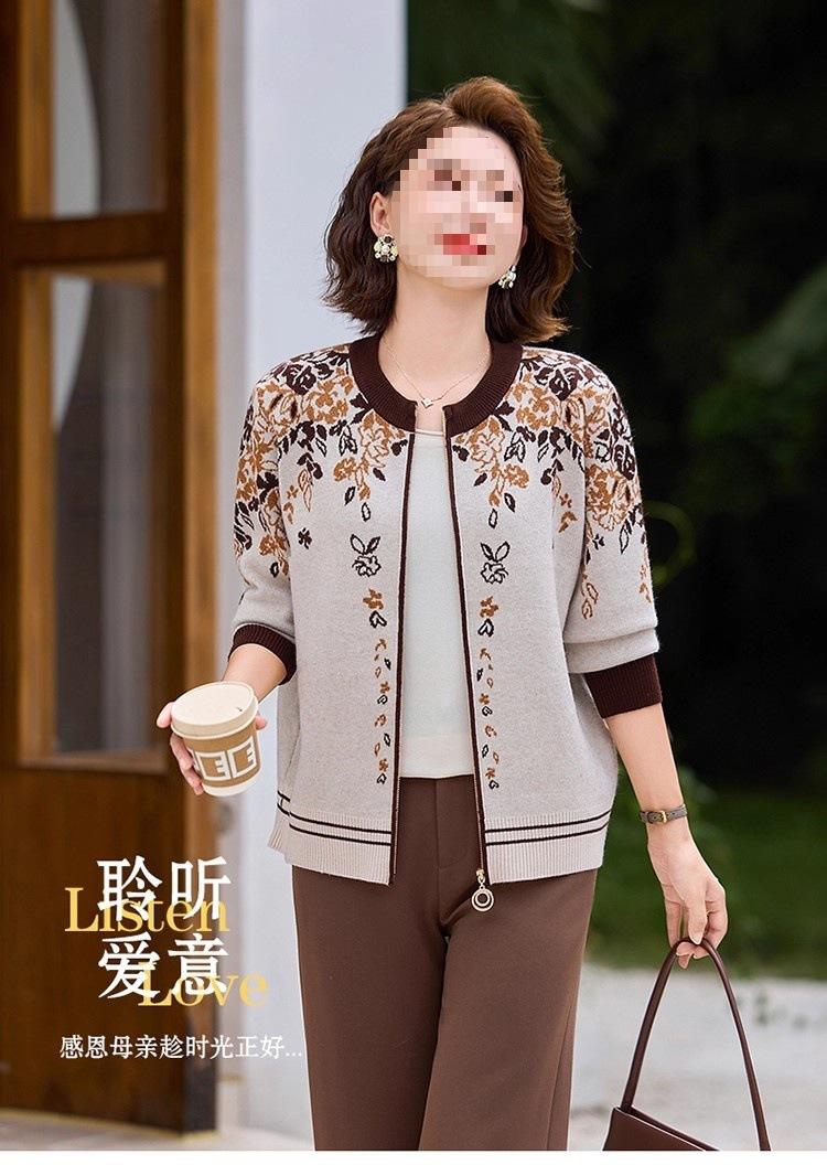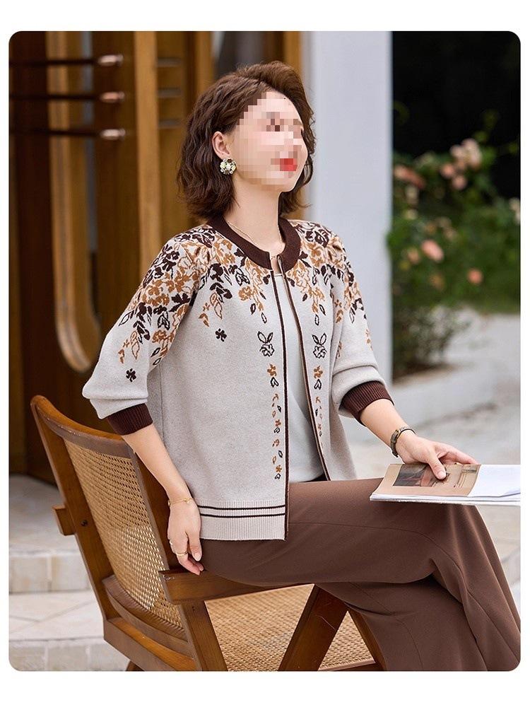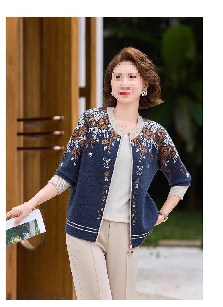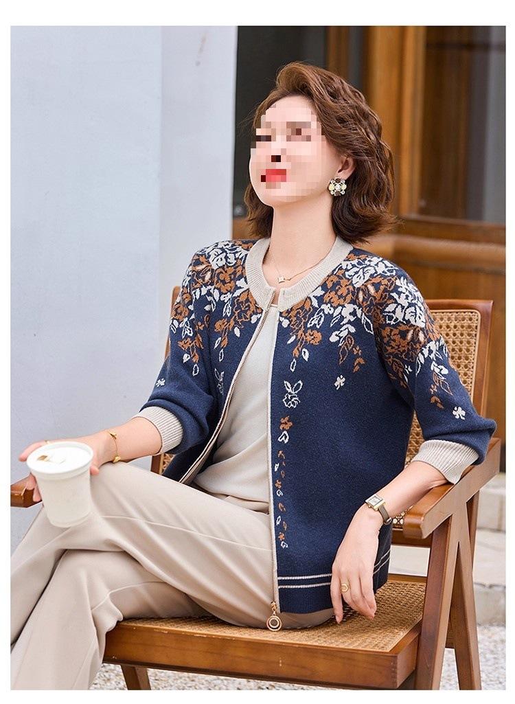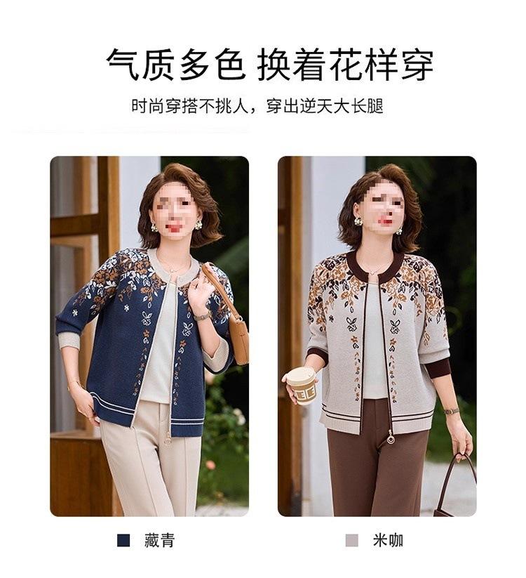Abrigo Cárdigan de Punto de Otoño para Mamá Estilo Nuevo 2025 de Moda para Mujeres de Mediana Edad y Mayores Top Delgado con Cremallera para Otoño Primavera