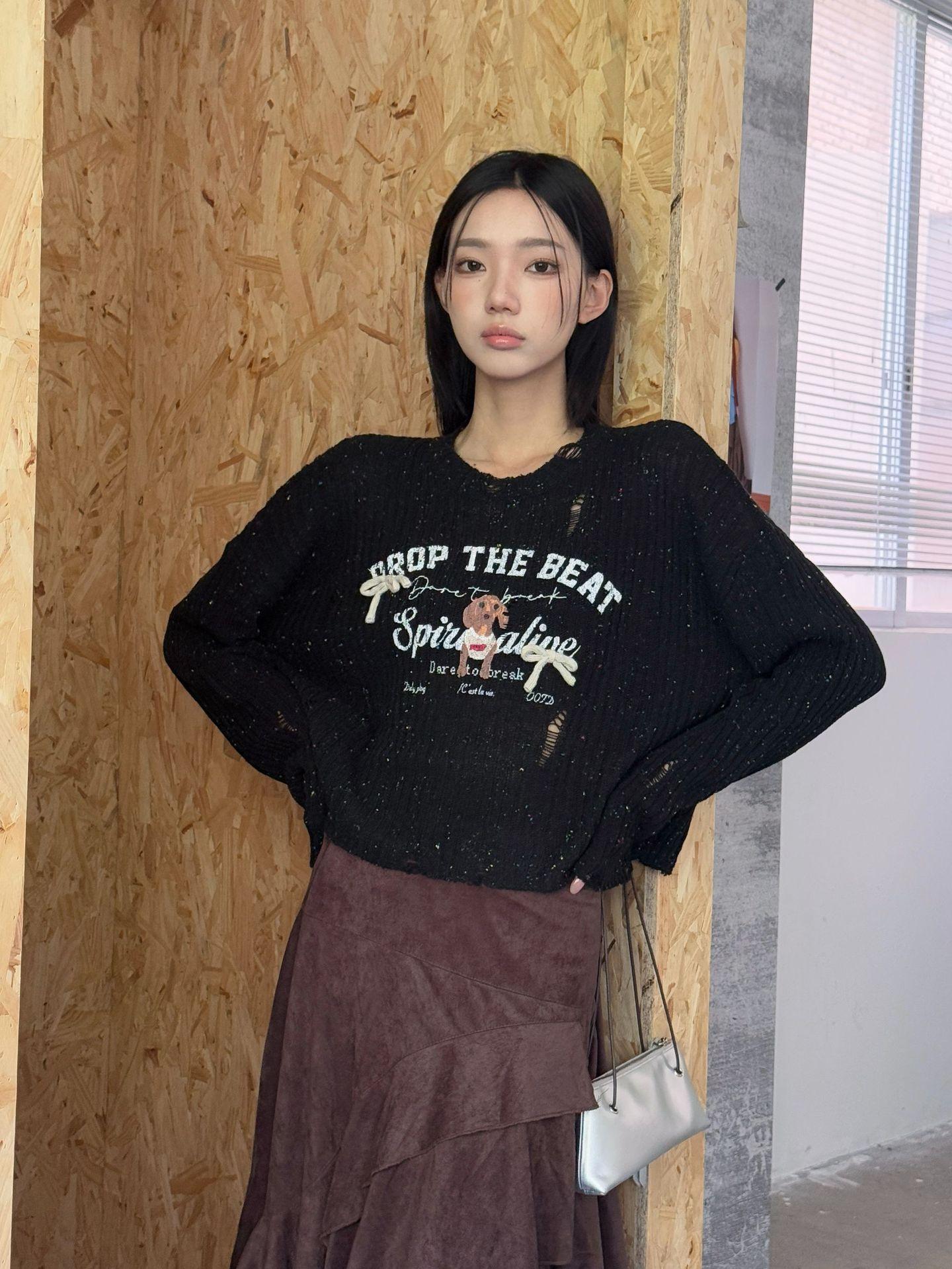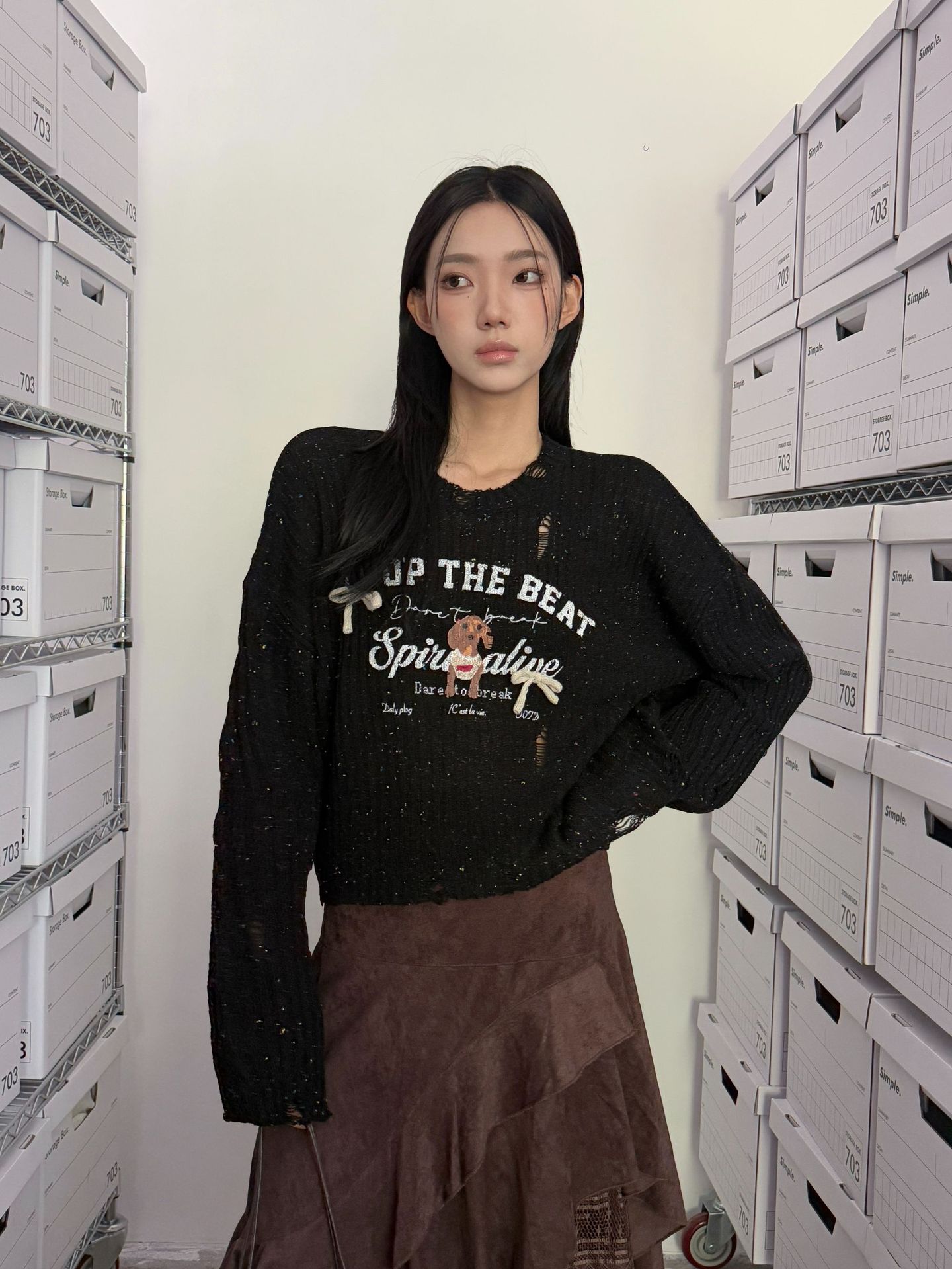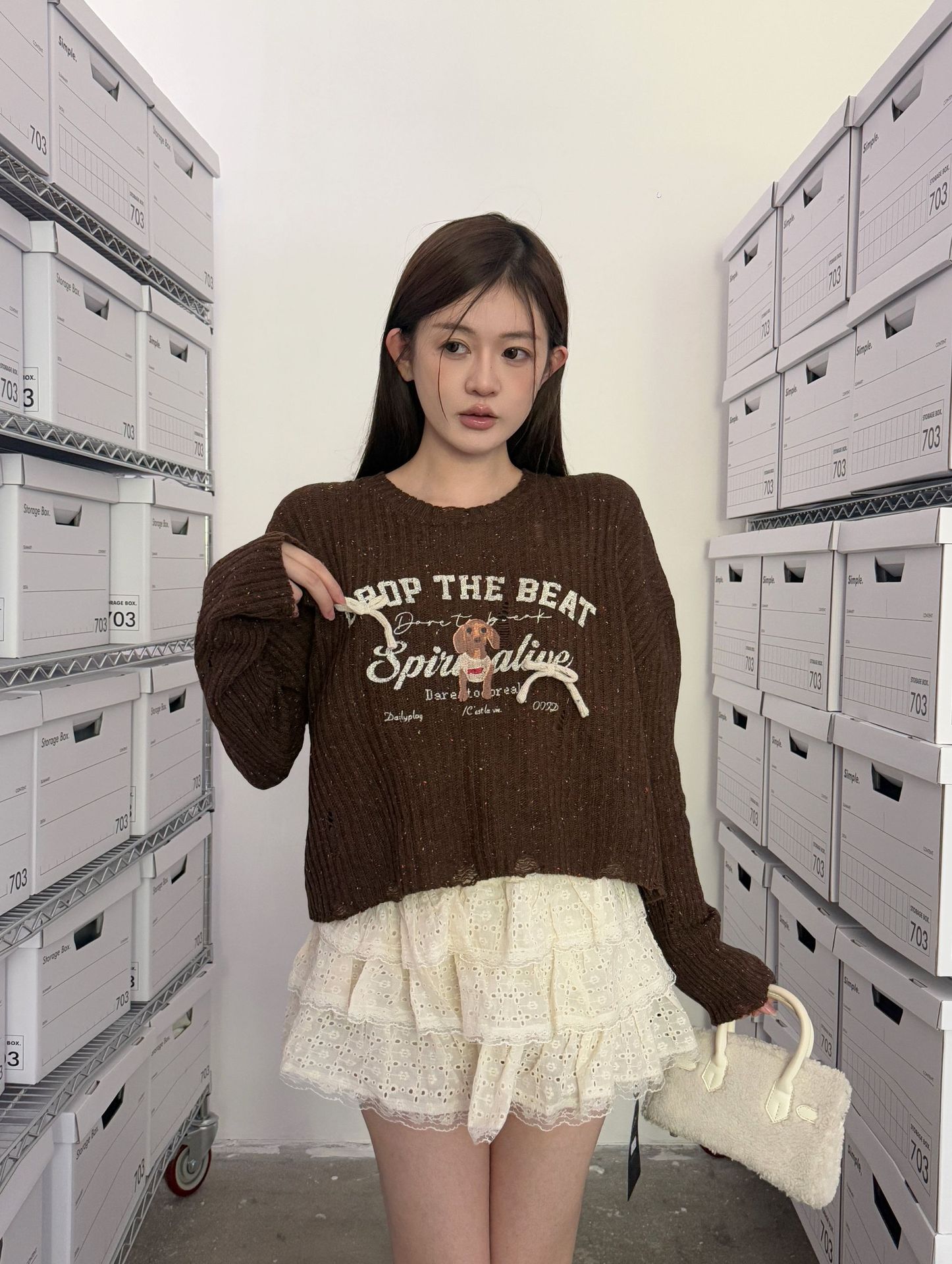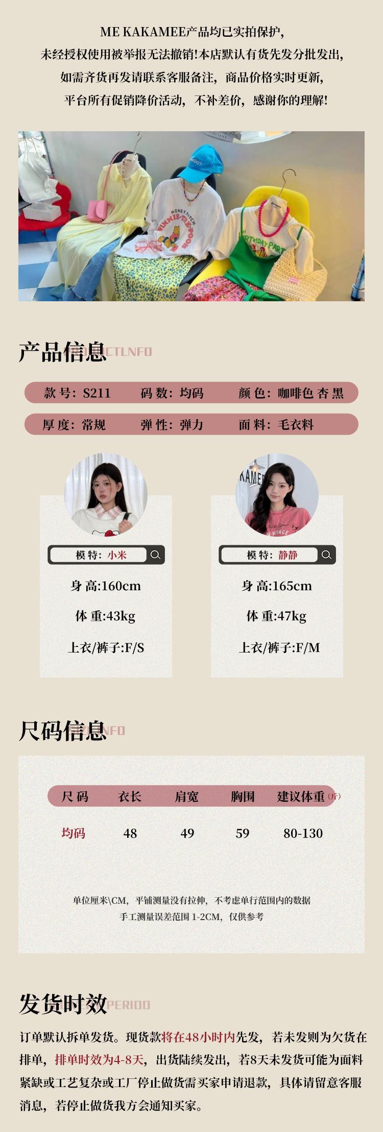 ME KAKAMEE trece líneas otoño retro americano tridimensional letra decorativa color cachorro punto suéter corto mujer S211