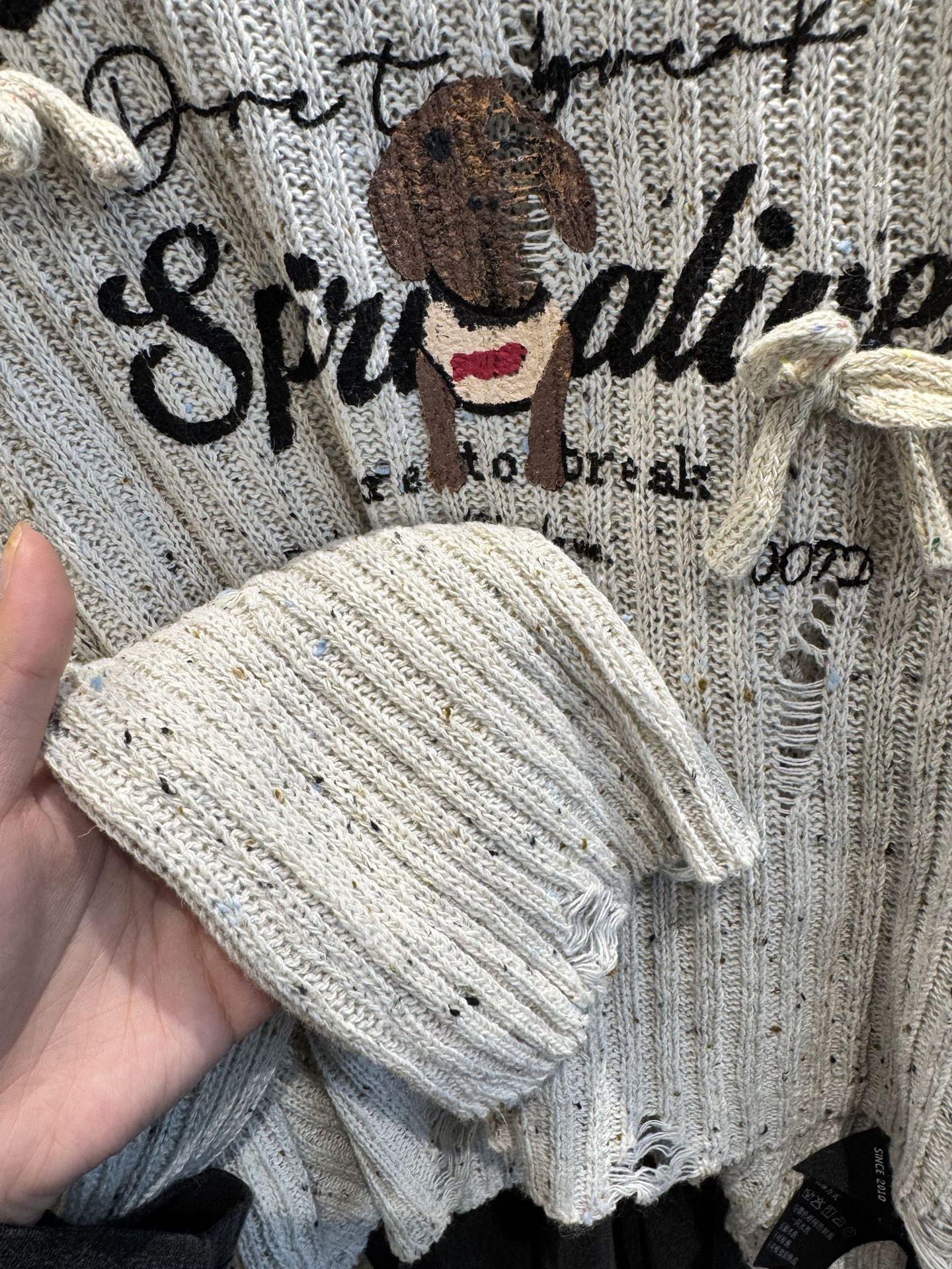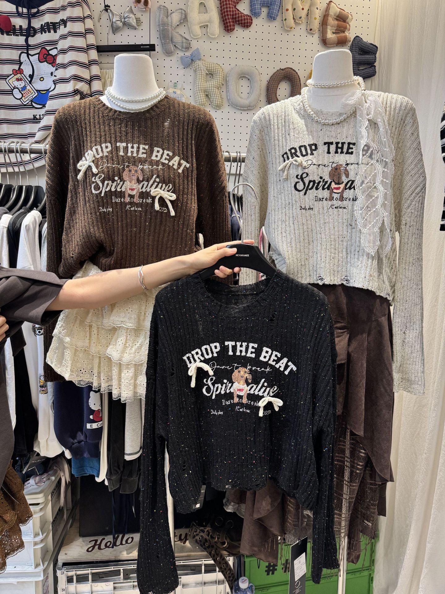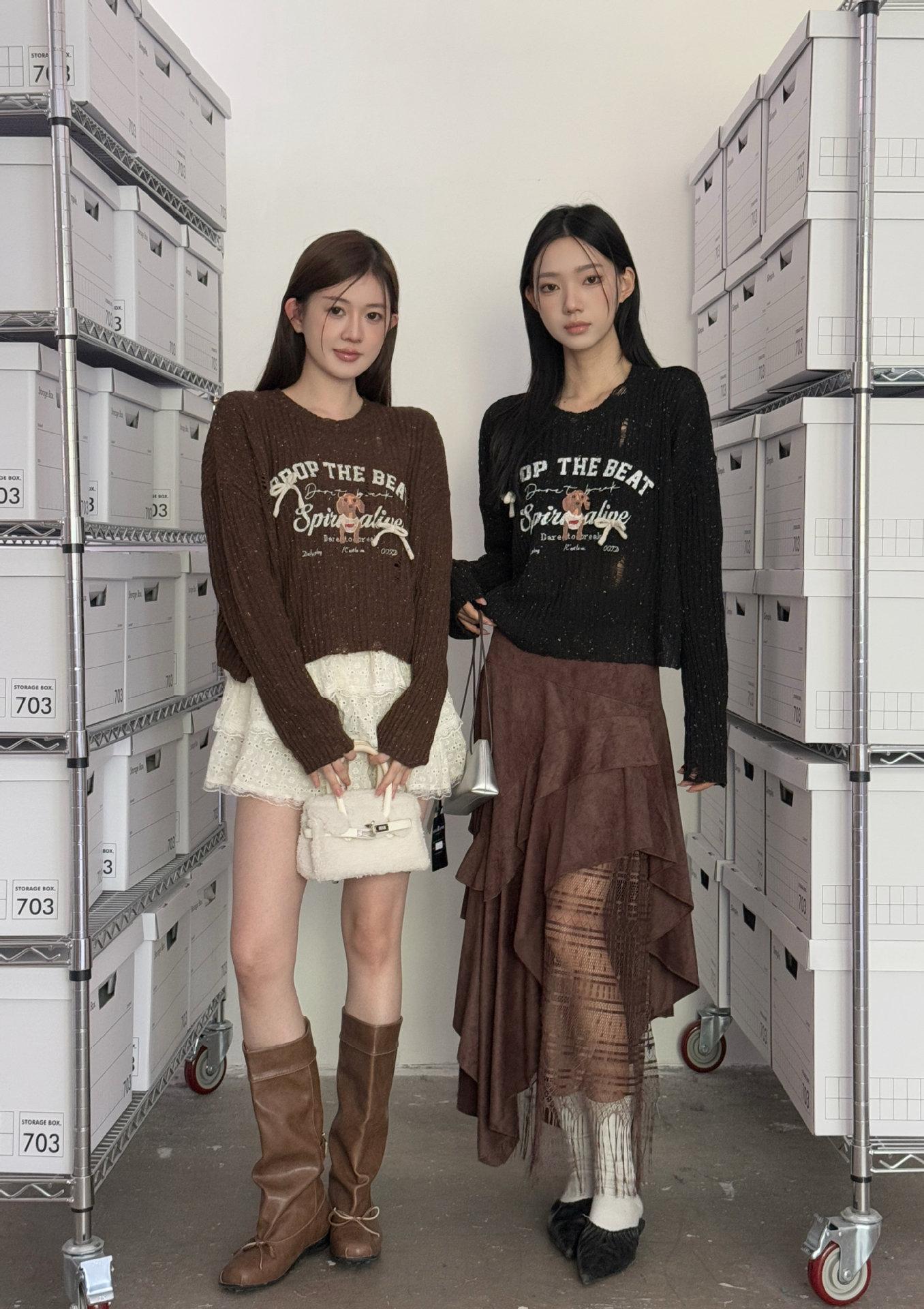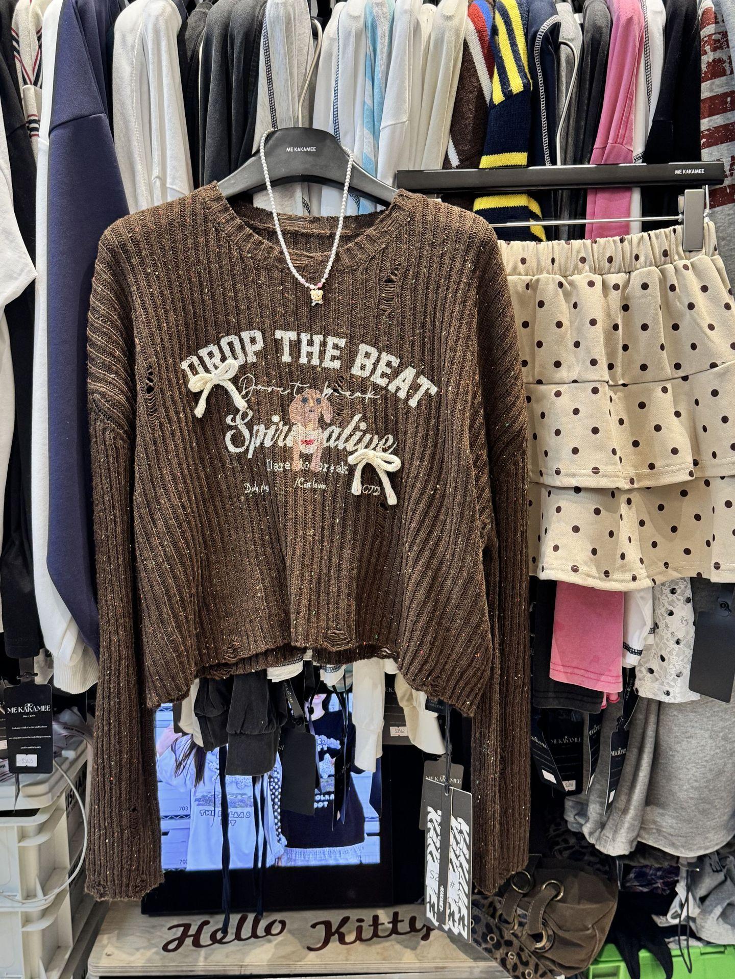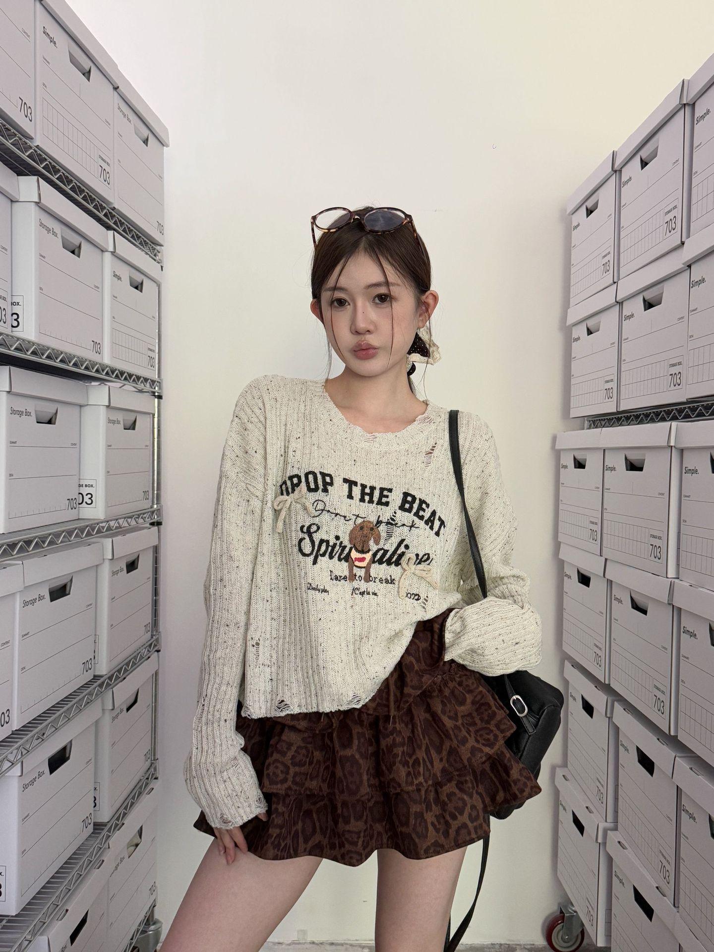 ME KAKAMEE trece líneas otoño retro americano tridimensional letra decorativa color cachorro punto suéter corto mujer S211