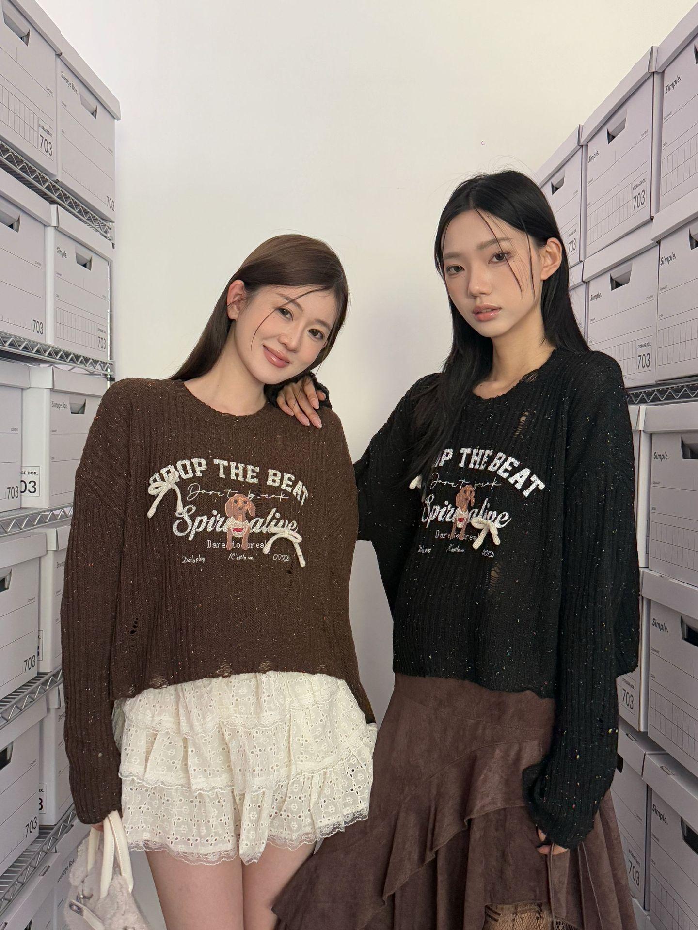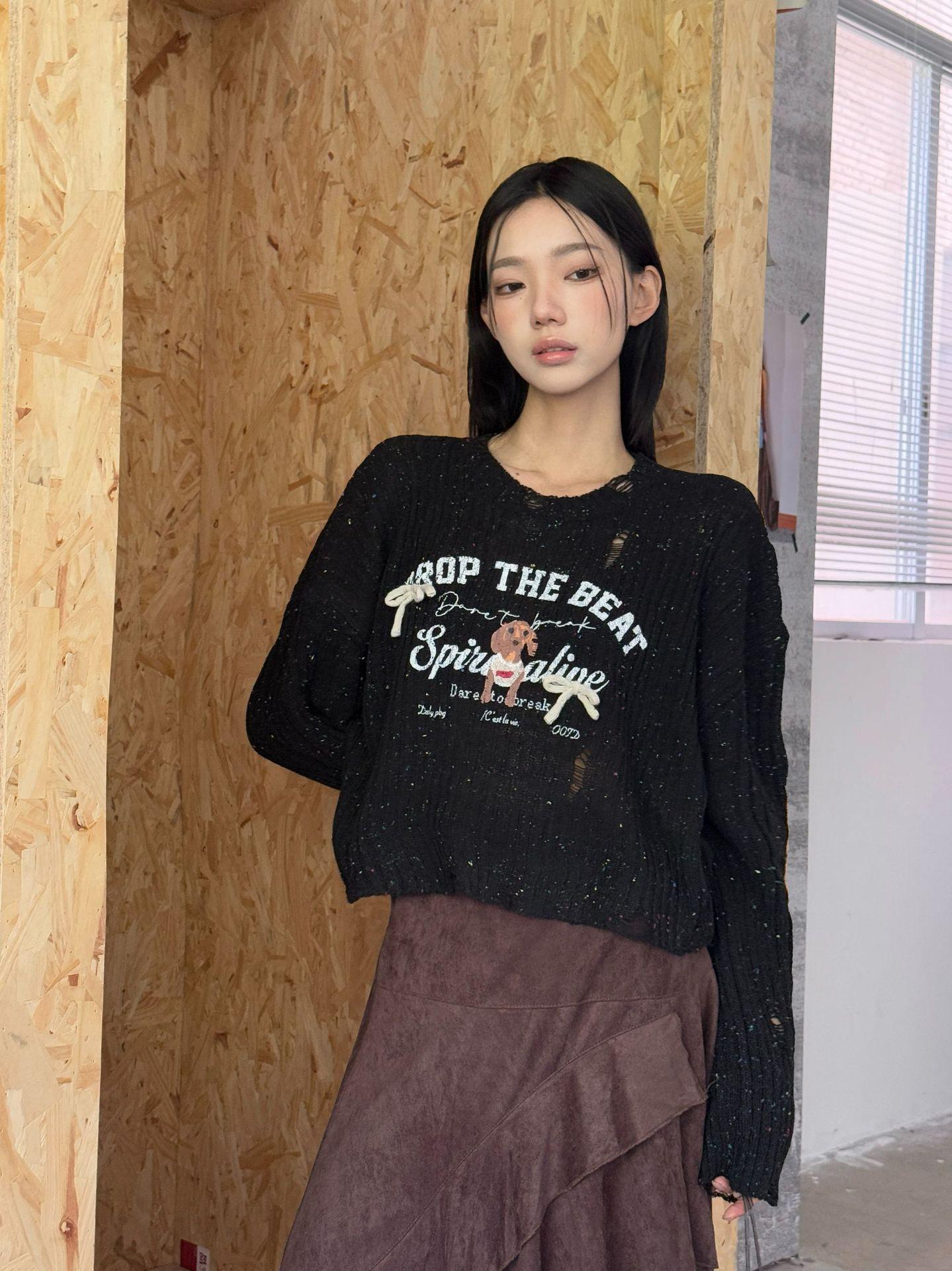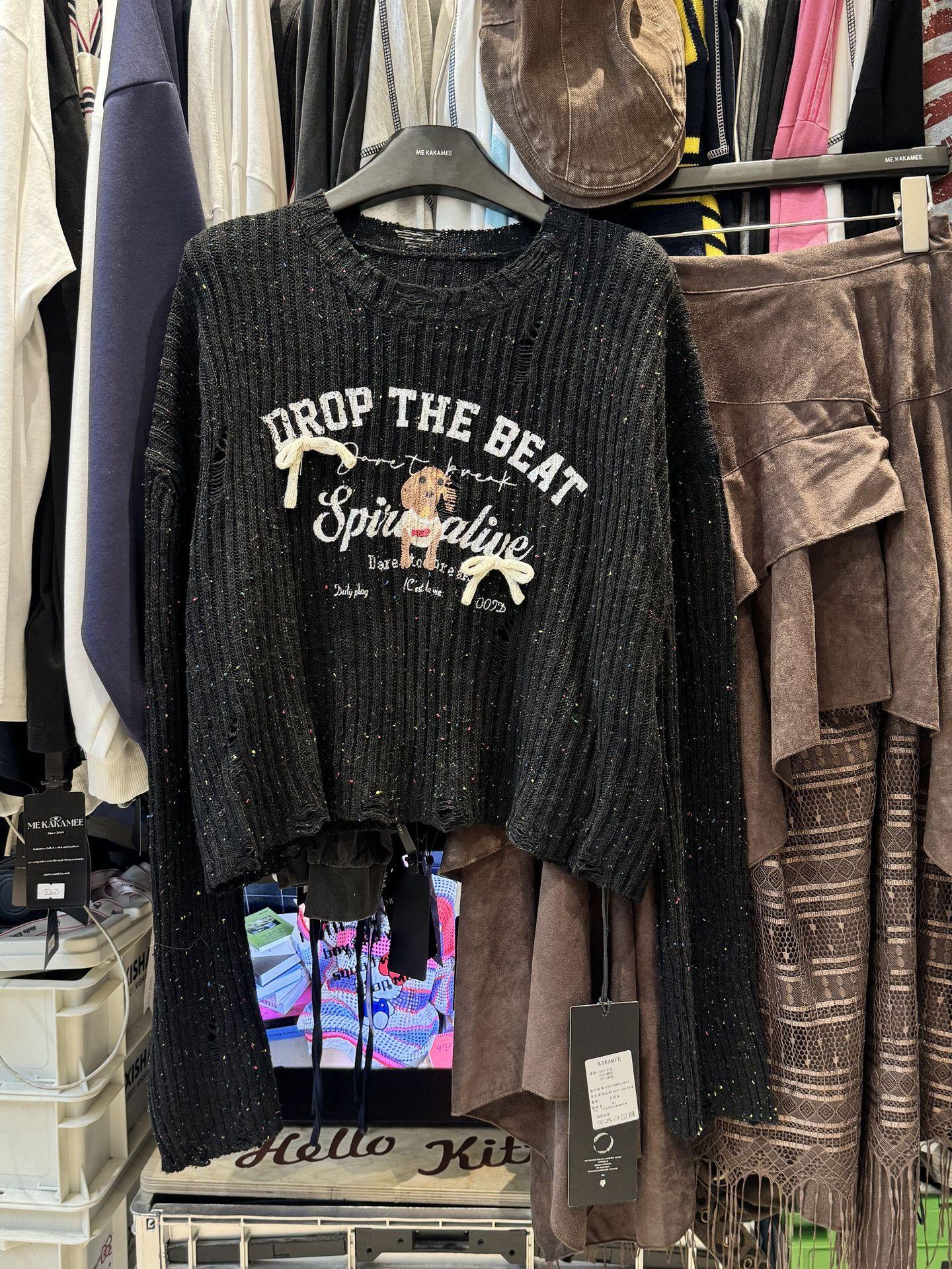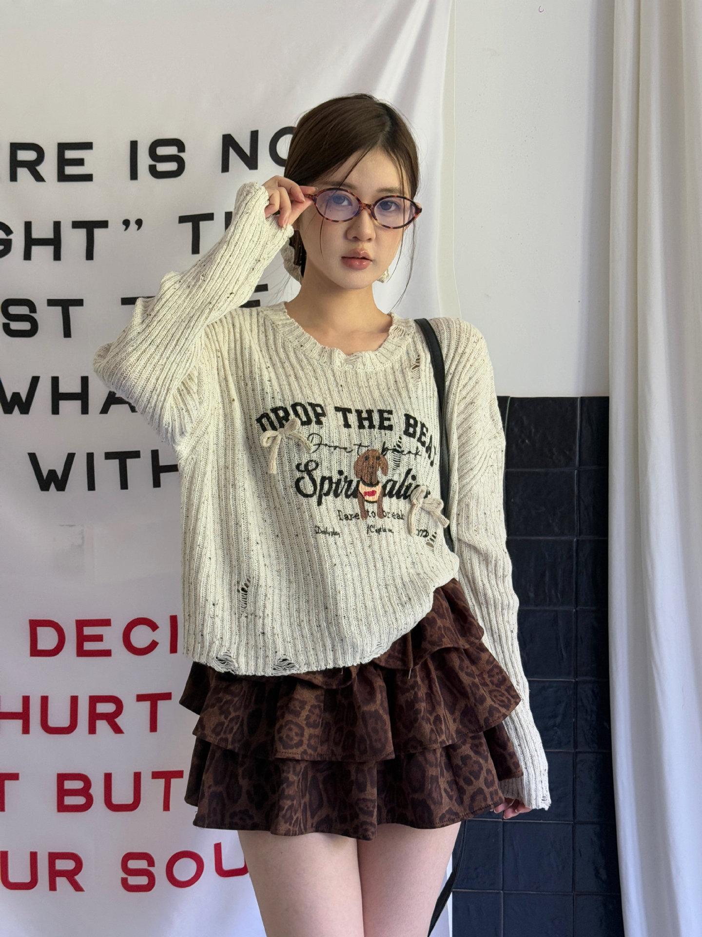 ME KAKAMEE trece líneas otoño retro americano tridimensional letra decorativa color cachorro punto suéter corto mujer S211