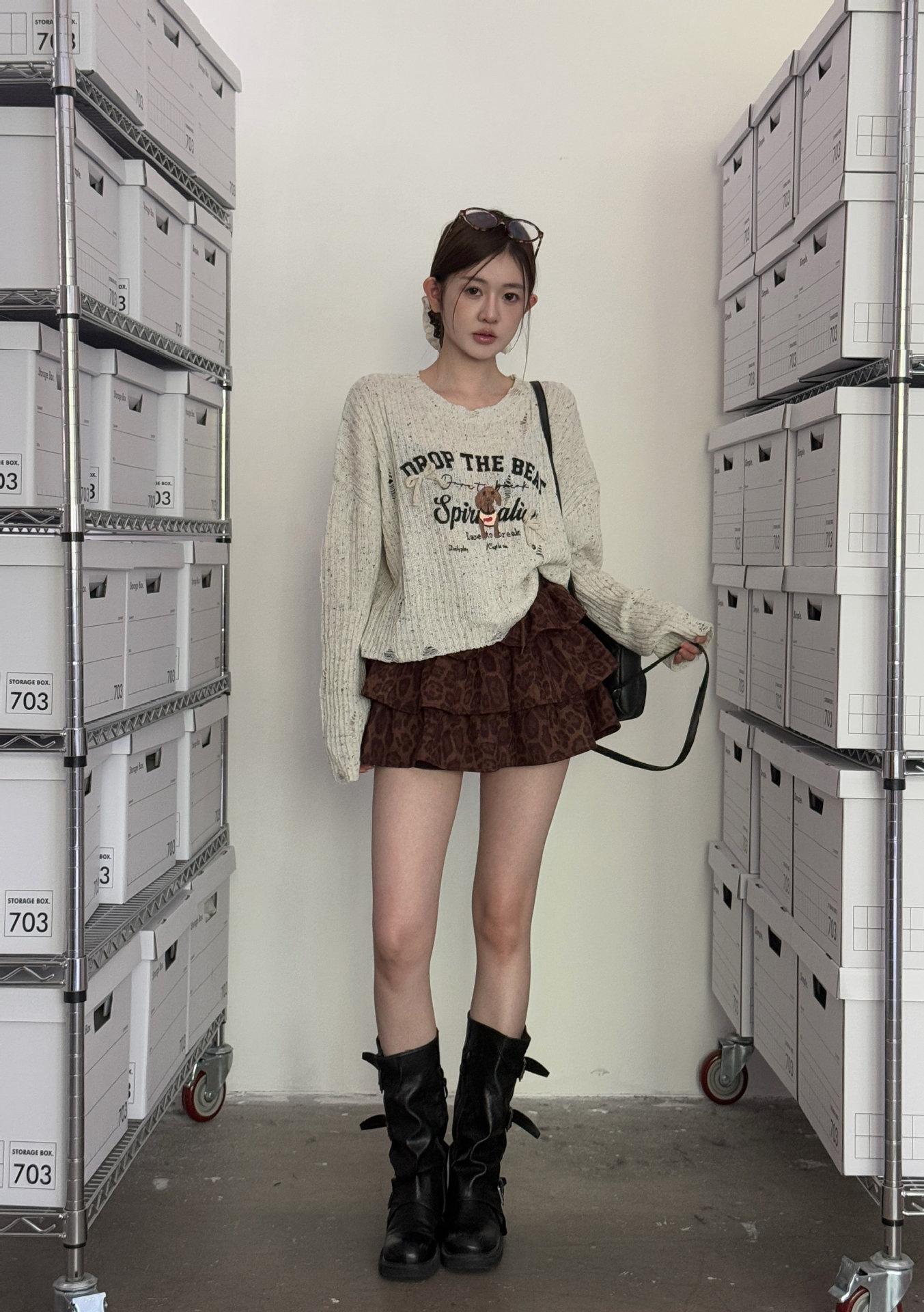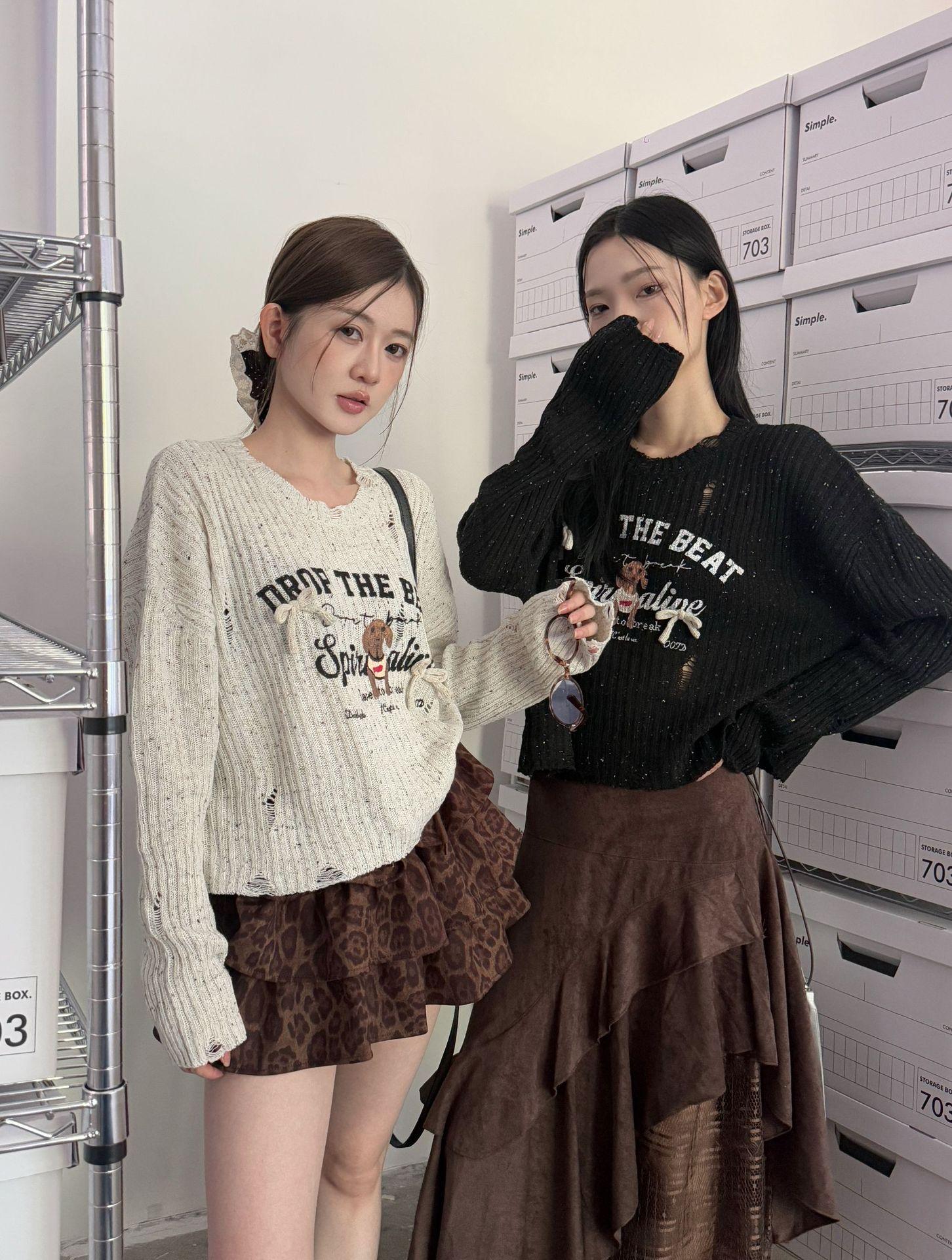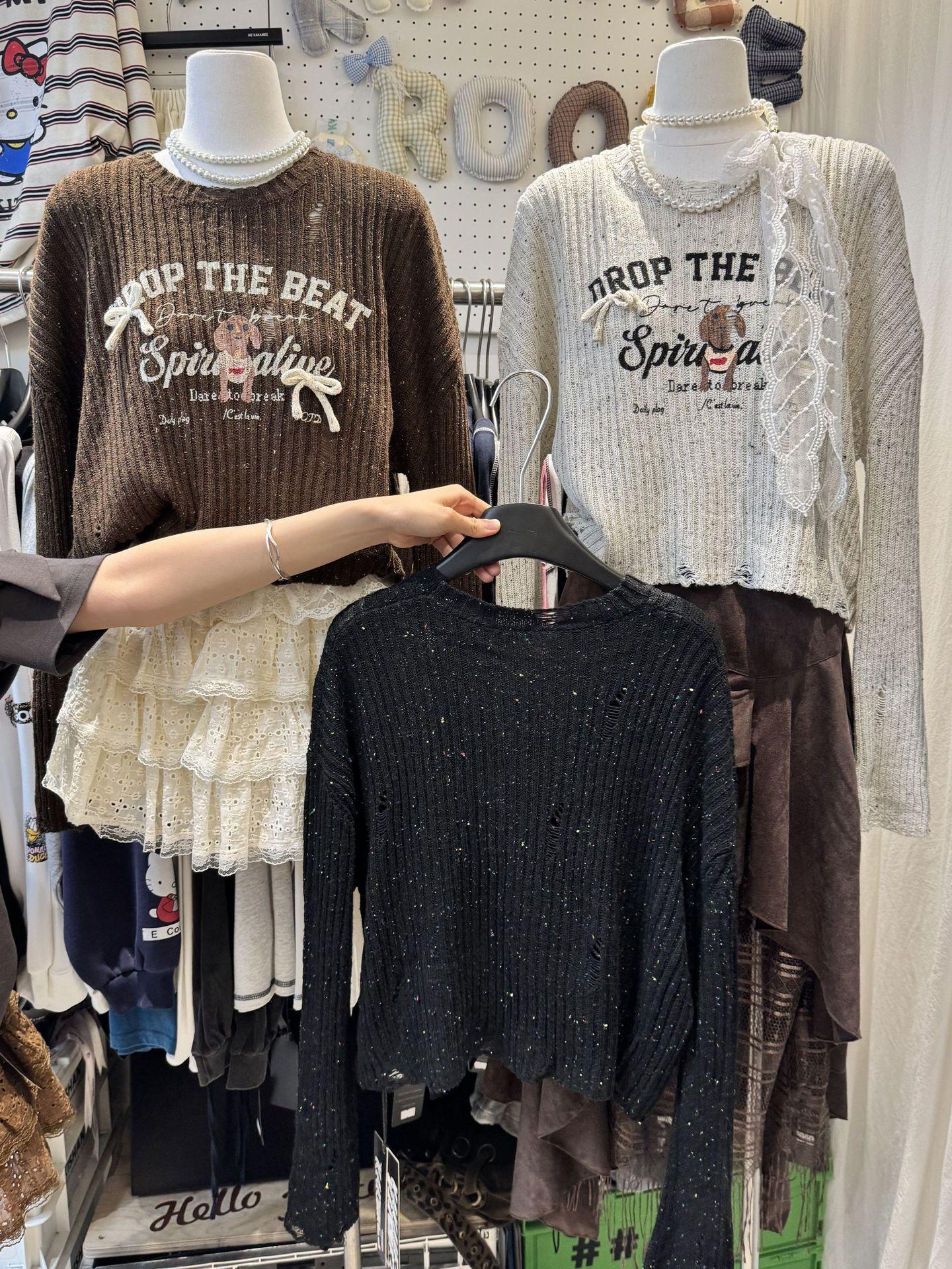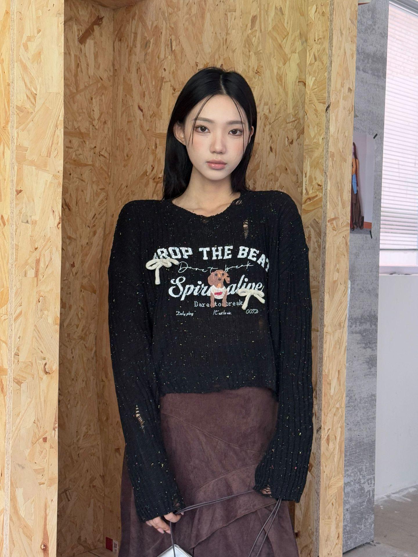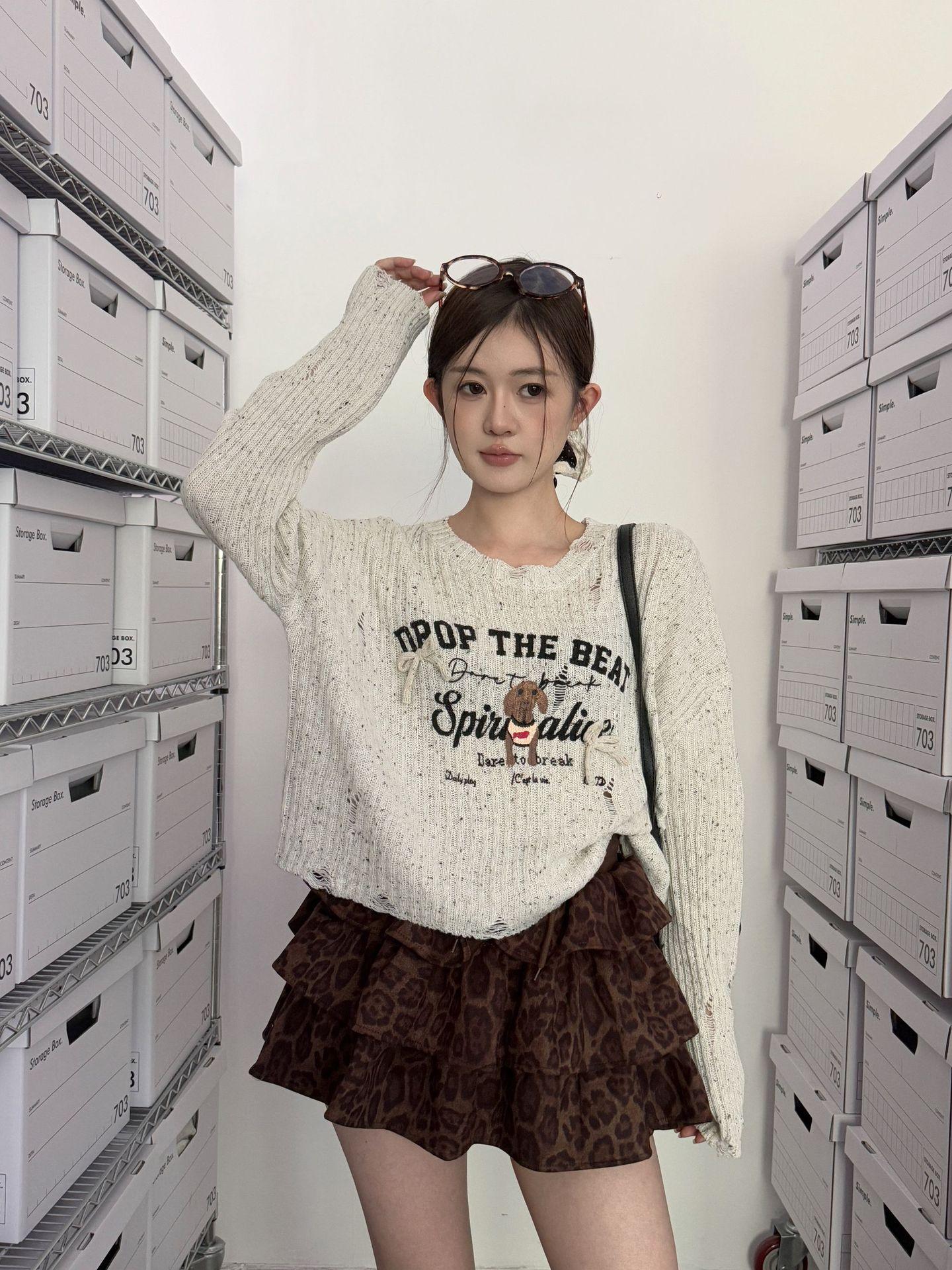 ME KAKAMEE trece líneas otoño retro americano tridimensional letra decorativa color cachorro punto suéter corto mujer S211