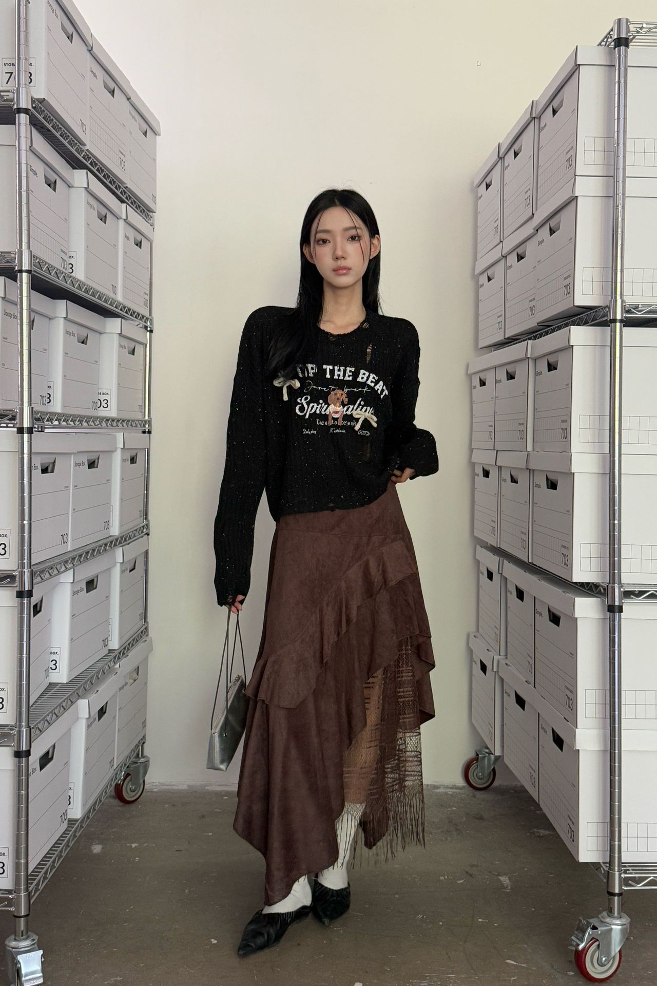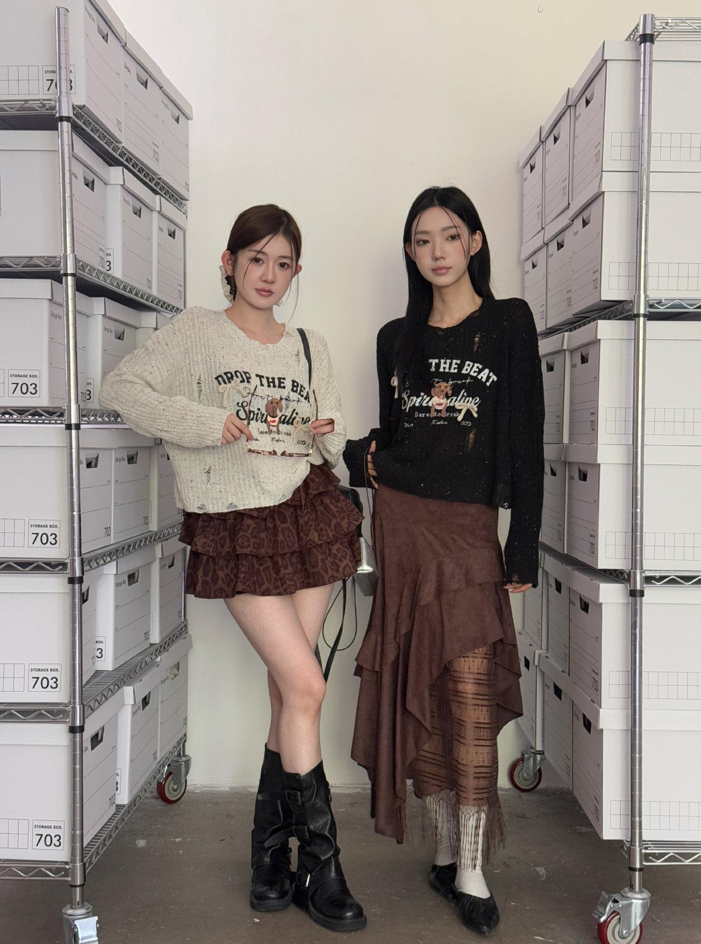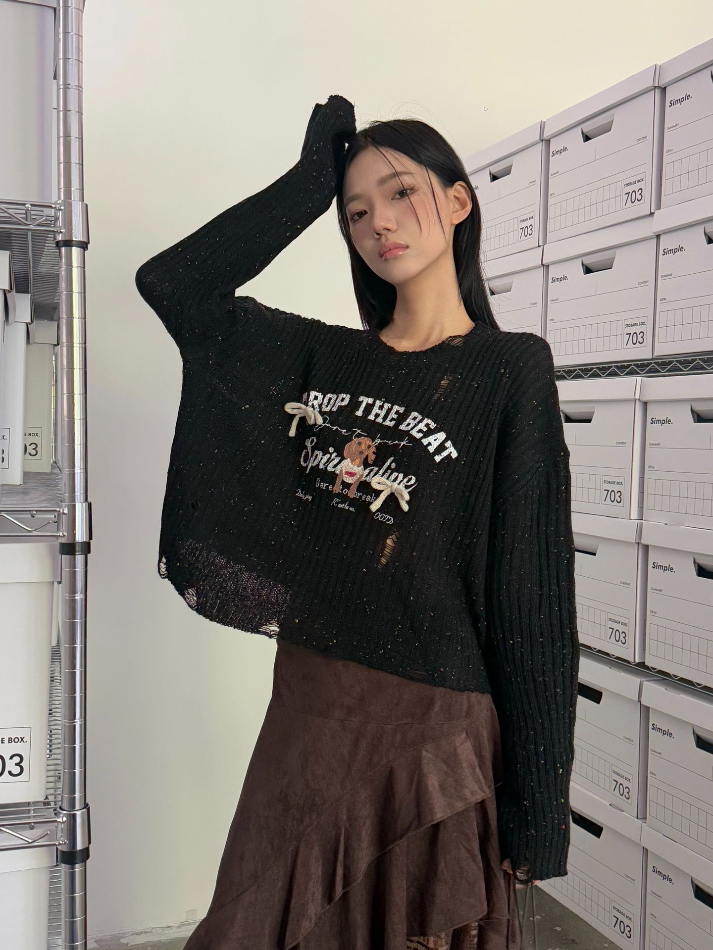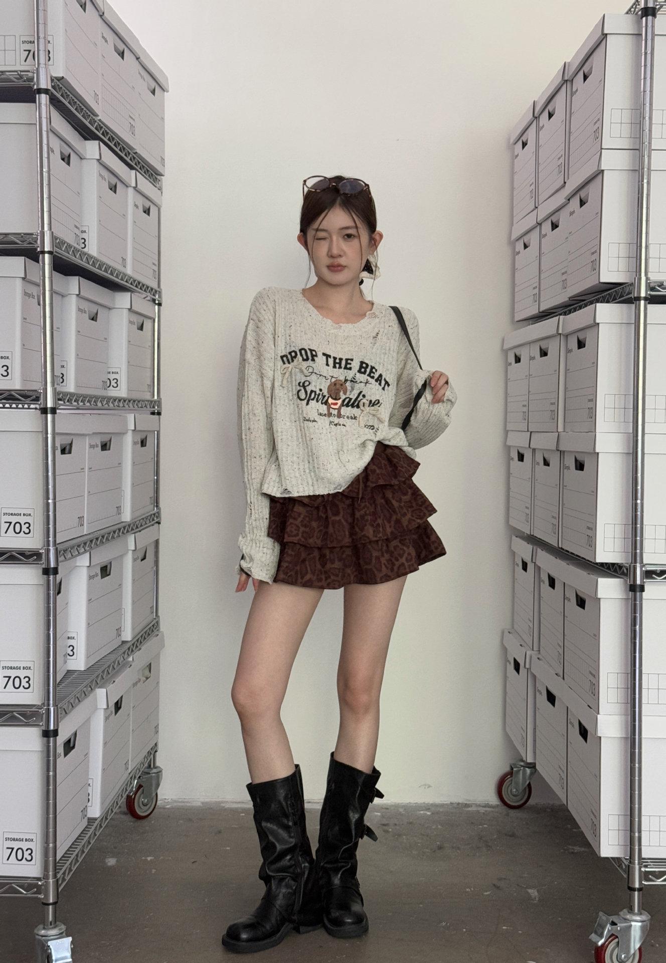 ME KAKAMEE trece líneas otoño retro americano tridimensional letra decorativa color cachorro punto suéter corto mujer S211