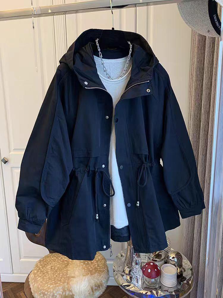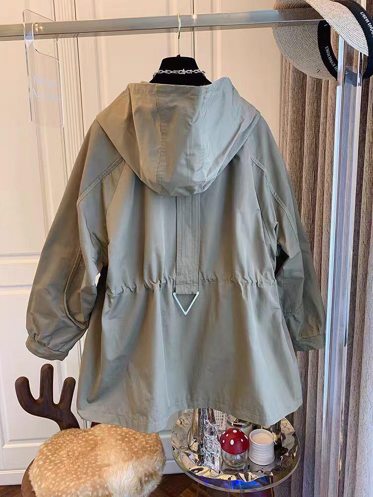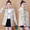 Cortavientos de Largo Medio Estilo Coreano de Primavera y Otoño para Mujer, Holgado, con Capucha, Cinturón con Cordón Ajustable, Adelgazante, Chaqueta Pequeña de Trabajo