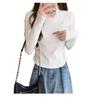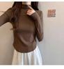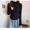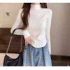 Camiseta de Manga Larga Ajustada de Hombro Recto con Cuello Mock para Mujer Otoño Invierno Cuello Medio Alto Top Irregular Espiga ins