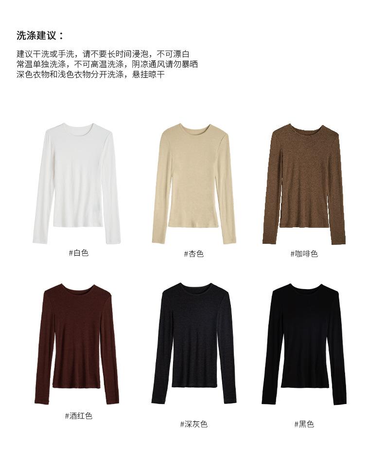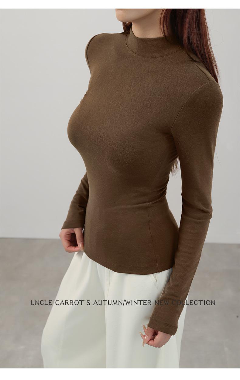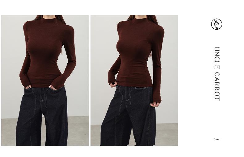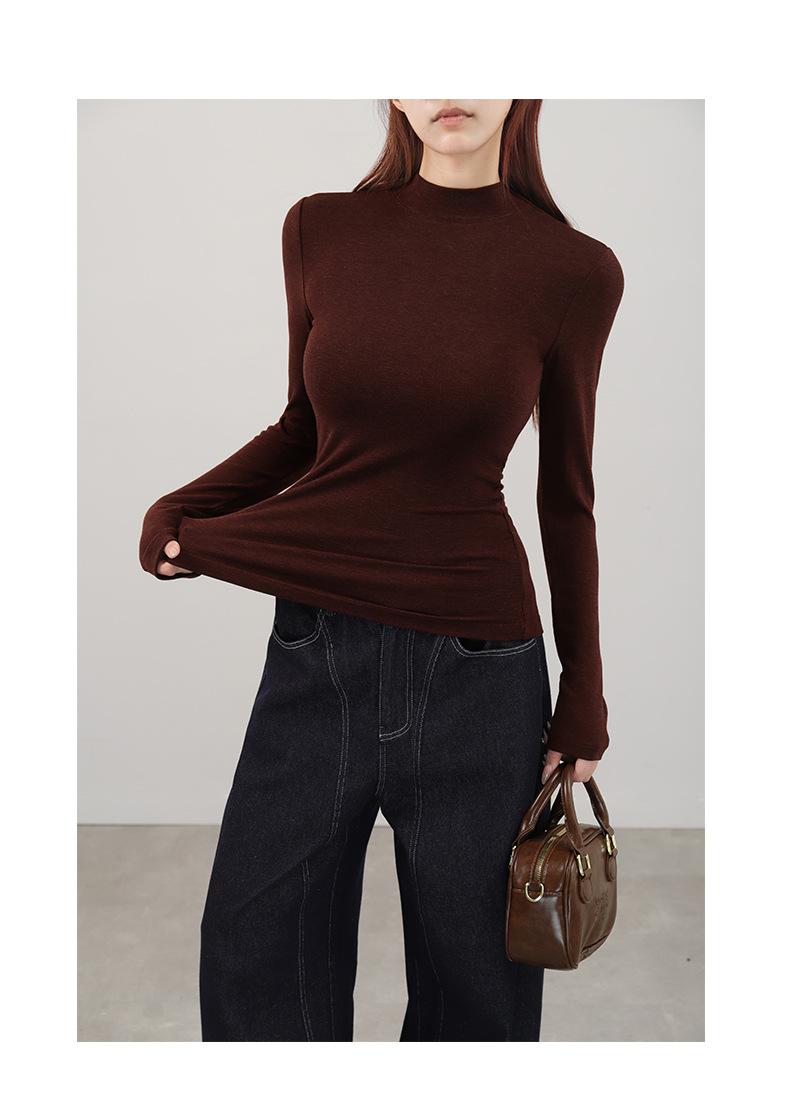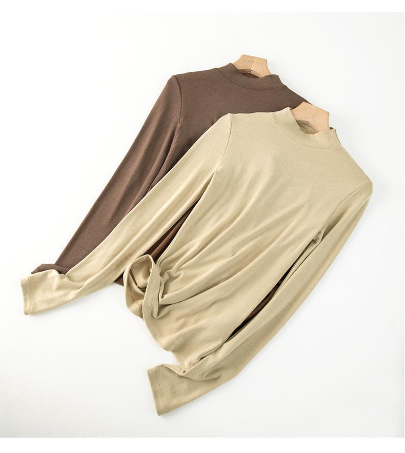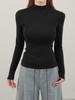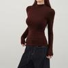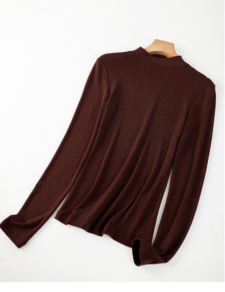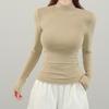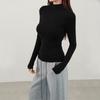 Playera de cachemira de cuello alto para mujer 2025 otoño e invierno nueva de manga larga cuello redondo hombro regular top corte ajustado capa interior camiseta base