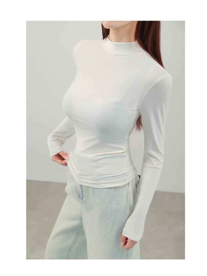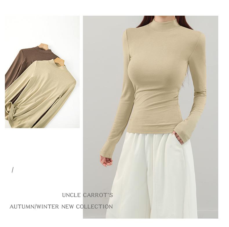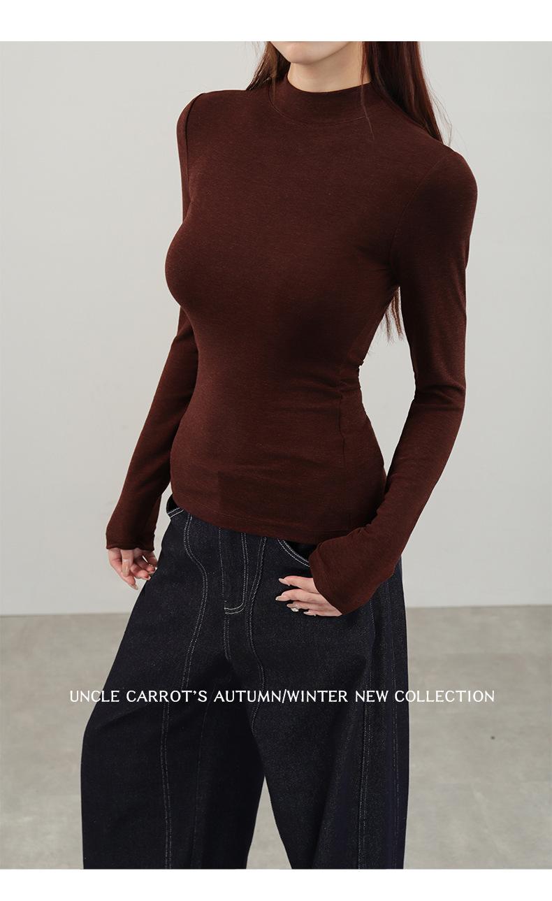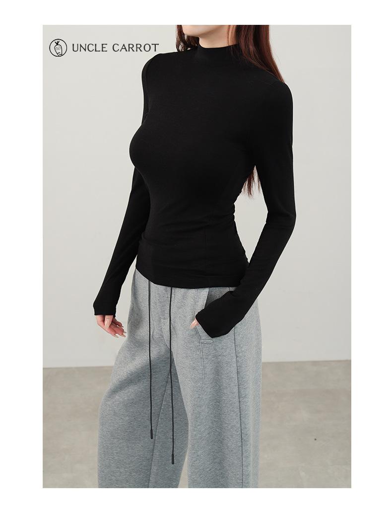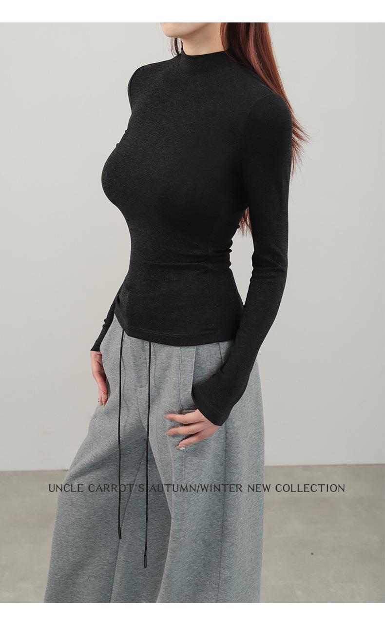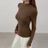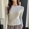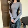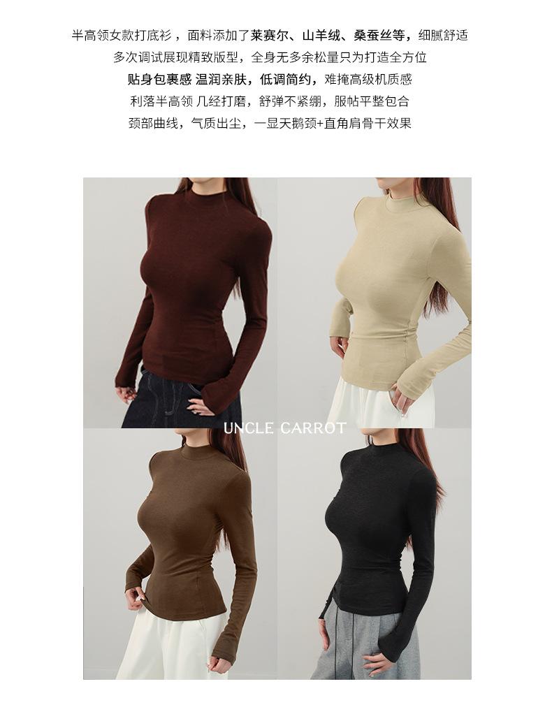 Playera de cachemira de cuello alto para mujer 2025 otoño e invierno nueva de manga larga cuello redondo hombro regular top corte ajustado capa interior camiseta base