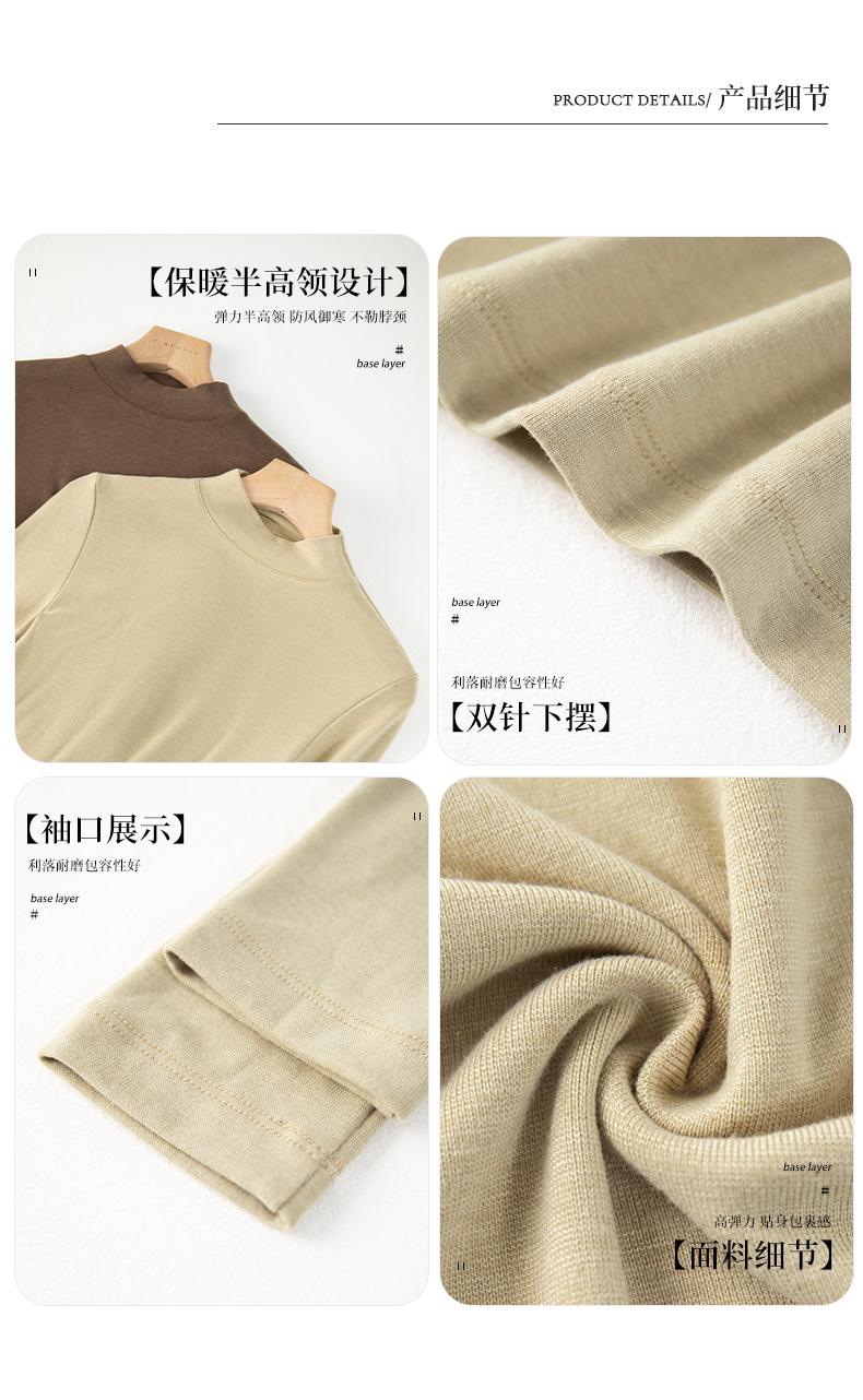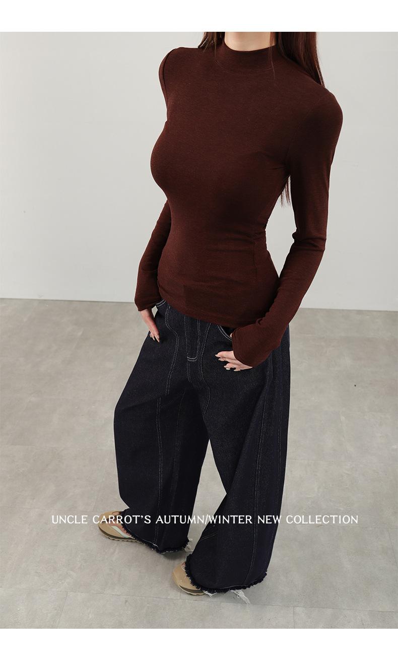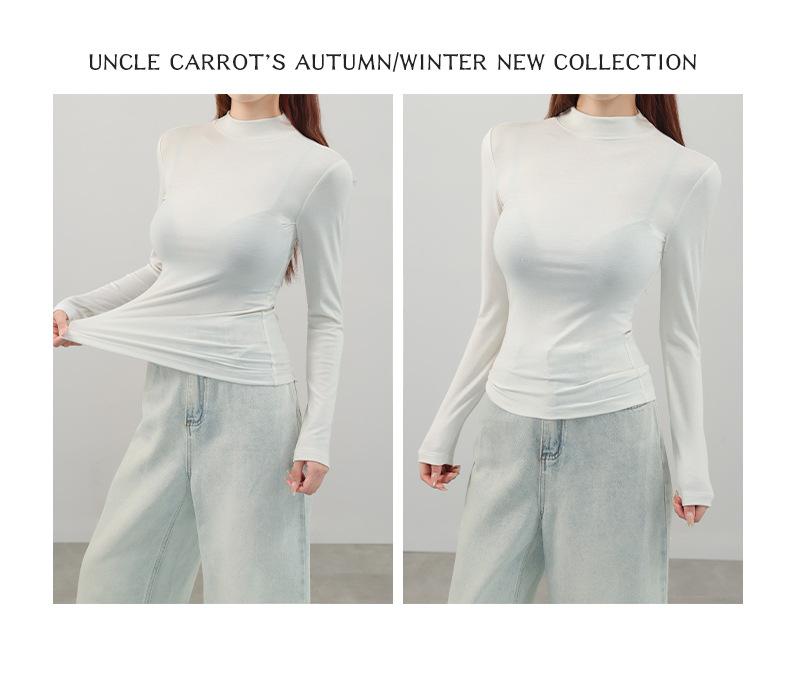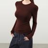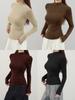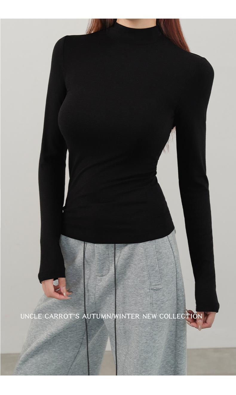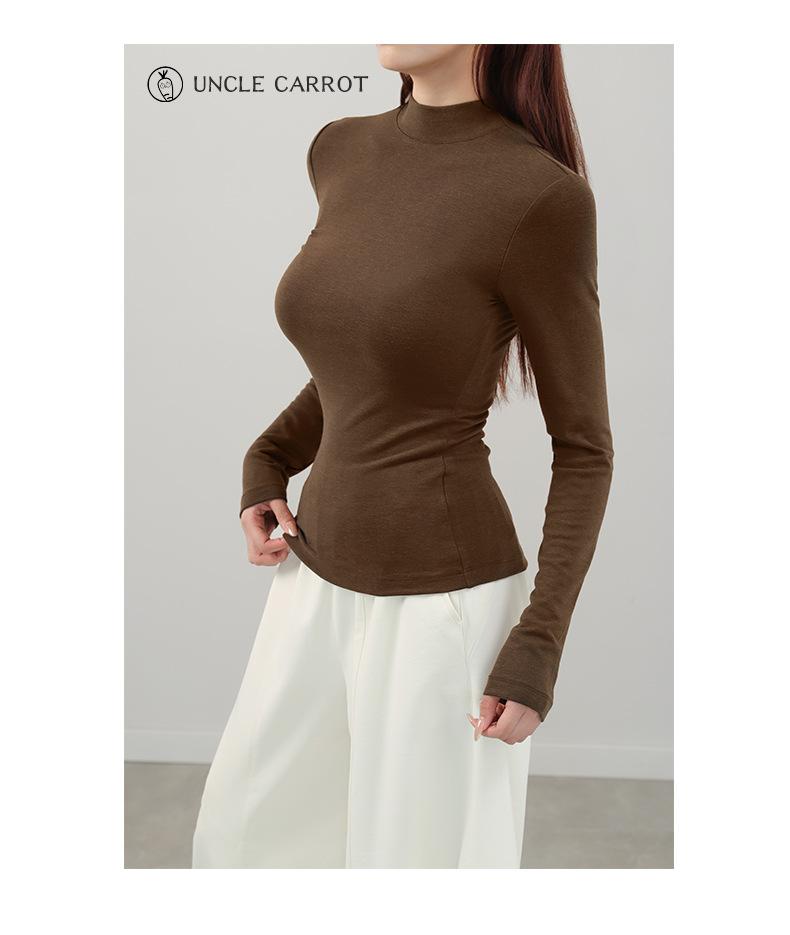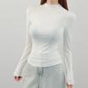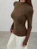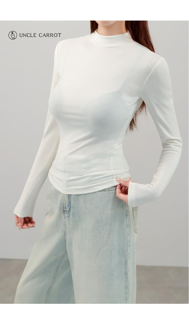 Playera de cachemira de cuello alto para mujer 2025 otoño e invierno nueva de manga larga cuello redondo hombro regular top corte ajustado capa interior camiseta base