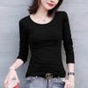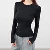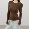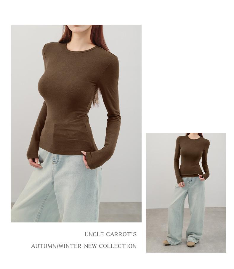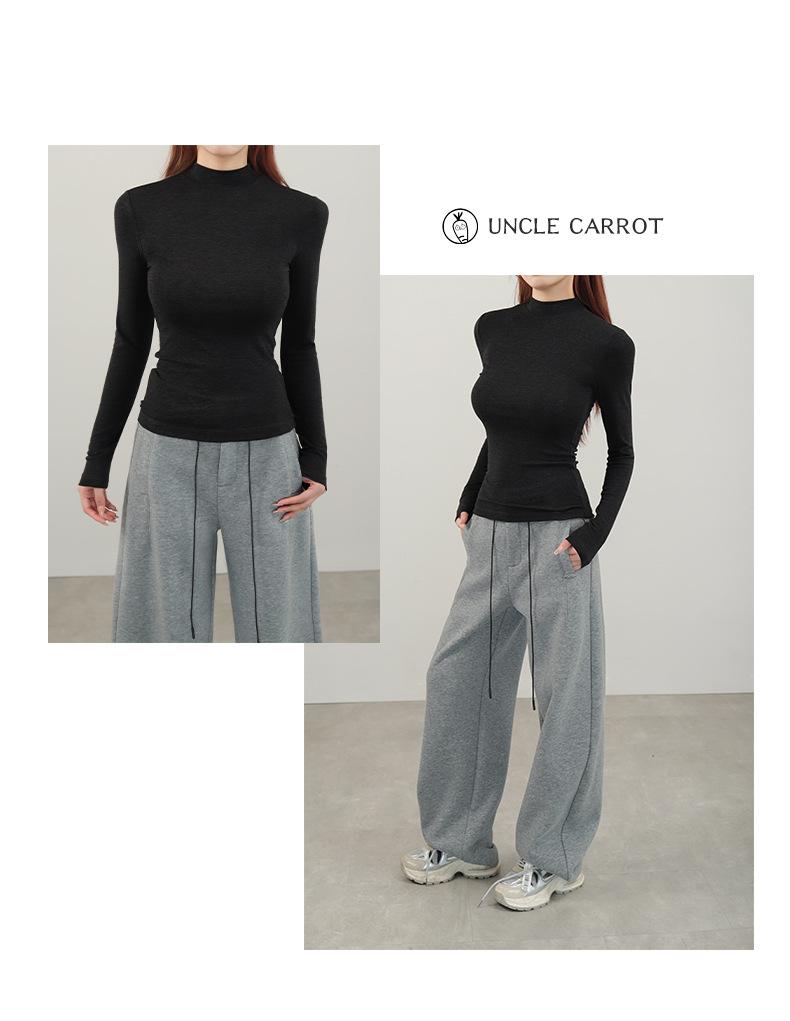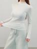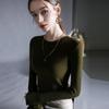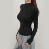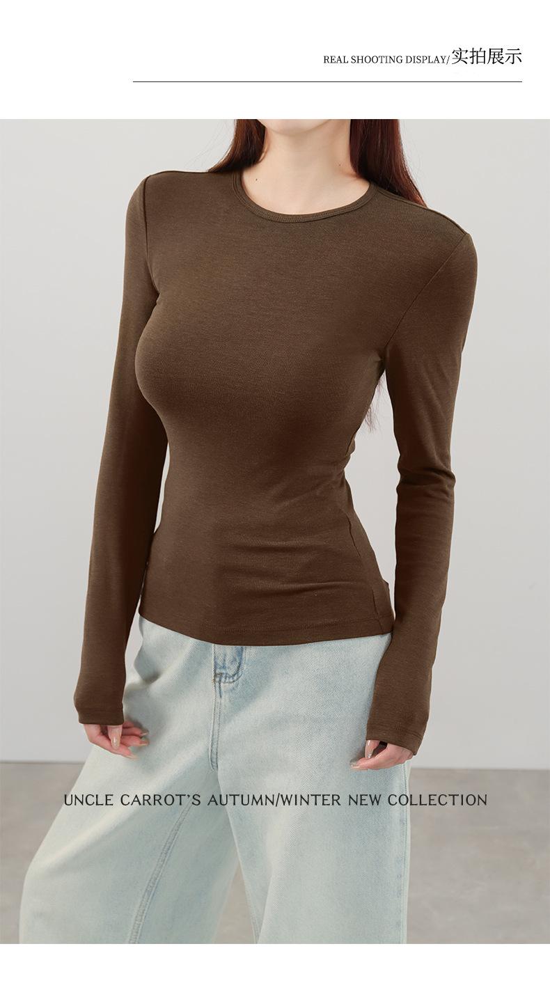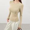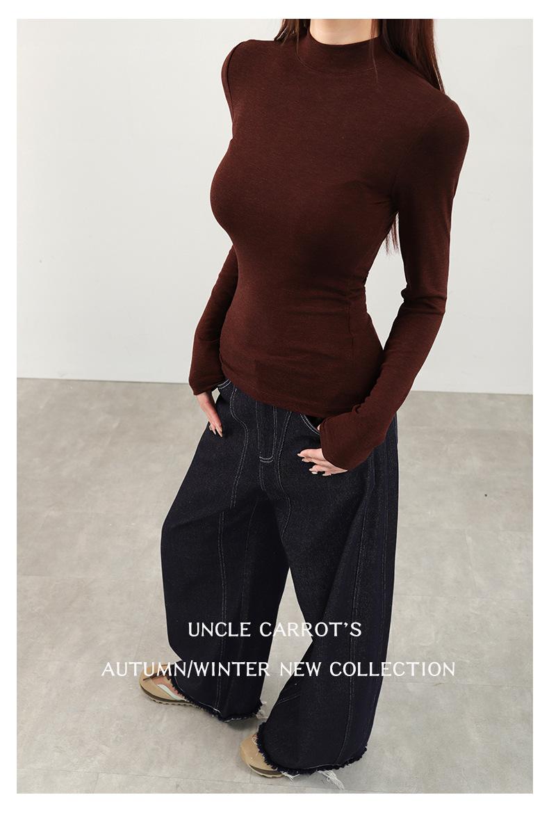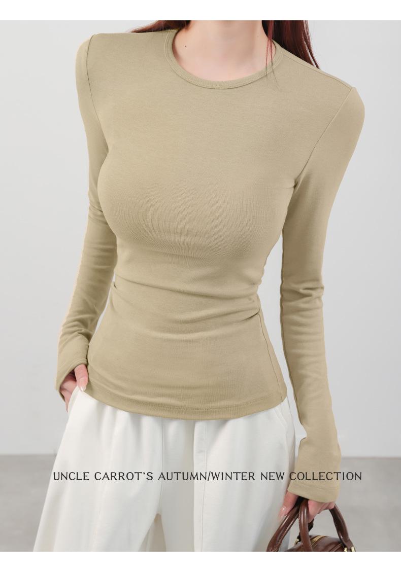 Playera de cachemira de cuello alto para mujer 2025 otoño e invierno nueva de manga larga cuello redondo hombro regular top corte ajustado capa interior camiseta base
