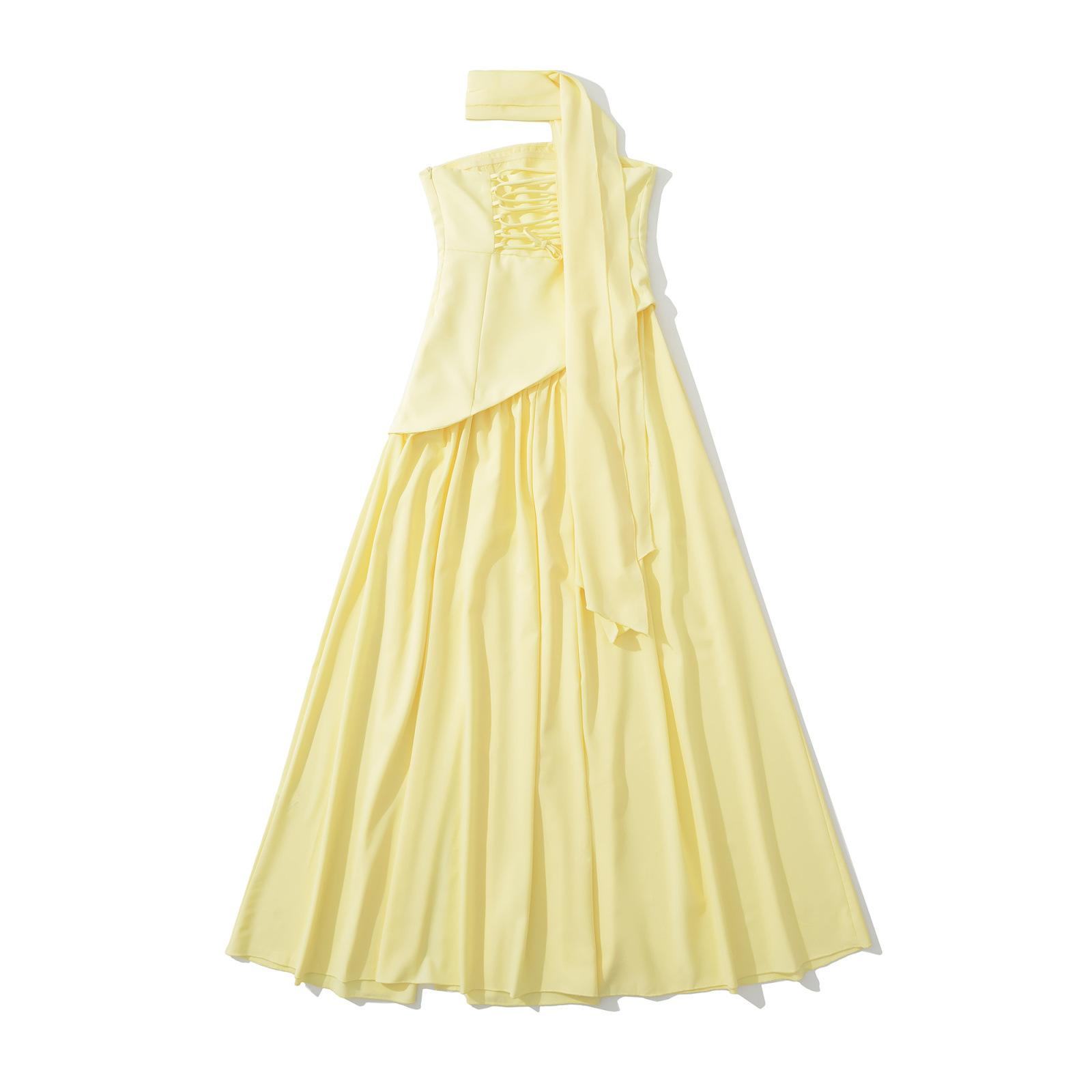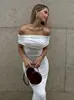 Ropa de Mujer Transfronteriza Europea y Americana 2025 Verano Nuevo Elegante de Gama Alta Vestido Tubo Top de Cintura con Cuello Bardot Falda Larga