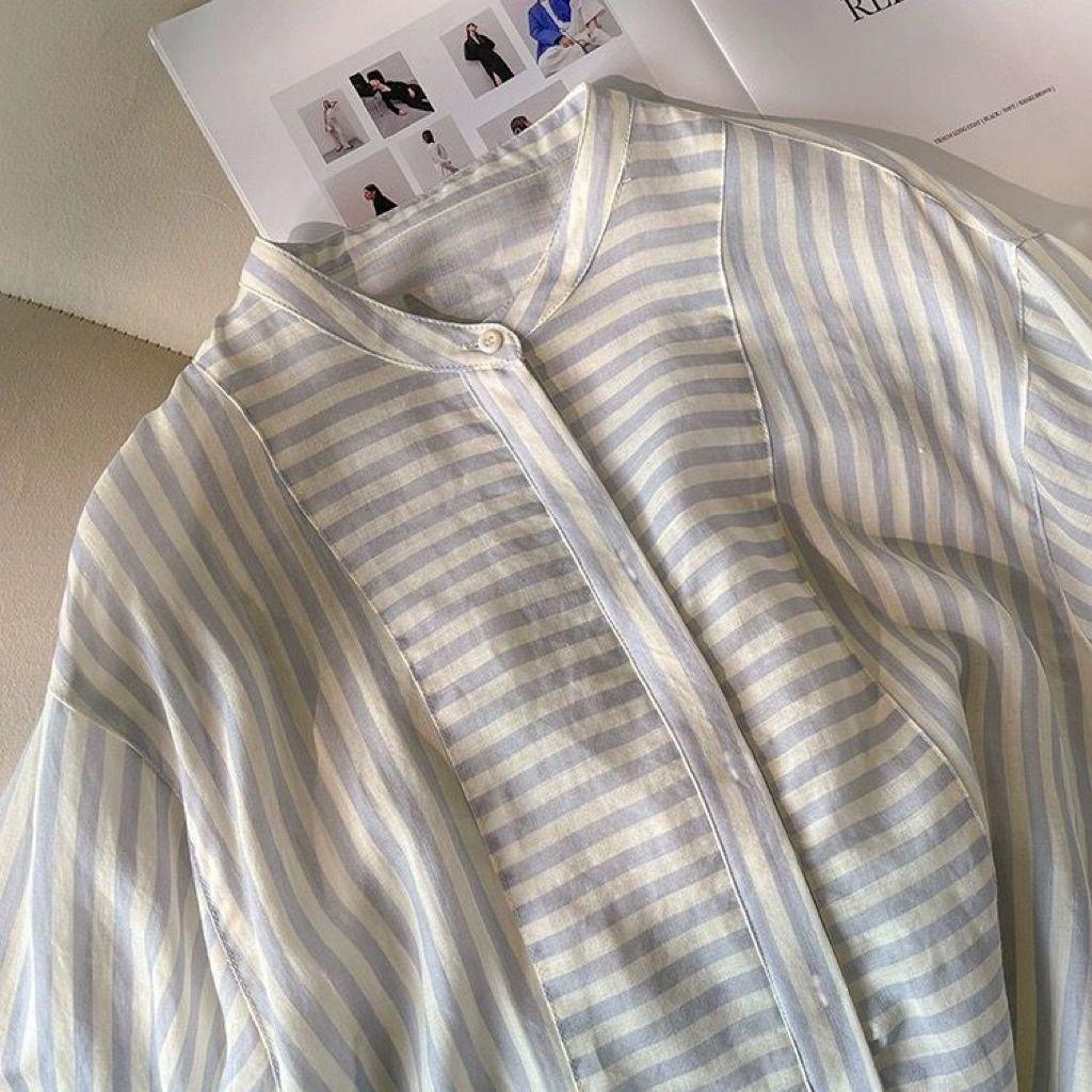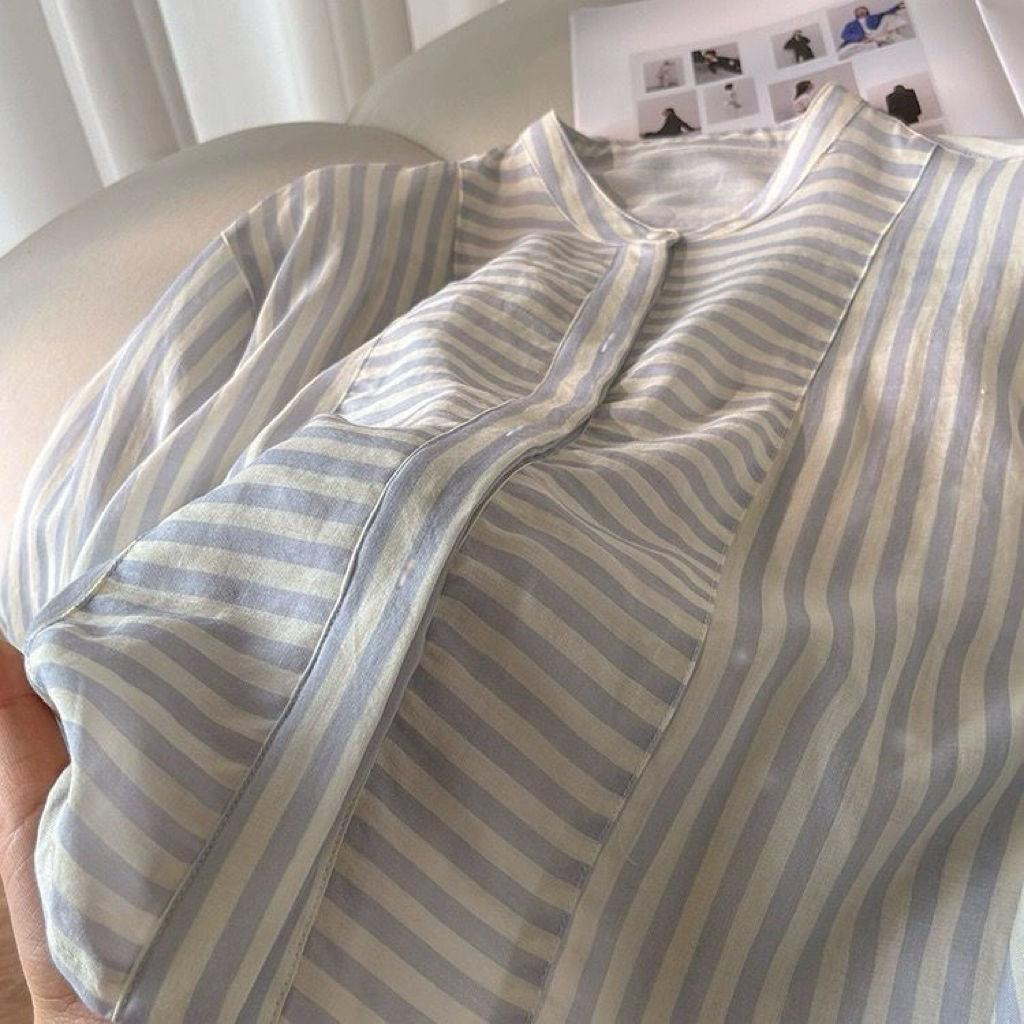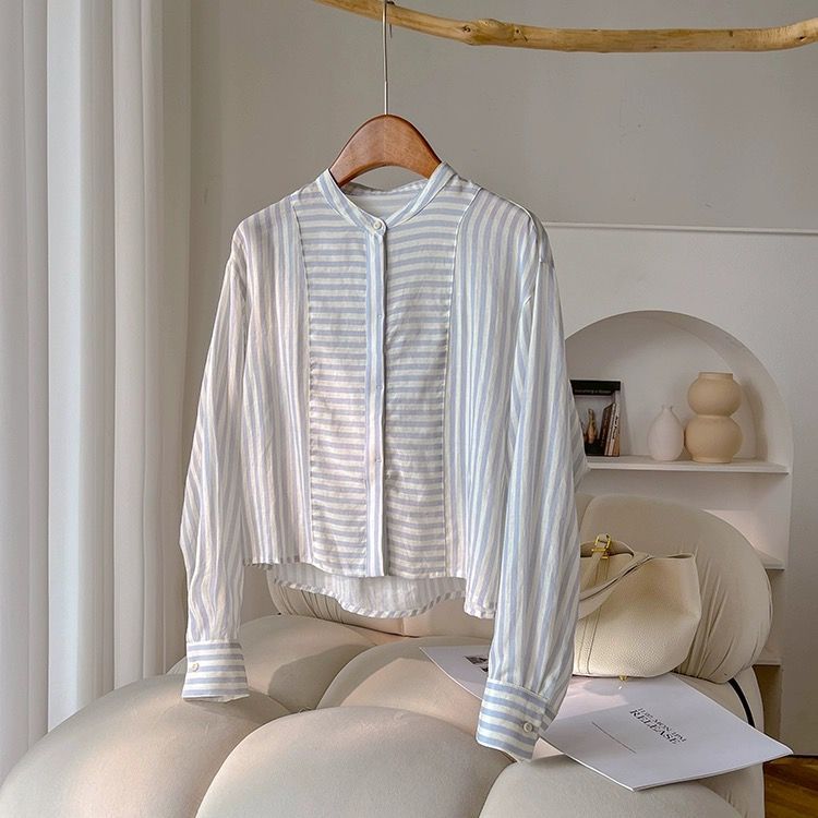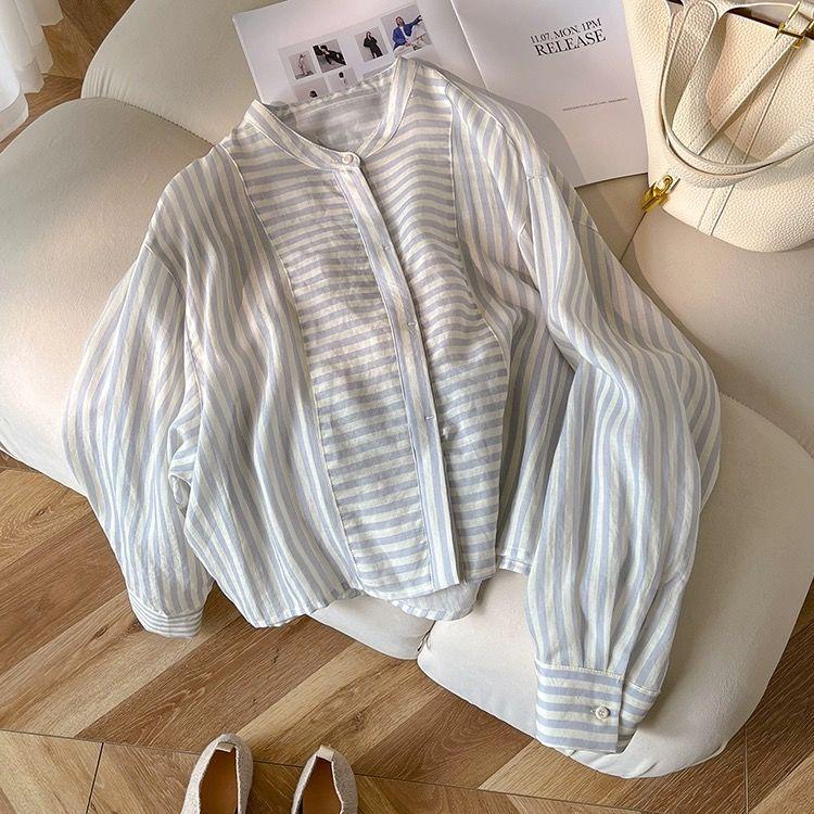 Camisa de Rayas de Manga Larga Estilo Coreano Mujer 2025 Primavera Verano Nuevo Coreano Casual Temperamento Corto Sentido Avanzado Top