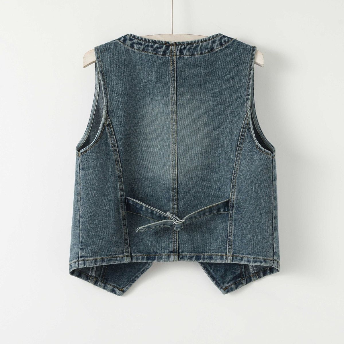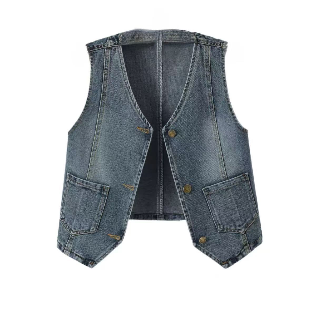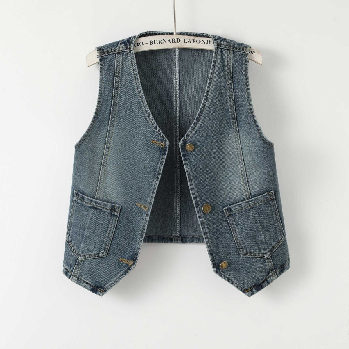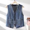 Chaleco de mezclilla retro nuevo de primavera y otoño 2025 para mujer, corto, para exterior, sin mangas, con chaleco superpuesto, top de moda