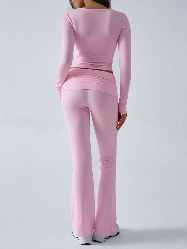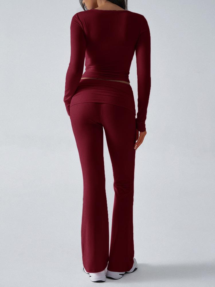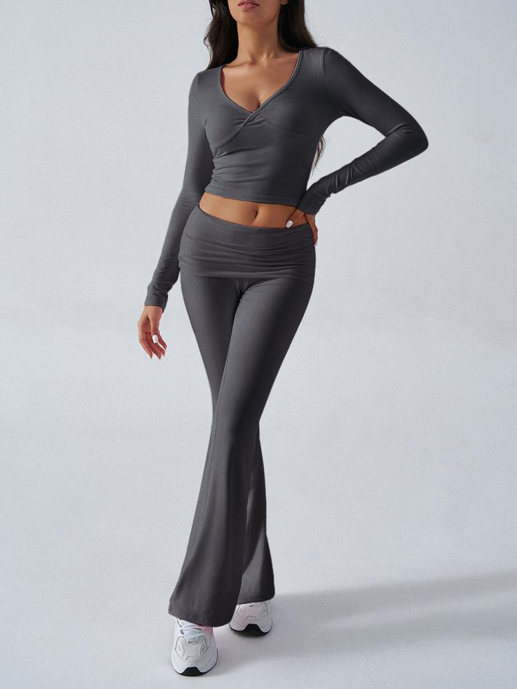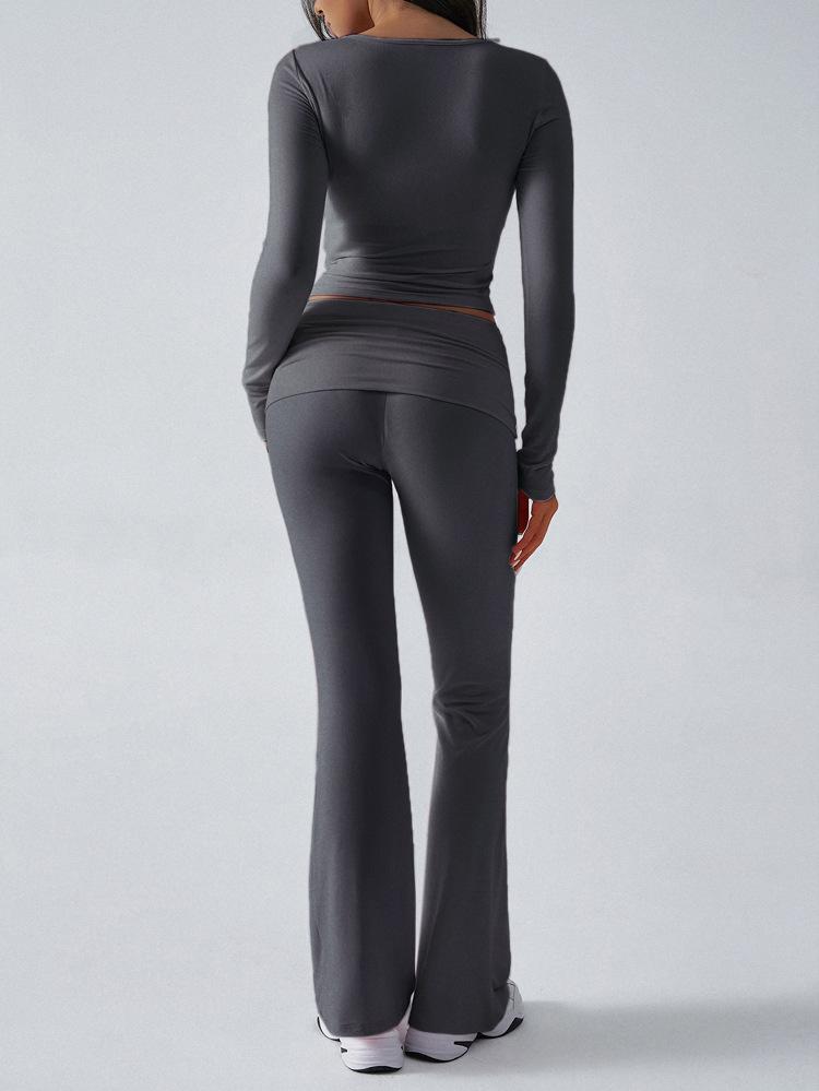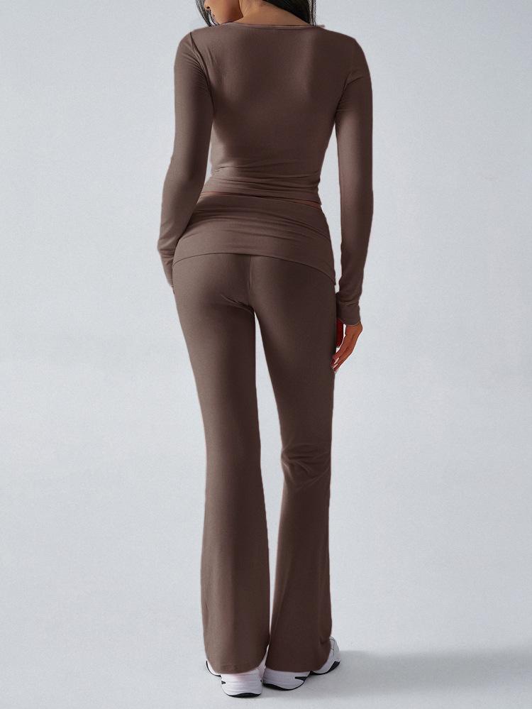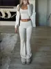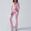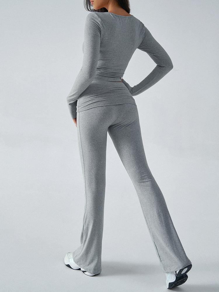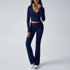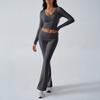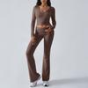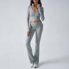 2025 Moda Transfronteriza Europea y Americana para Mujer Amazon Casual Deportivo Ajustado Tejido Manga Larga Pantalón Largo Conjunto de Dos Piezas