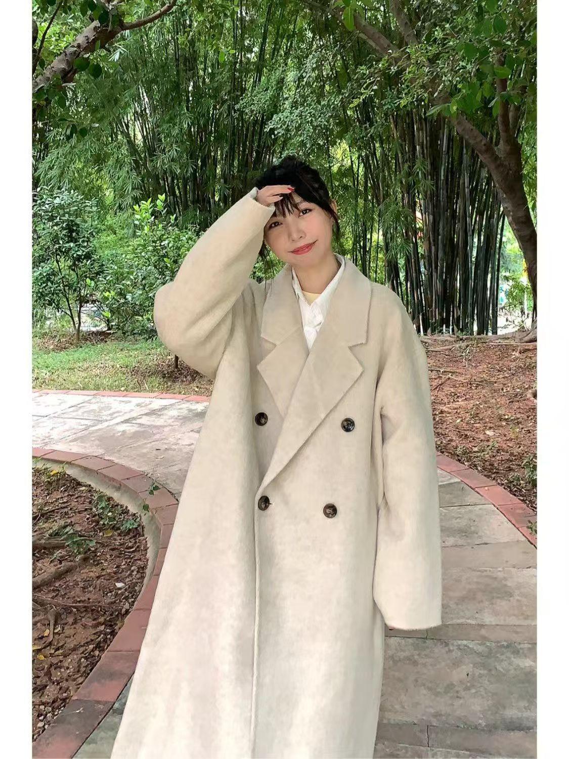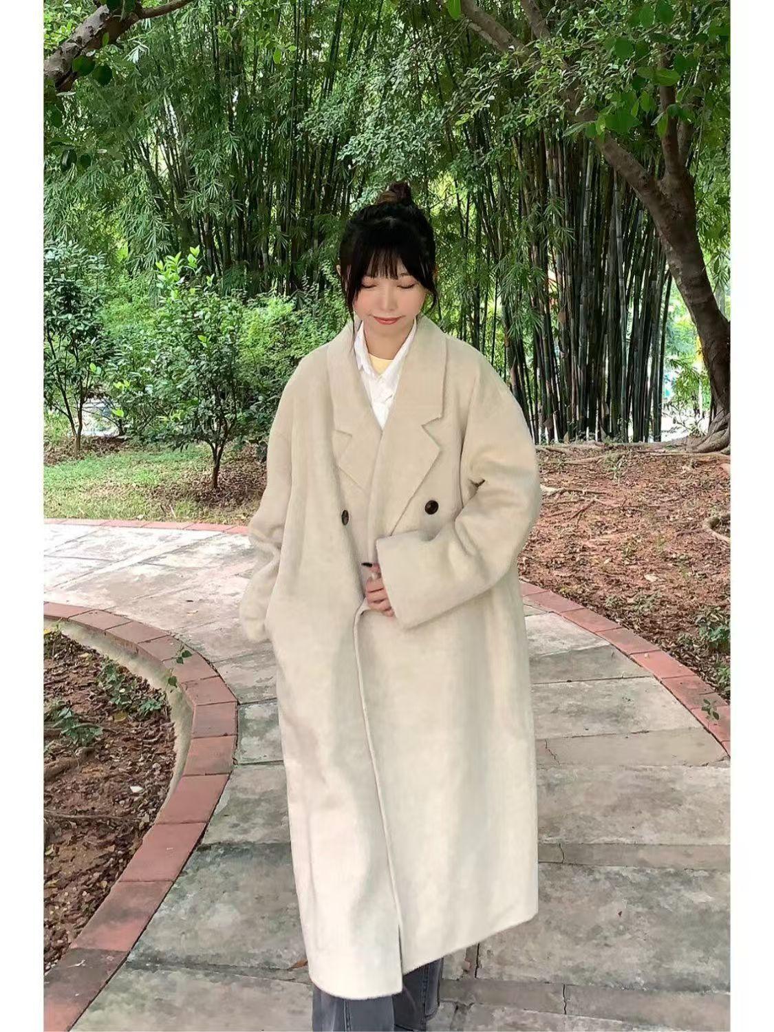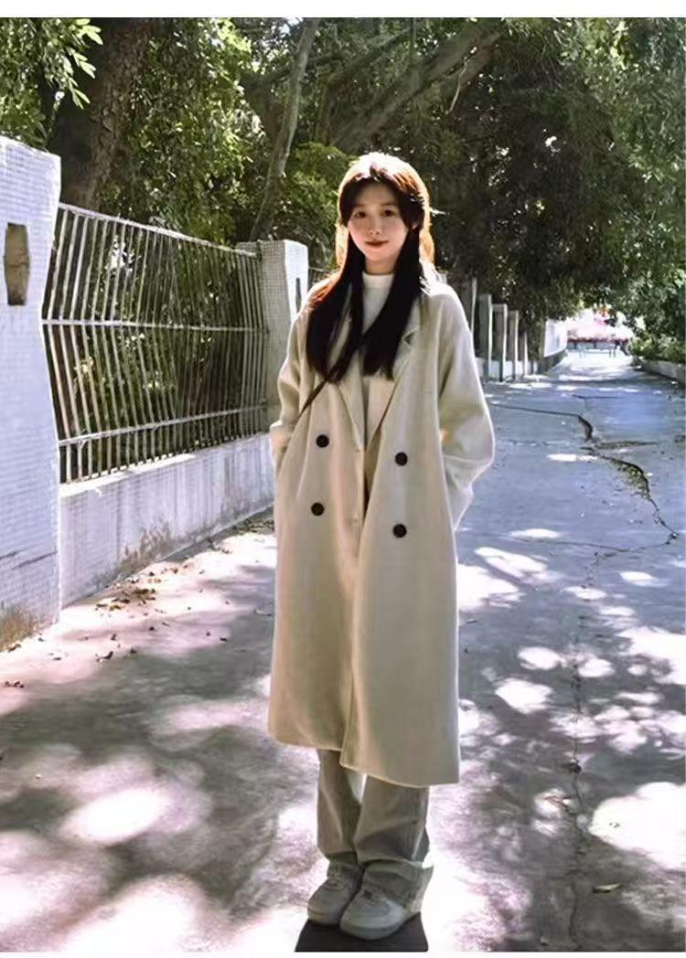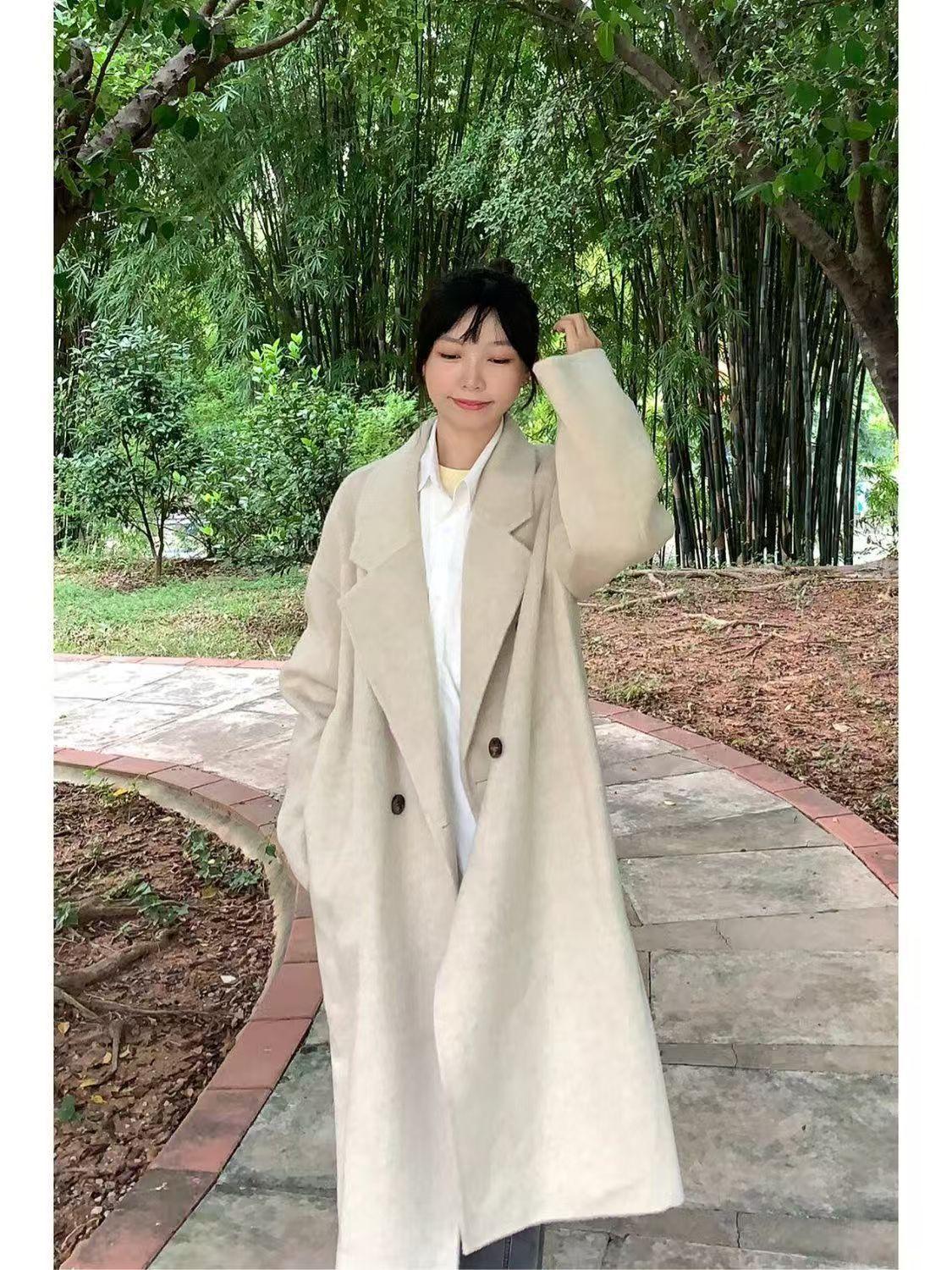 Abrigo de Lana para Mujer Chaqueta Otoño e Invierno Nuevo Largo Medio Estilo Coreano Moderno Corte Holgado Chaqueta de Traje de Lana
