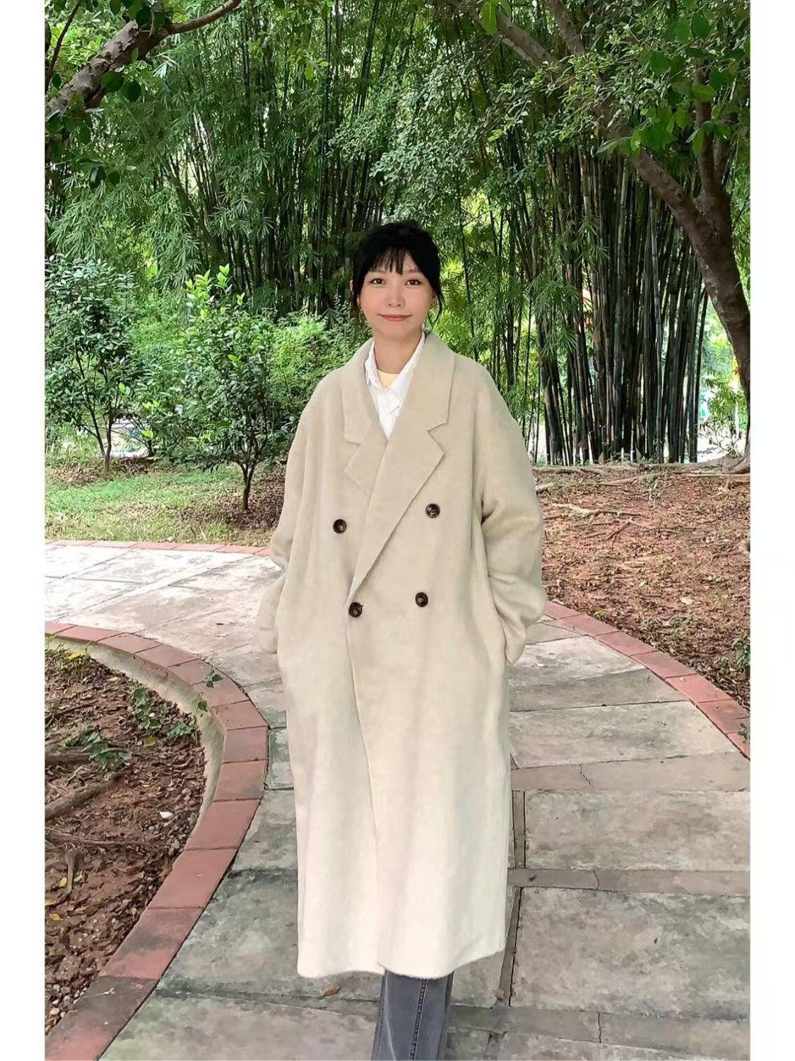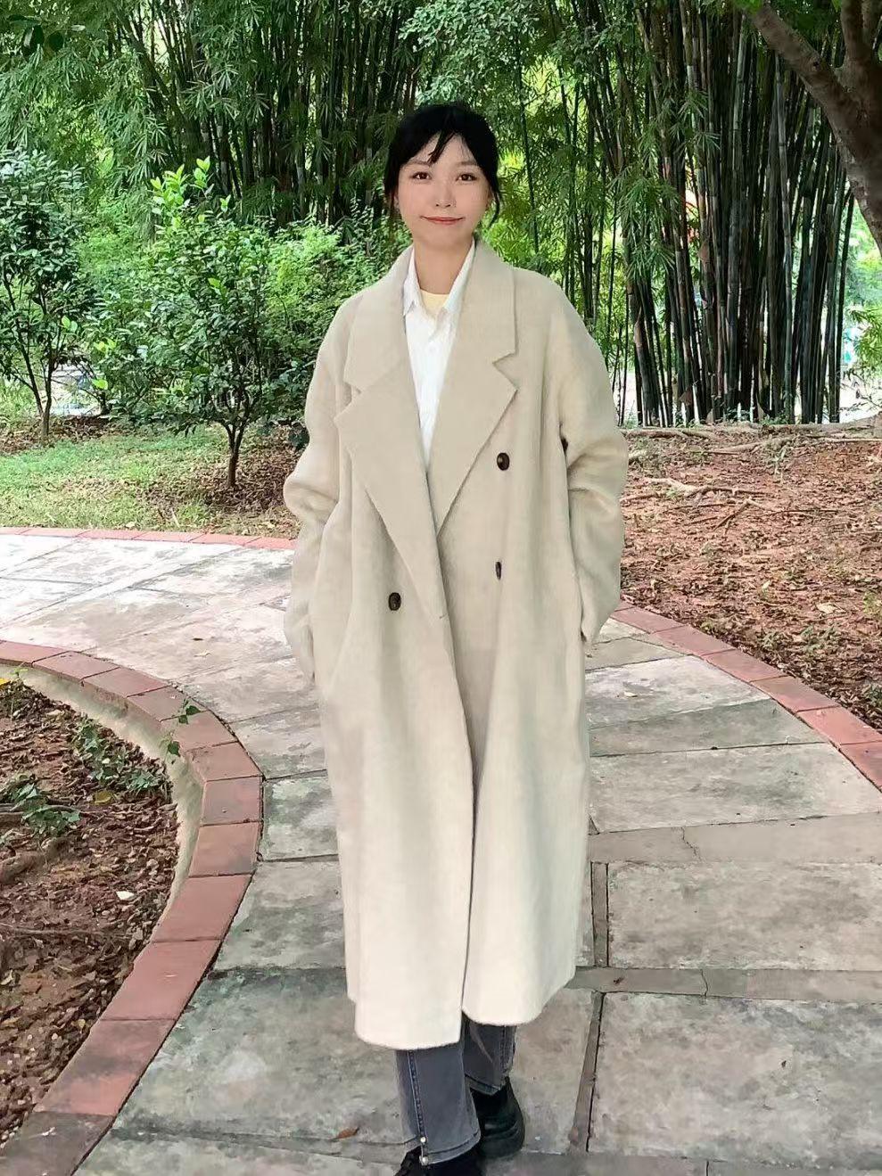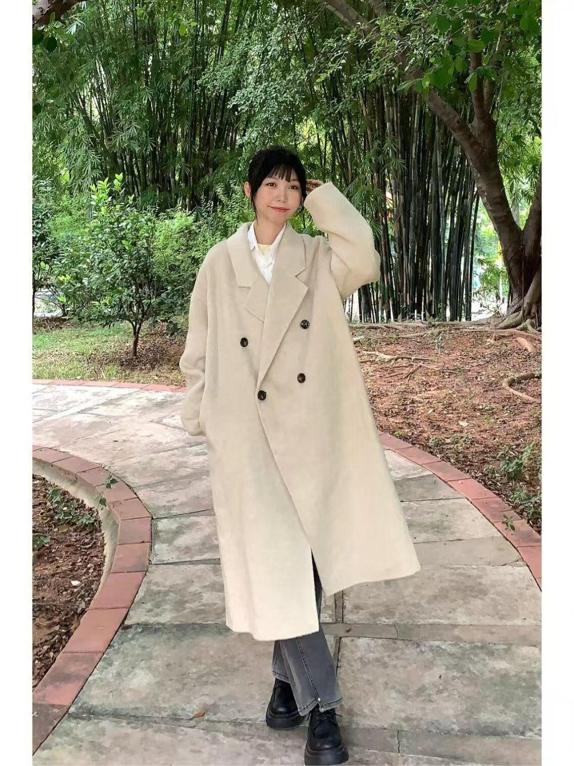 Abrigo de Lana para Mujer Chaqueta Otoño e Invierno Nuevo Largo Medio Estilo Coreano Moderno Corte Holgado Chaqueta de Traje de Lana