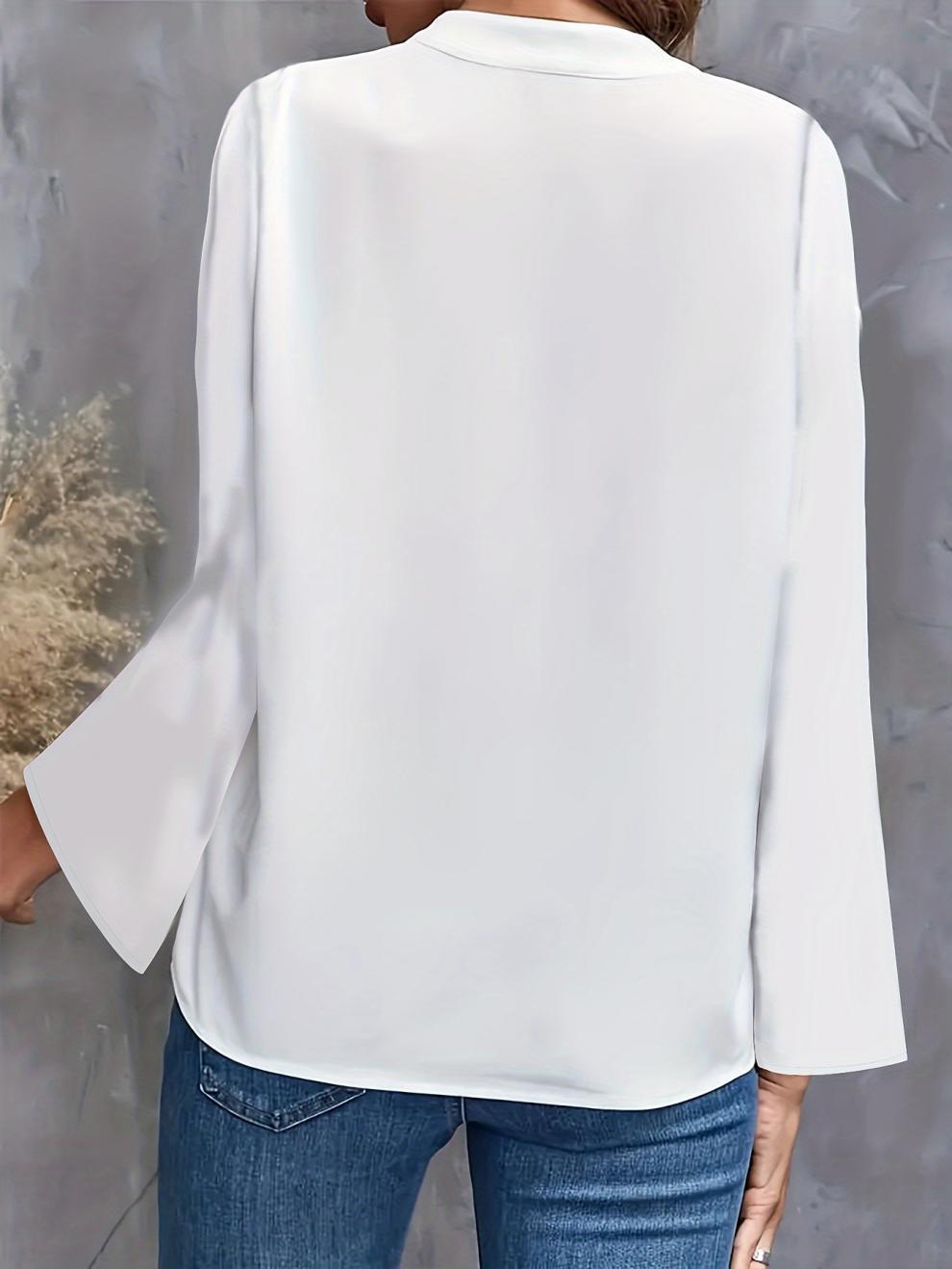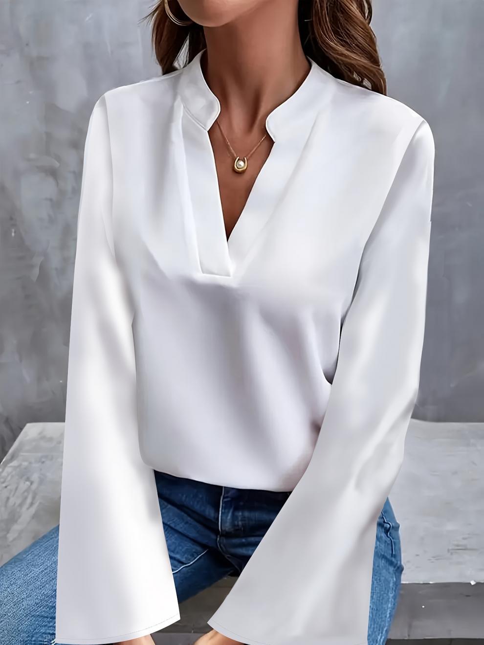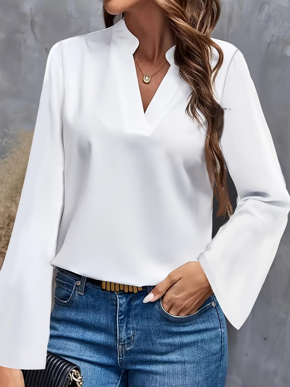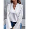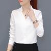 Foto Real Primavera y Otoño Nuevo Color Sólido Simple Cuello en V Camisa Top Moda Combinación Total Estación Europea Explosiones
