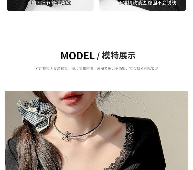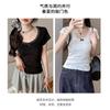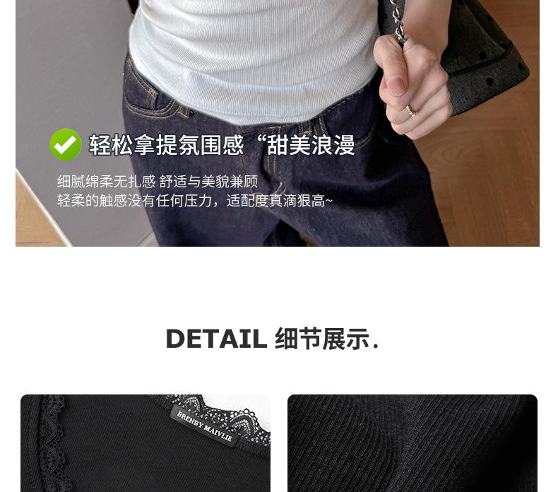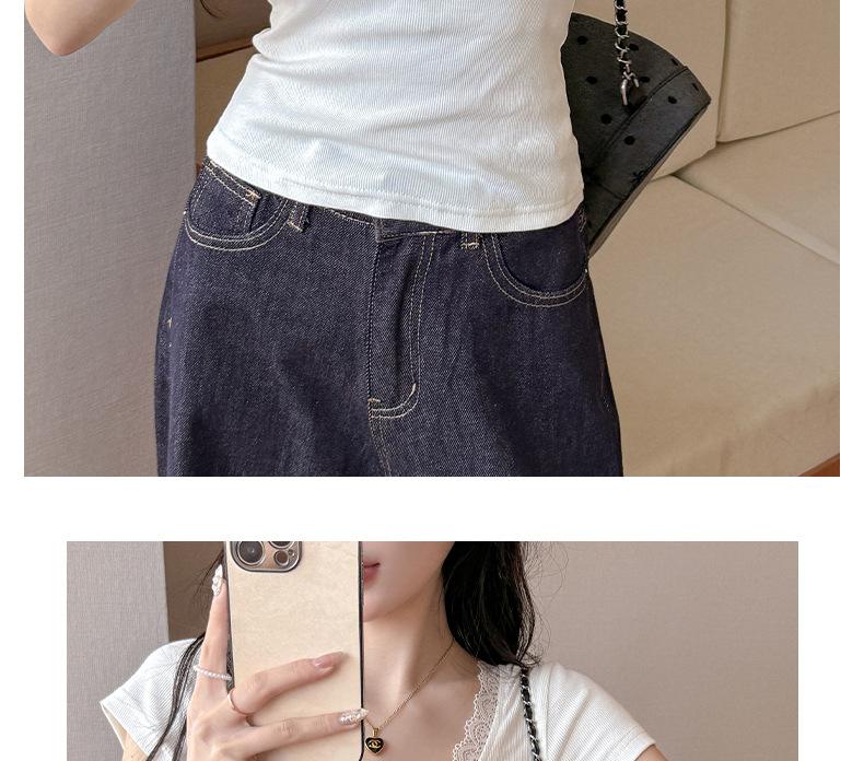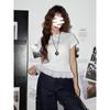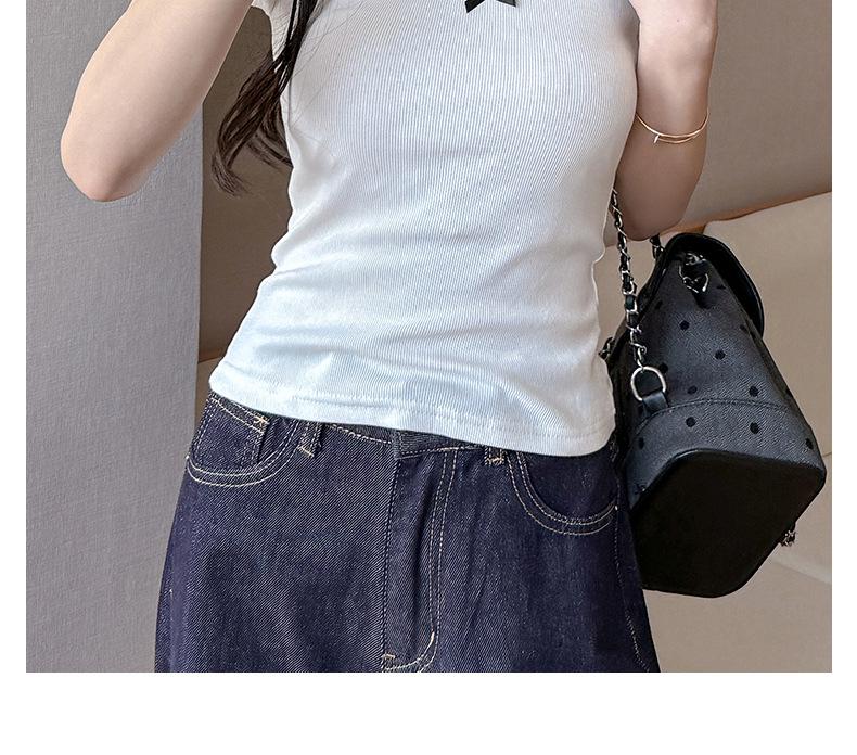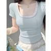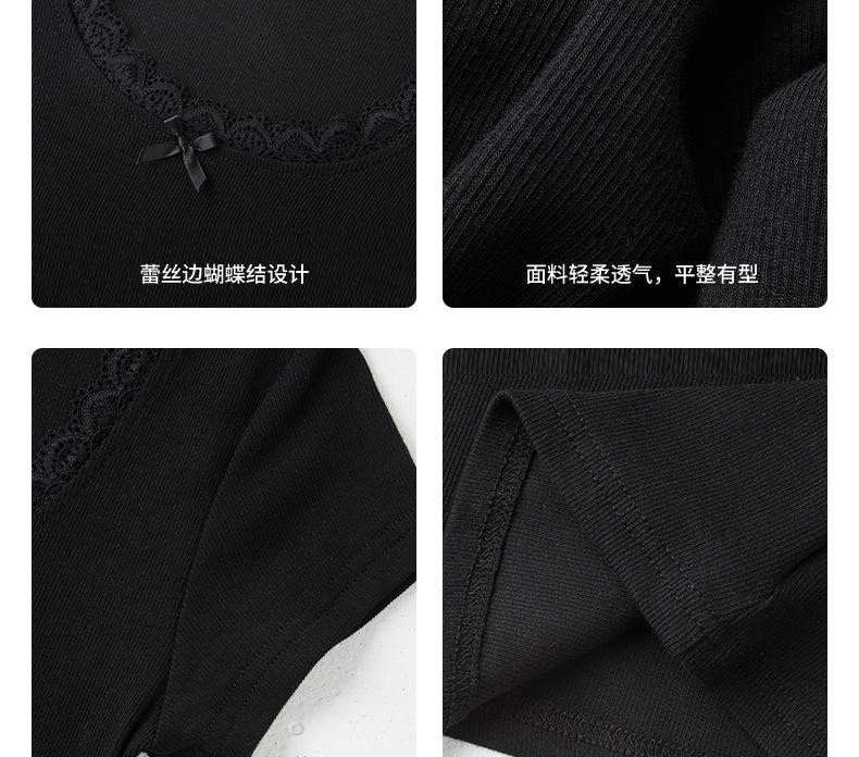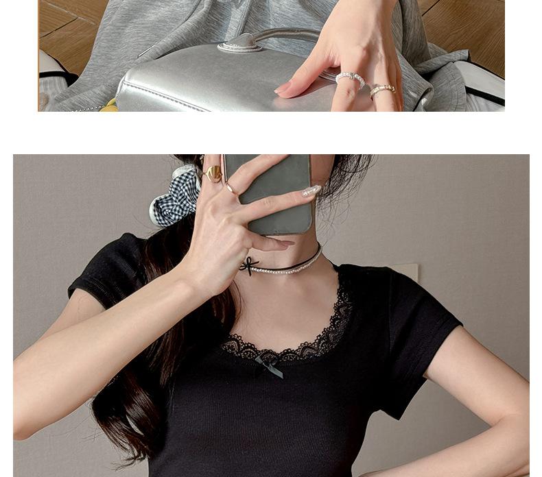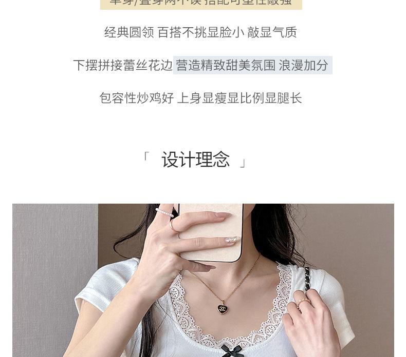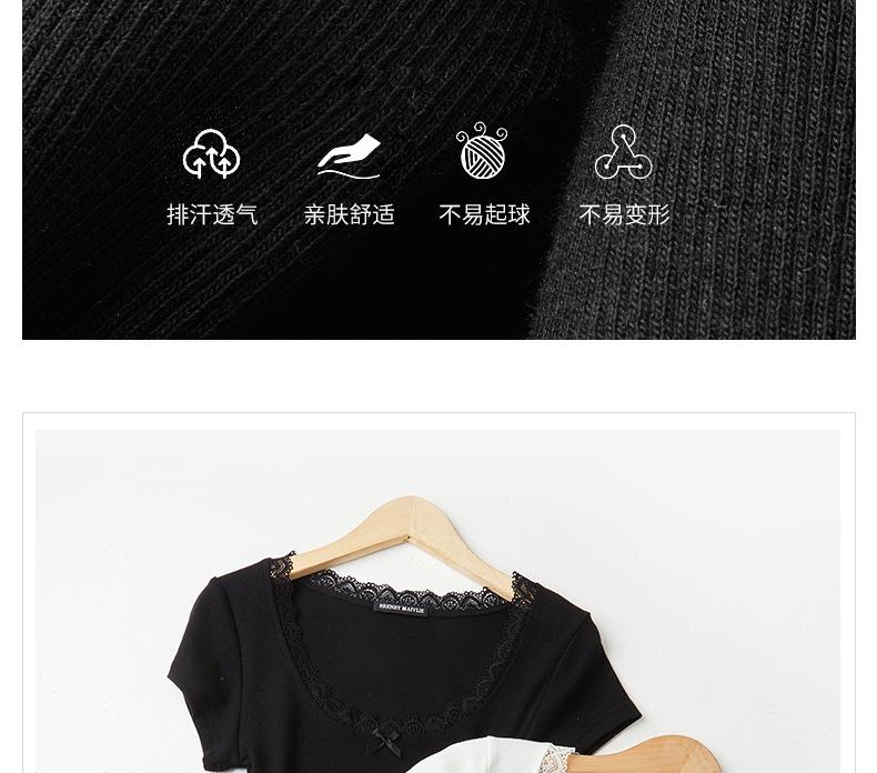 Blanco de Fábrica Sexy Estilo Deseo Puro Encaje Lazo Cuello Redondo Hombro Manga Corta Verano de Mujer Combinable Camiseta Casual