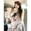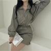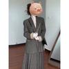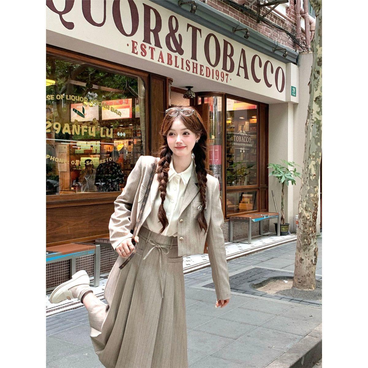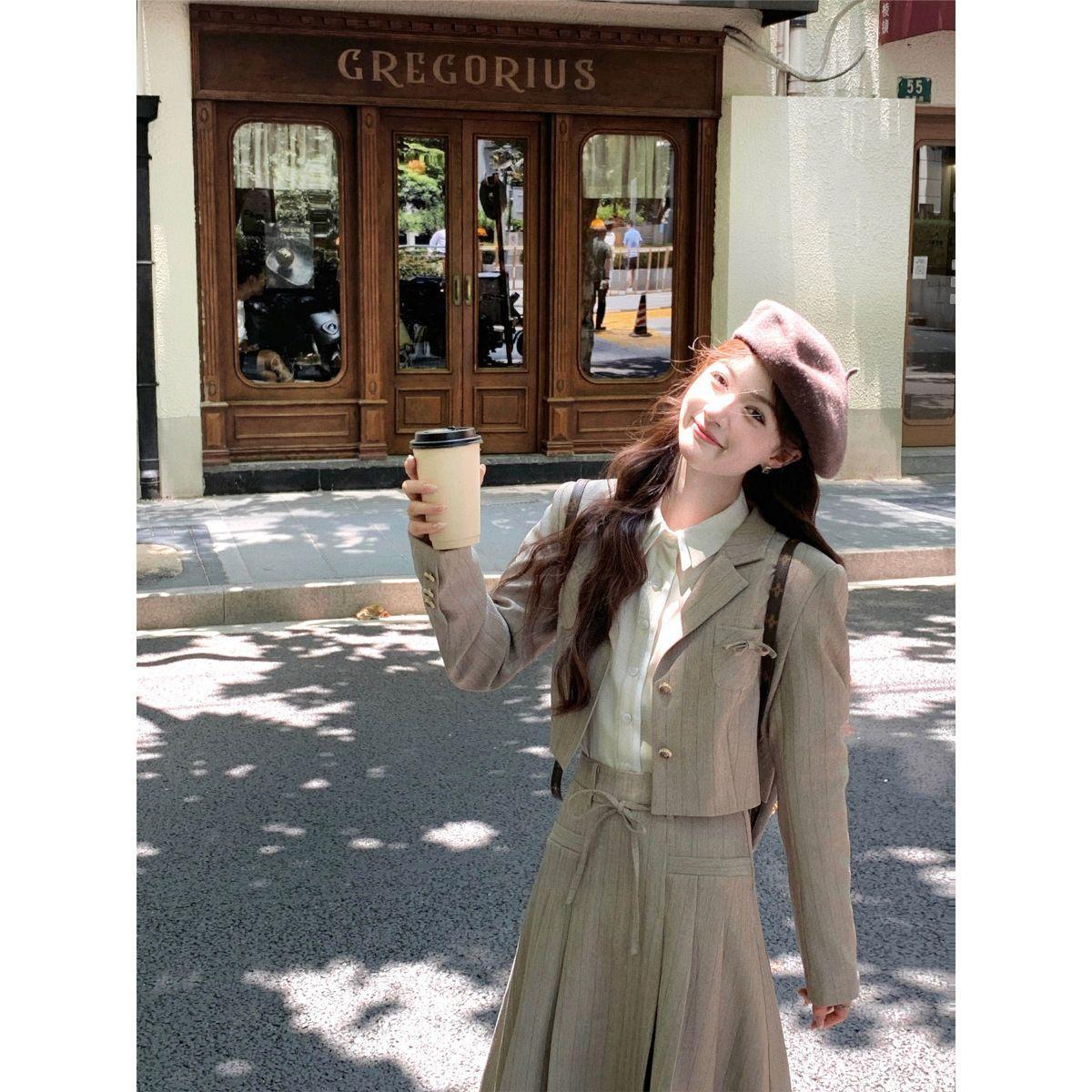 2025 Nuevo Traje Estilo Colegio Británico Chaqueta Vestido Largo Camisa Rayada Set de Tres Piezas Ropa de Otoño para Mujer Petite