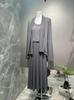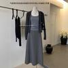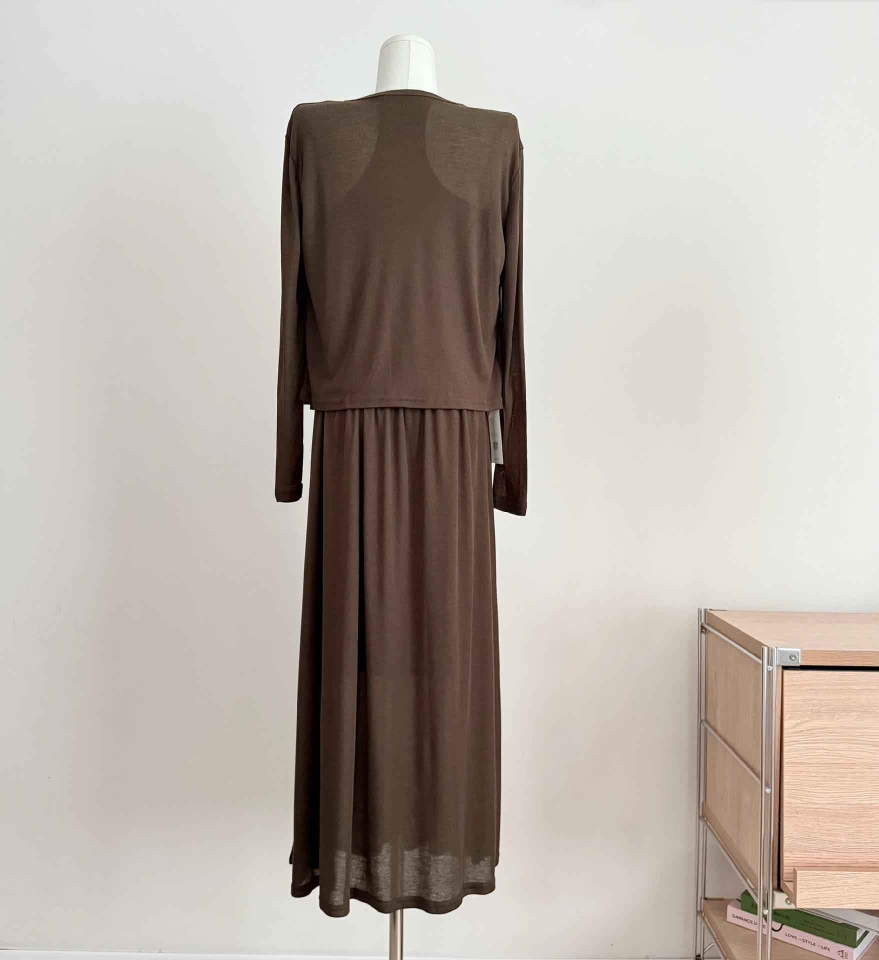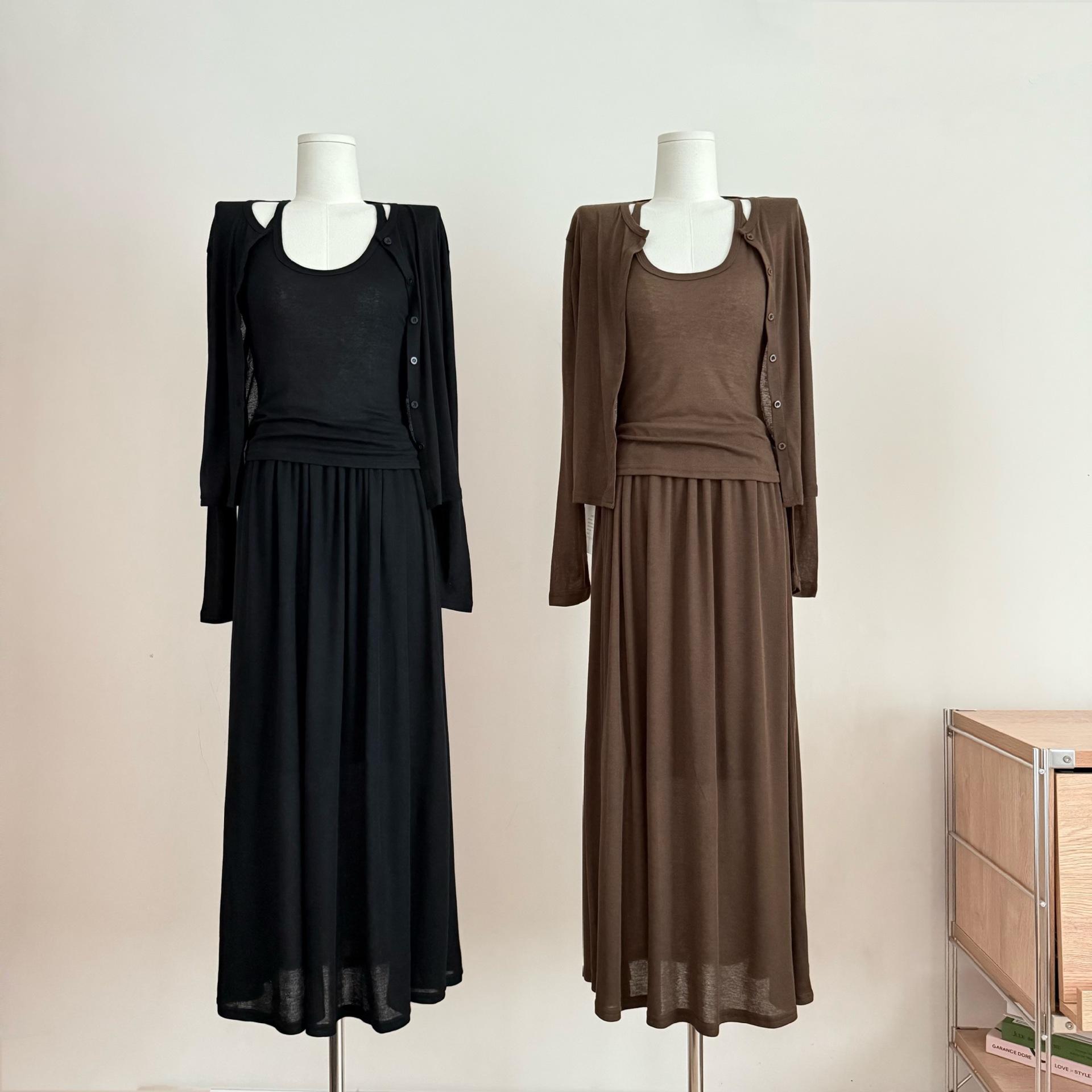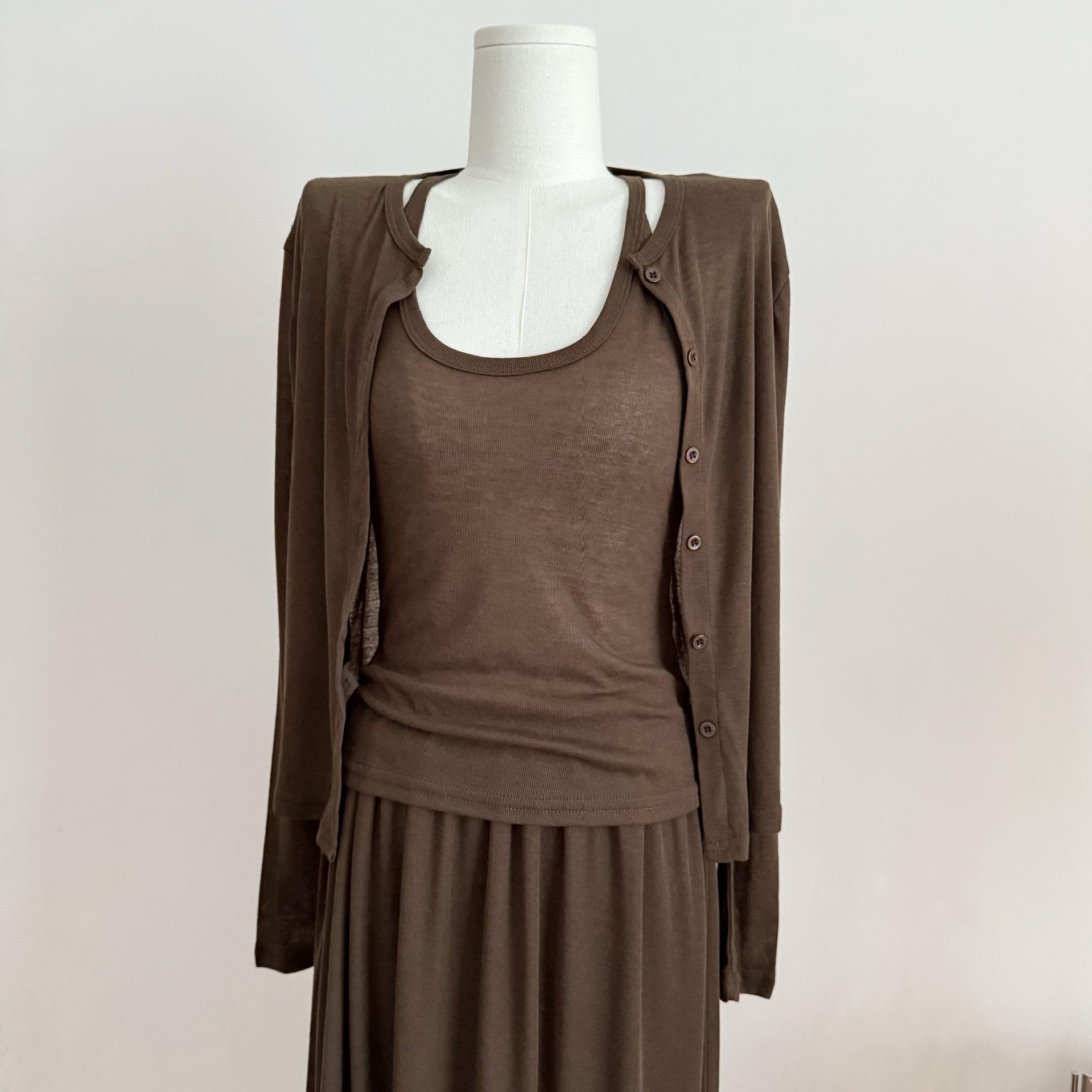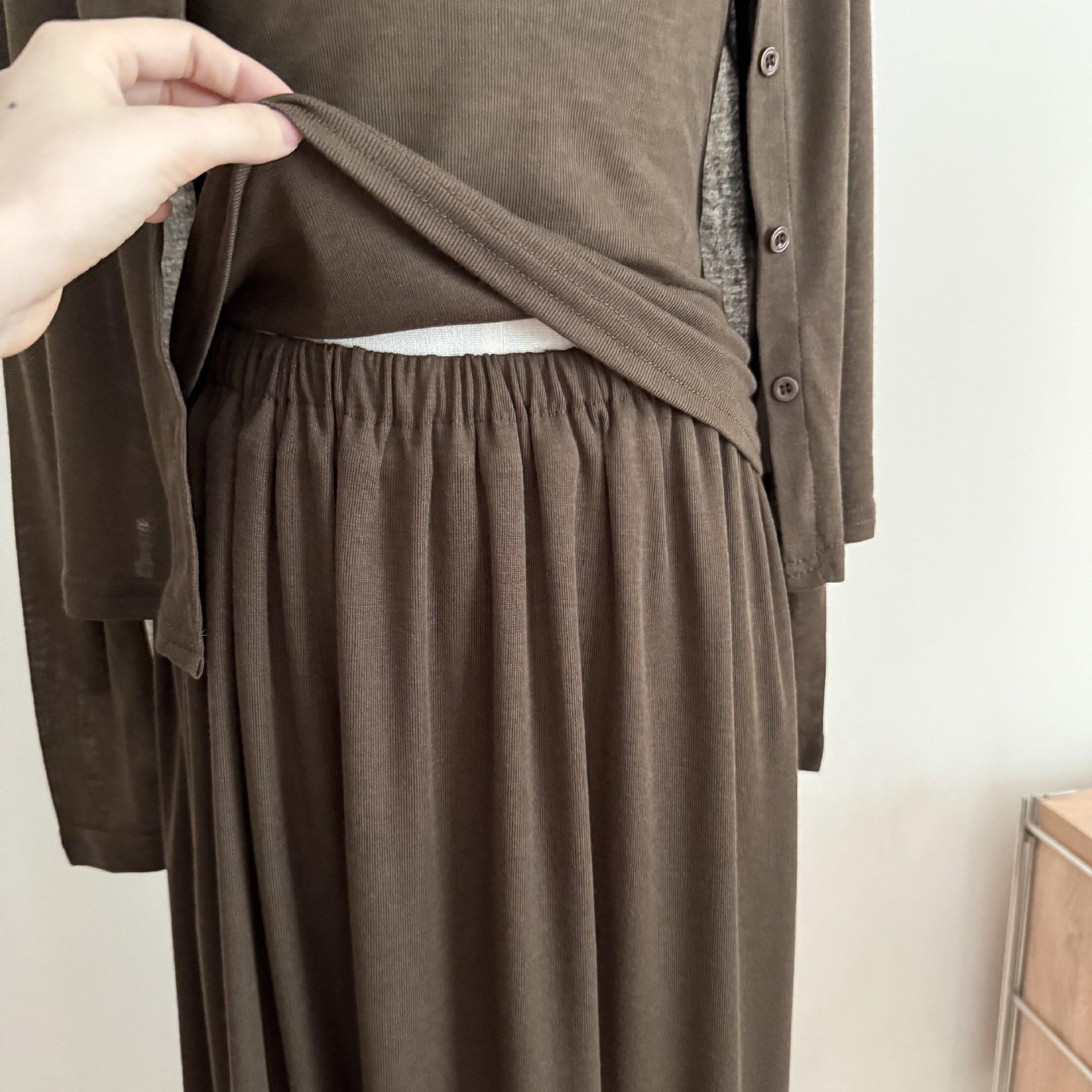 Conjunto Cárdigan de Punto Tencel Castaño Otoño para Mujer Chaleco Otoño Temprano Falda Media Conjunto de Tres Piezas