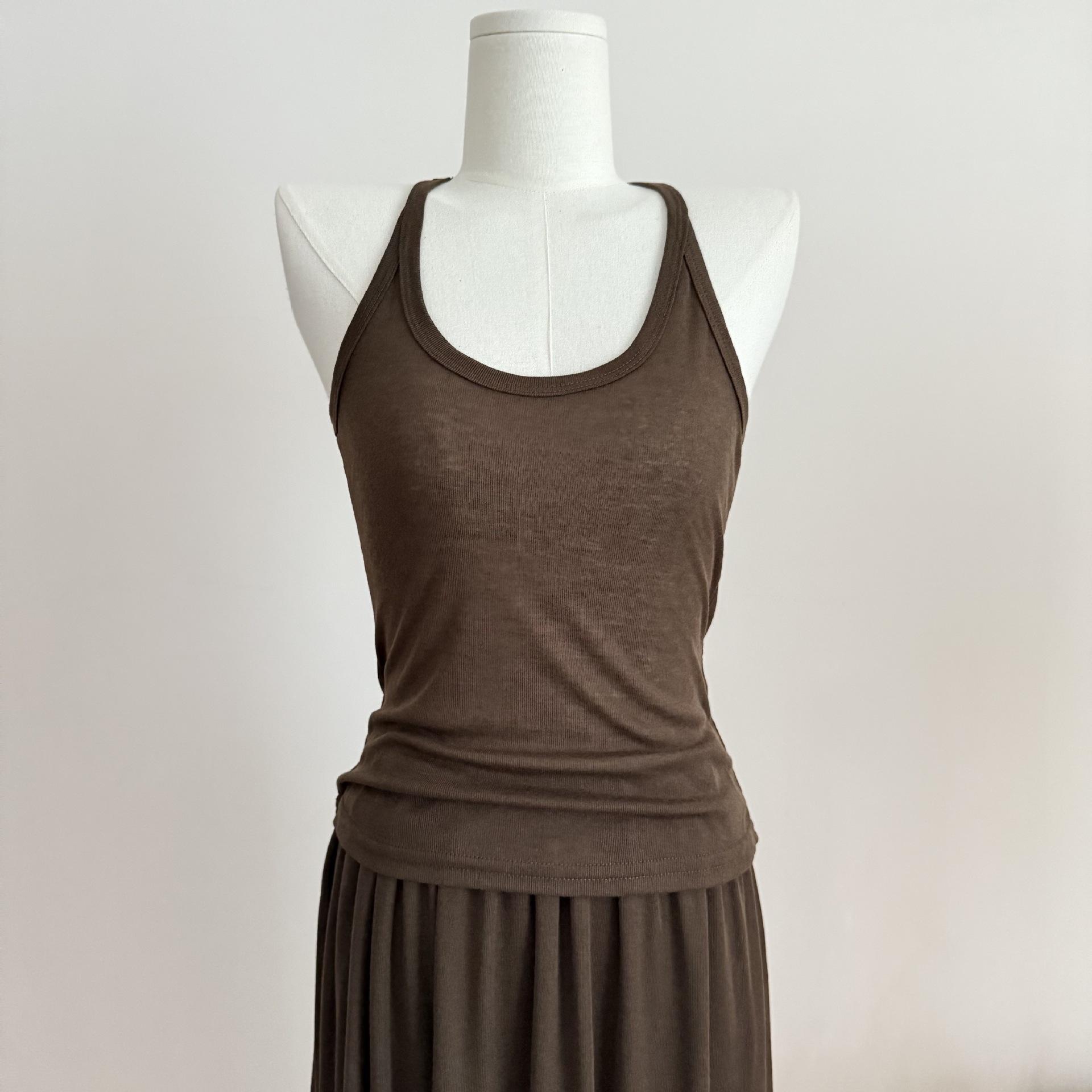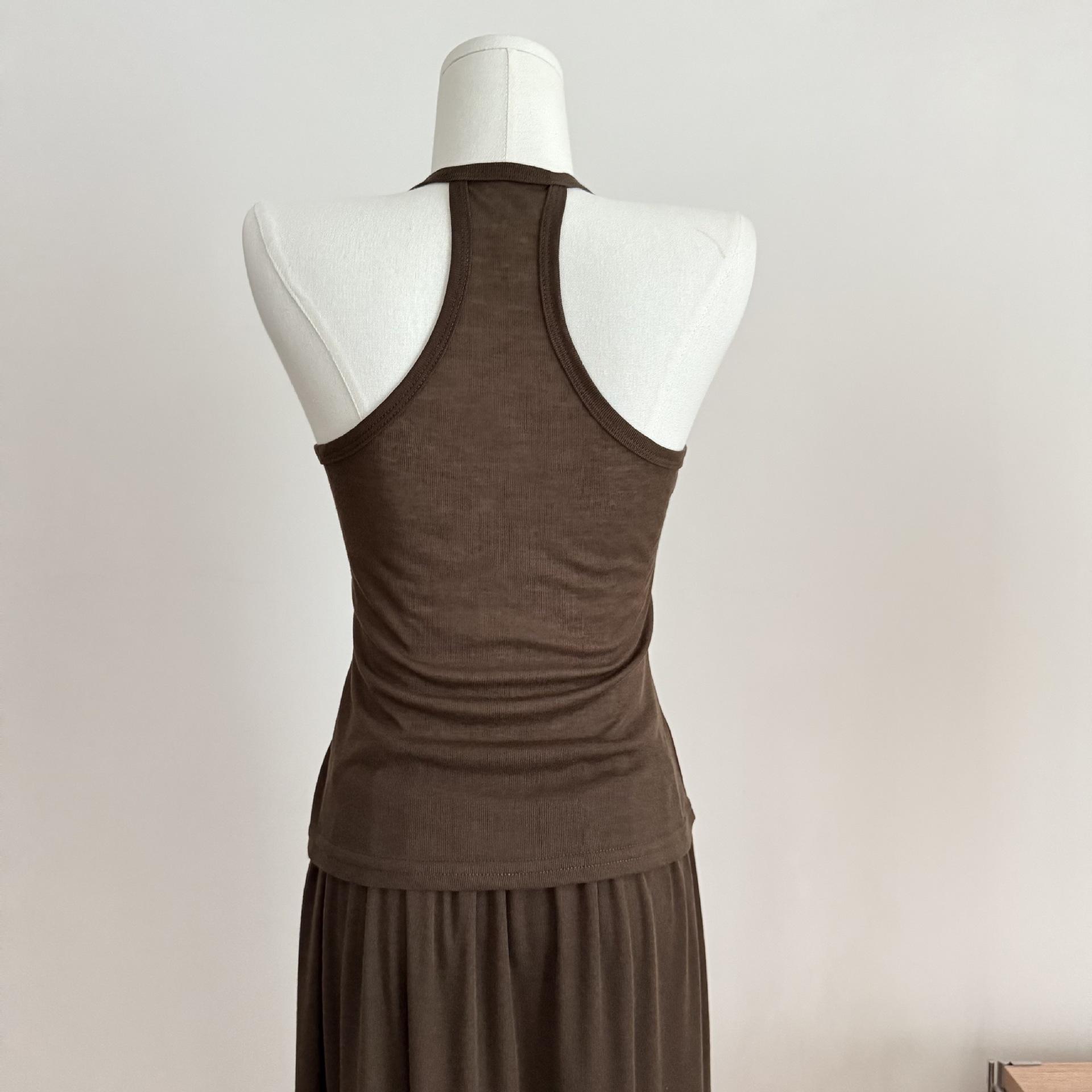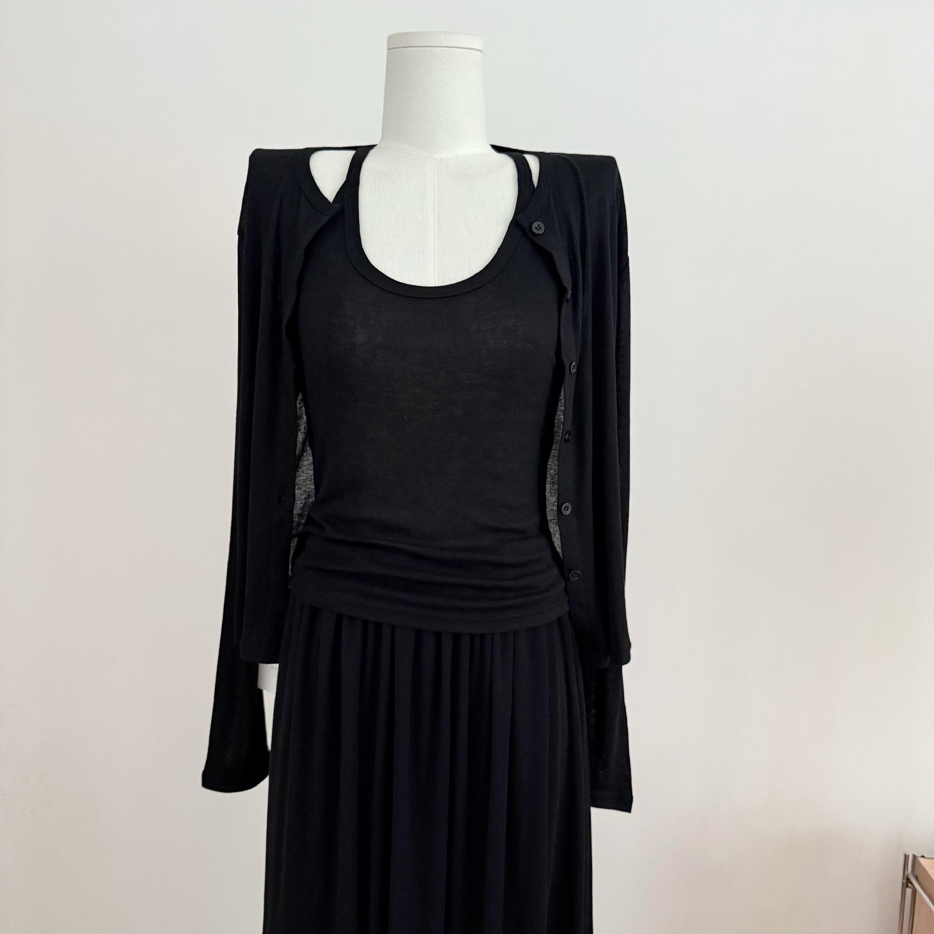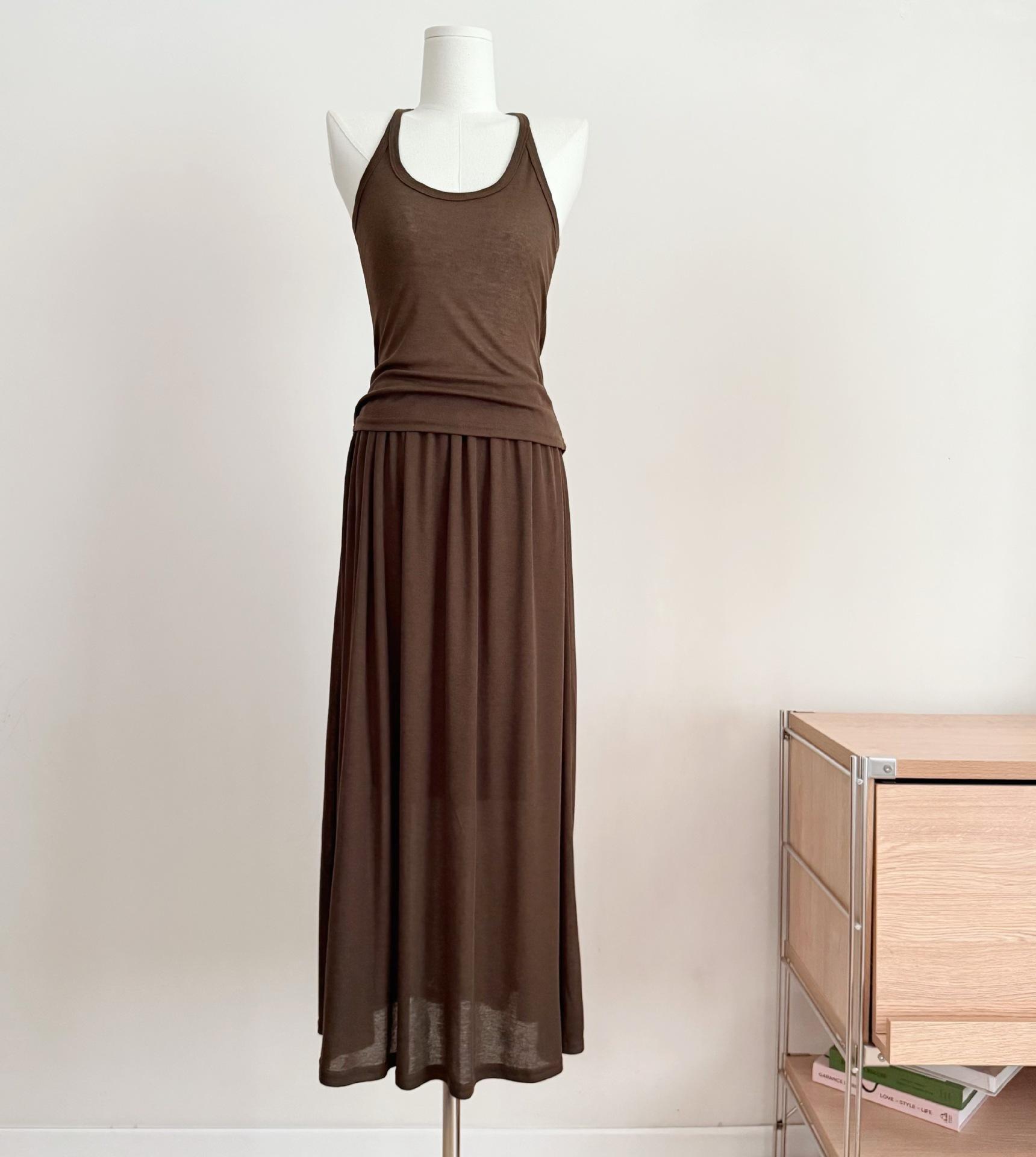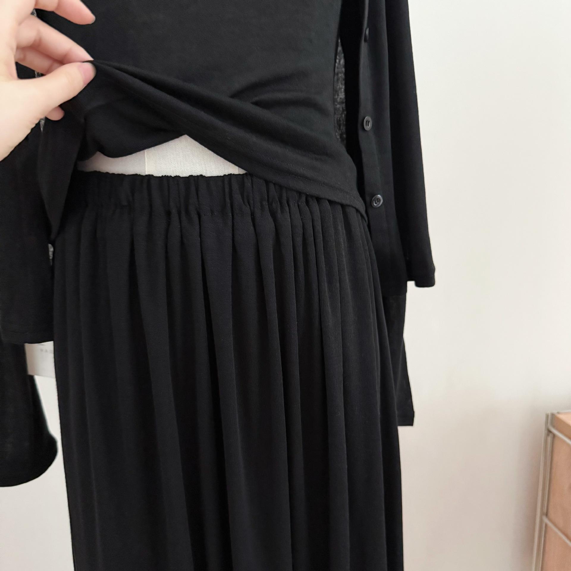 Conjunto Cárdigan de Punto Tencel Castaño Otoño para Mujer Chaleco Otoño Temprano Falda Media Conjunto de Tres Piezas