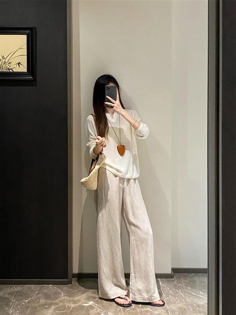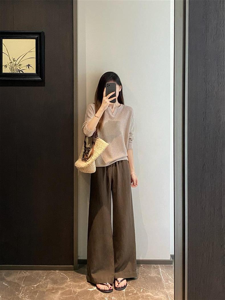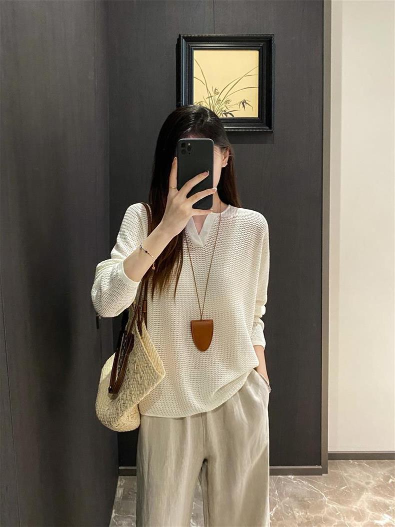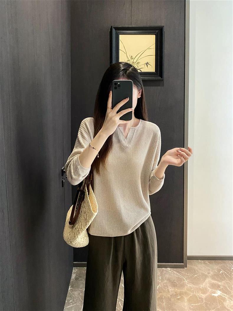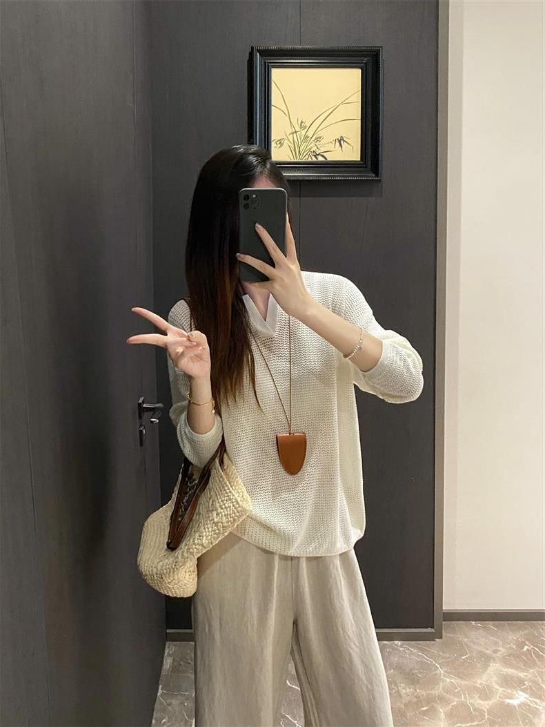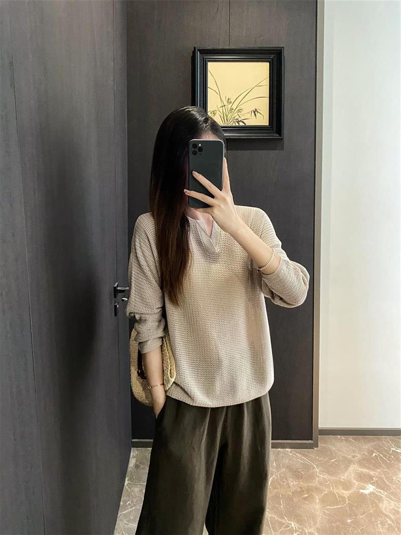 Suéter de punto de manga larga de seda y lino Hejia~¡Refrescante 100 puntos! ¡Textura 100 puntos!