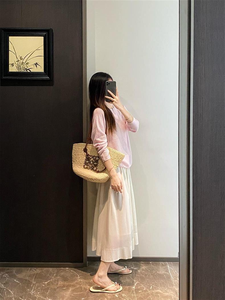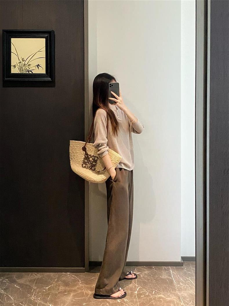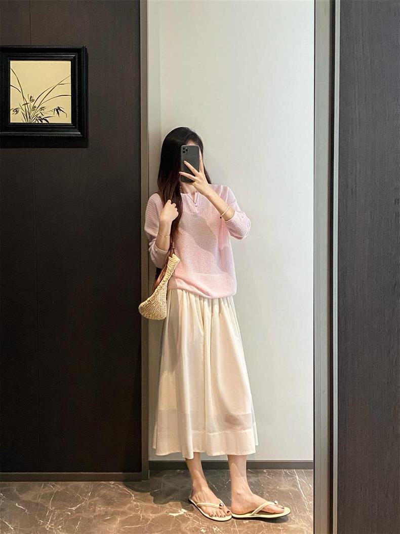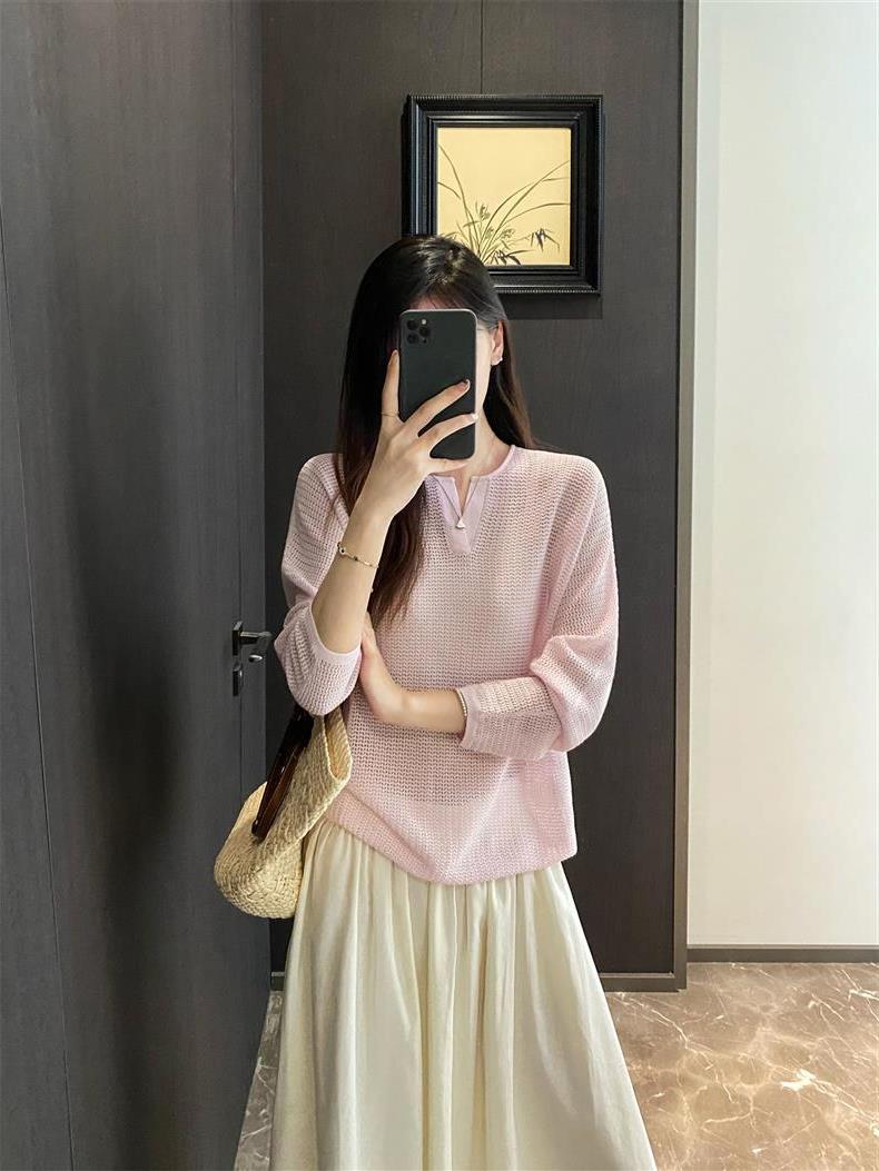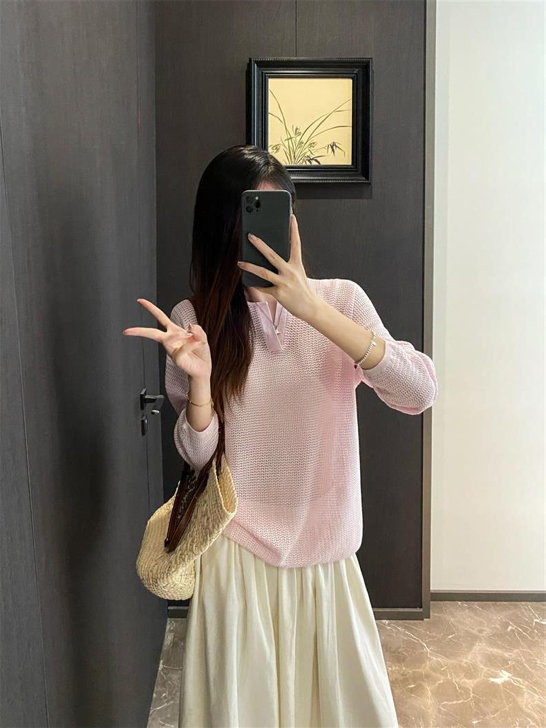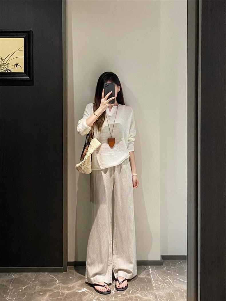Suéter de punto de manga larga de seda y lino Hejia~¡Refrescante 100 puntos! ¡Textura 100 puntos!