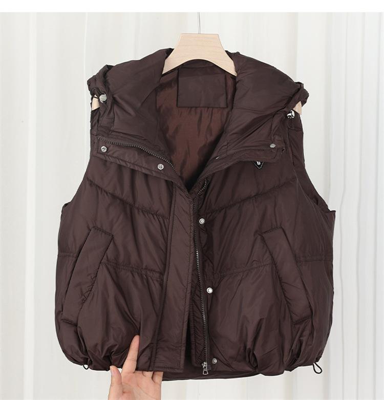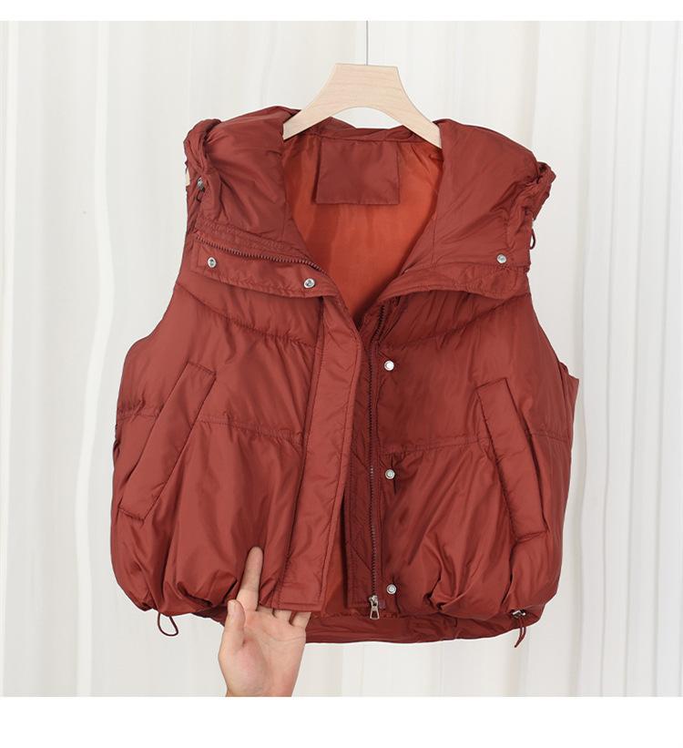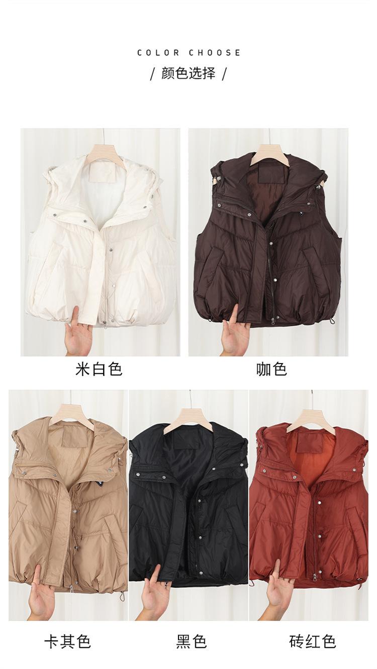 Chaleco de plumón para mujer estilo corto otoño e invierno nuevo versión coreana chaleco holgado sin mangas cuello alto chaleco de algodón abrigo marea